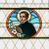 Omawiany witraż został wykonany w 1937 roku w pracowni prowadzonej przez Maksymiliana Romańczyka przy ulicy św. Jana 30 w Krakowie. Jak można dowiedzieć się z inskrypcji umieszczonej w dolnej części witraża, dzieło zostało ufundowane przez młodzież męska z parafii Opieki Matki Boskiej w Zabierzowie Bocheńskim. Po przeciwnej stronie nawy znajduje się witraż o analogicznej kompozycji z medalionem mieszczącym przedstawienie św. Teresy z Lisieux ufundowanym przez młodzież żeńską z omawianej parafii. Witraże w zabierzowskiej świątyni uległy uszkodzeniu w 1945 roku w wyniku wybuchu składu amunicji w pobliskim Kłaju. Jak odnotowano w „Liber memorabilium” koszt napraw wyniósł 12 tysięcy złotych. W 1981 roku witraże zabezpieczono poprzez zamontowanie w każdym z okien dodatkowego przeszklenia.