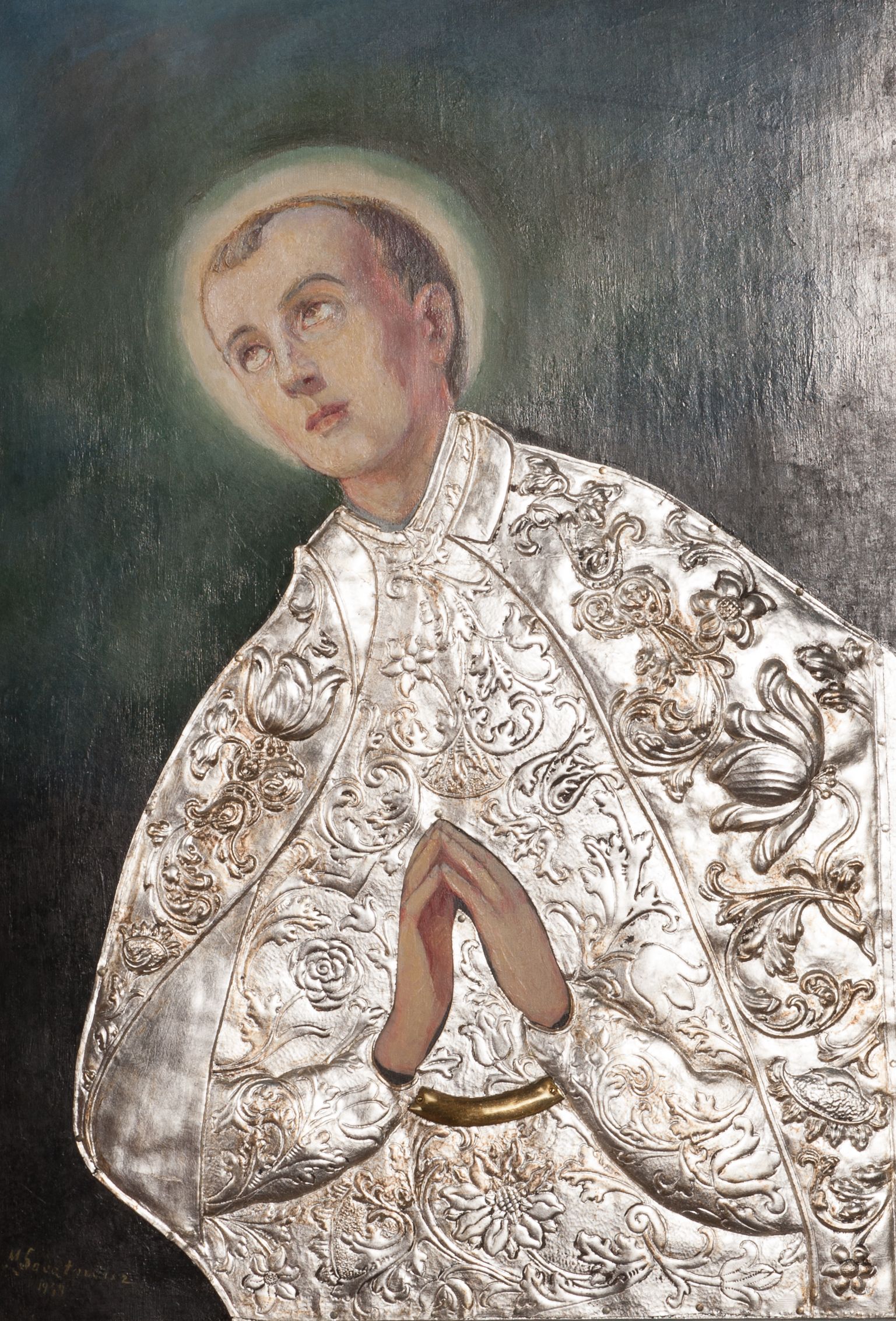 Stanisław Kostka pobierał nauki w Wiedniu, gdzie podczas choroby ukazała mu się Matka Boska z Dzieciątkiem, która dała mu polecenie, aby wstąpił do Towarzystwa Jezusowego. Święty uciekł z Wiednia i dotarł do Dylingi, później zaś wysłano go do Rzymu. Dopiero tam został przyjęty do nowicjatu Towarzystwa Jezusowego, a niedługo po tym złożył śluby zakonne. Stanisław zmarł, mając zaledwie 18 lat. Przedstawiany jest jako młodzieniec w stroju jezuickim.