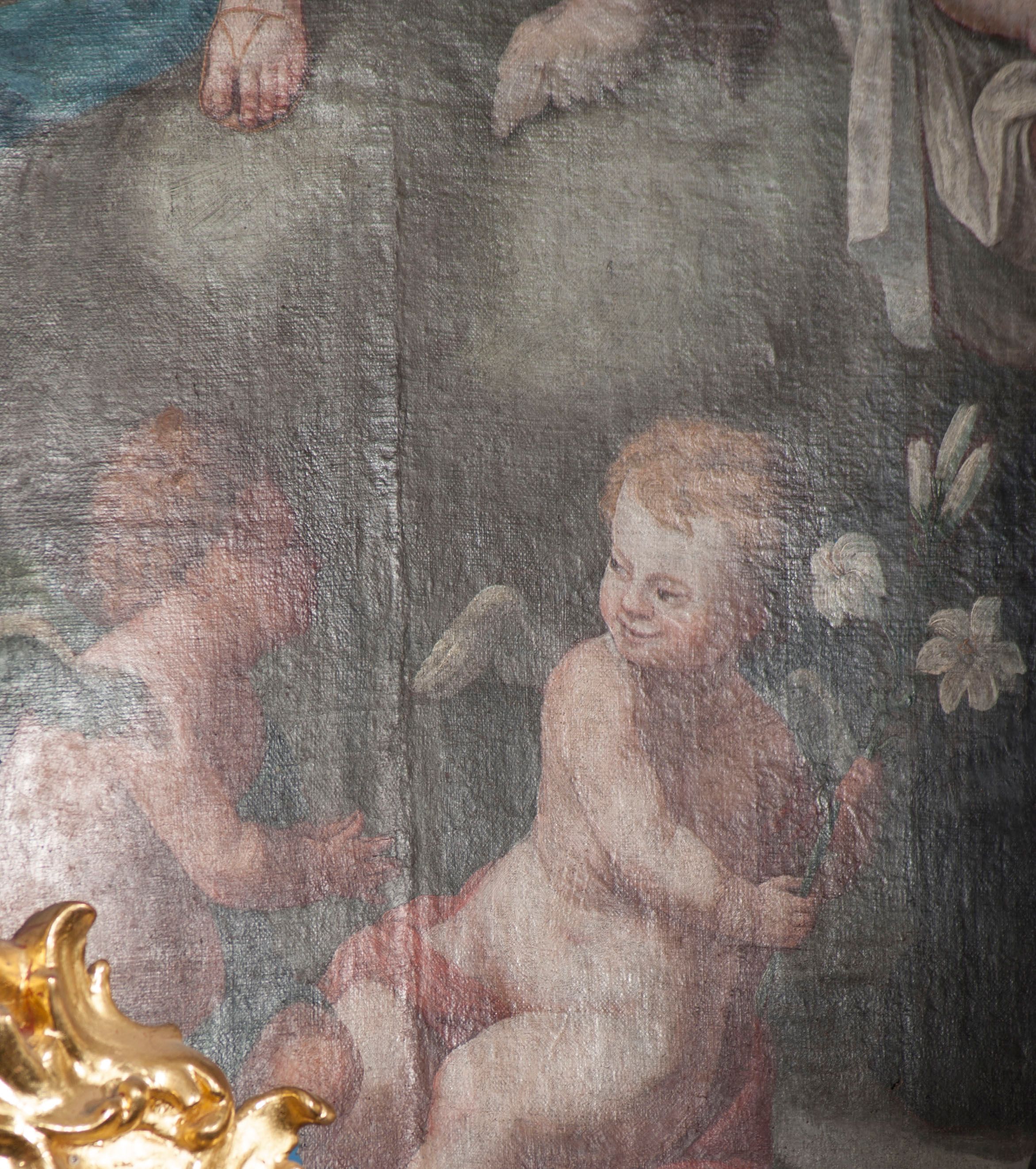 Delikatne zabrudzenia obrazu, krakelury. Obraz był konserwowany w 1997 roku przez Rafała Bukowskiego i Janusza Czopa.