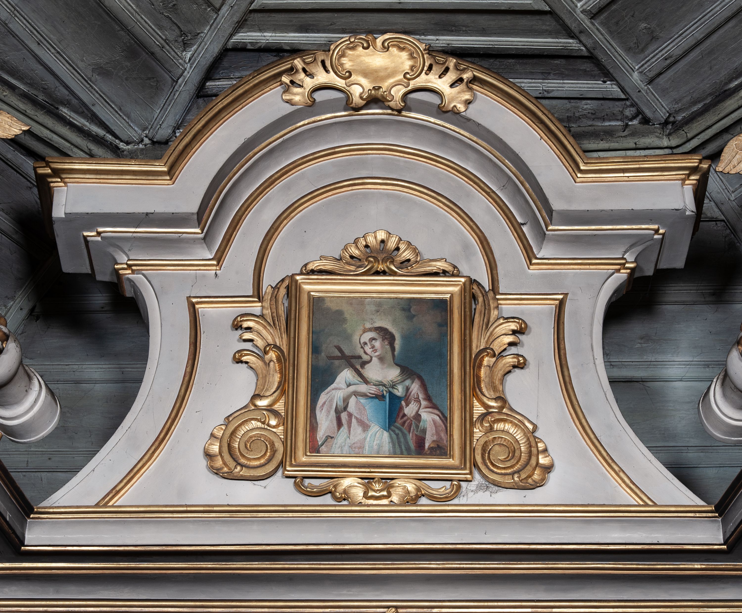 Obraz sprawiony do zwieńczenia ołtarza bocznego.