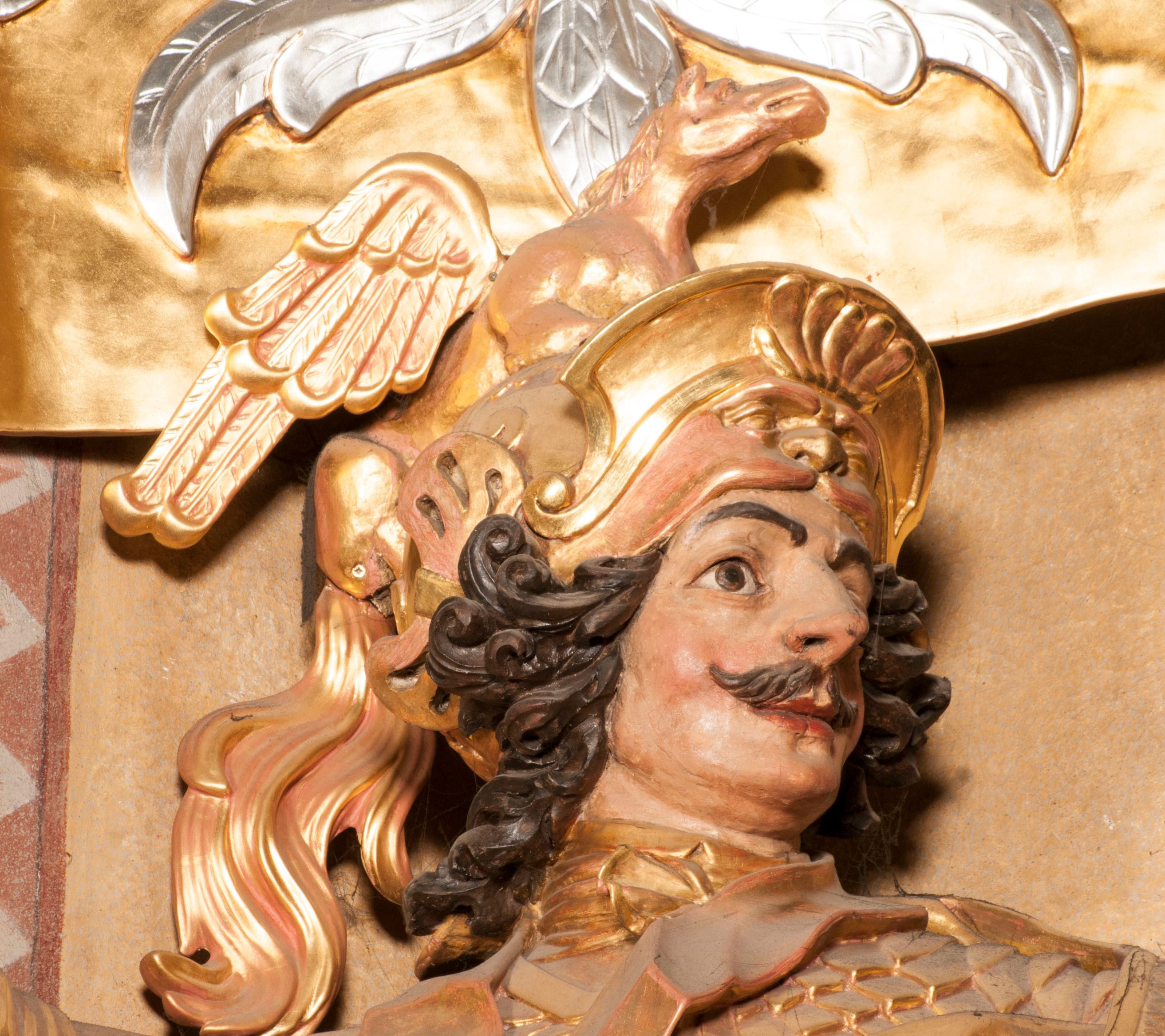 Figury św. Wacława i św. Floriana są jednorodne pod względem formalnym i najpewniej zostały sporządzone przez tego samego rzeźbiarza. Dzieła te charakteryzuje niezwykle wysoki poziom wykonania, który nie znajduje podobieństwa w twórczości rzeźbiarzy działających w tym czasie w ośrodku krakowskim. Obie figury wykonane są z niezwykłą precyzją w sposobie oddania plastycznie rzeźbionych rysów twarzy, modelowania pojedynczych kosmyków włosów czy bardzo bogatego stroju. Charakteryzuje je dekoracyjność przejawiająca się w sposobie ułożenia włosów czy dopracowania każdego detalu stroju z zachowaniem zróżnicowanej faktury jego poszczególnych elementów, obfitości zdobień i dbałości o szczegóły, jak chociażby hełm z maszkaronem i rzeźbiona postać pegaza. Figury upozowane są swobodnie, o stonowanej ekspresji wyrażonej w układzie płaszcza czy przez rozwianie chorągwi. Wacław był postacią historyczną, został uznany za świętego i męczennika. Był synem czeskiego księcia Wratysława I, po którego śmierci objął rządy. Zginął męczeńską śmiercią w kościele w Starym Bolesławcu z rąk wysłanników swojego brata, Bolesława. W ikonografii św. Wacław przedstawiany jest w zbroi, często trzyma tarczę z wizerunkiem czarnej orlicy, będącej średniowiecznym godłem herbu dynastii Przemyślidów, która w omawianej figurze ukazana jest na chorągwi. Kult św. Wacława był jednym z pierwszych rozwijających się na ziemiach polskich za czasów panowania Bolesława Chrobrego. Najstarsza wawelska świątynia była pod wezwaniem św. Wacława. W 1436 roku święty został ustanowiony przez biskupa Zbigniewa Oleśnickiego jednym z czterech patronów Królestwa Polskiego, a do dziś katedra wawelska nosi wezwanie św. Stanisława i św. Wacława.