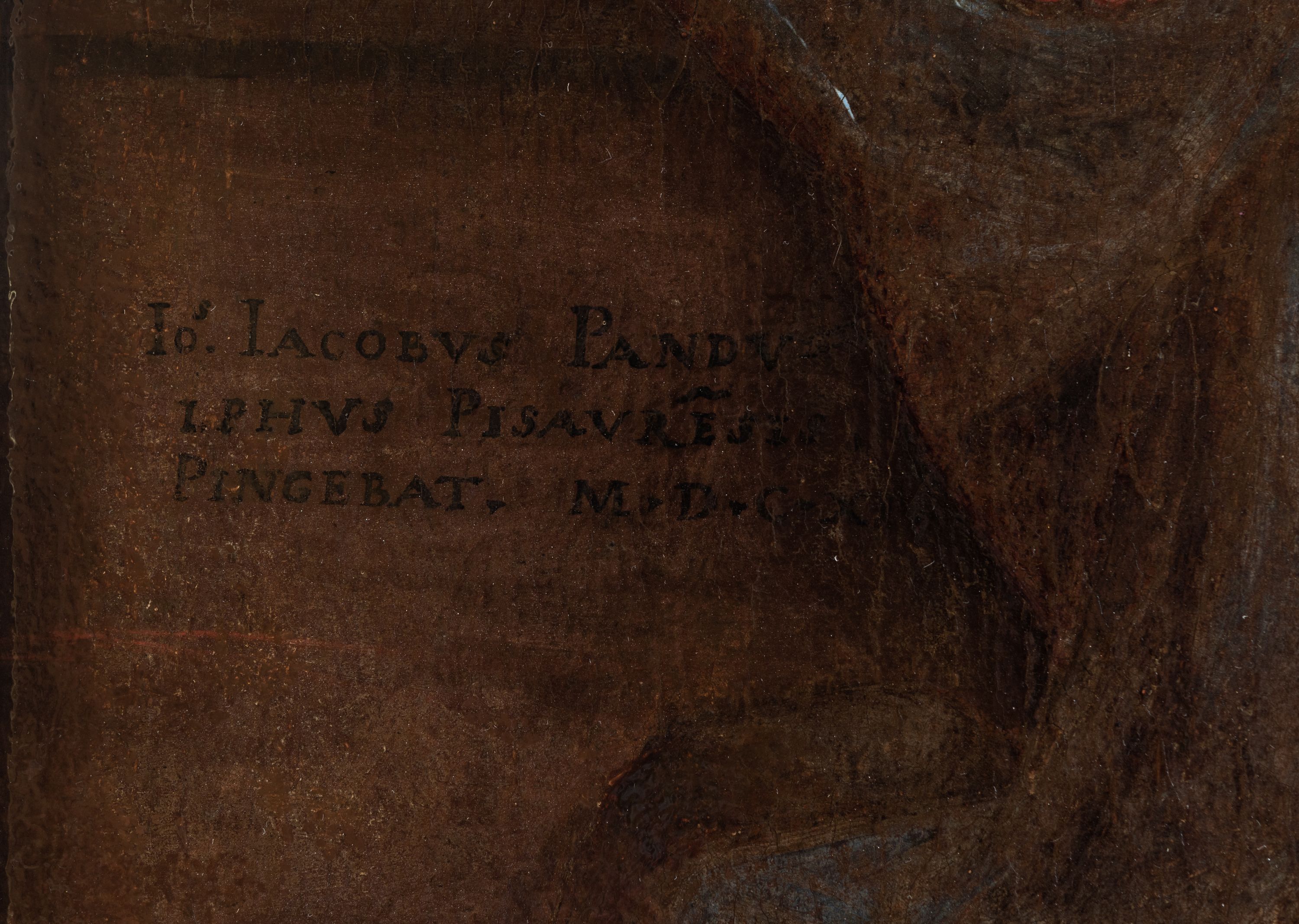Obraz przedstawiający Świętą Rodzinę ze św. Janem Chrzcicielem i św. Franciszkiem z Asyżu namalował Jacobus Pandulphus Pisaurensis w 1611 roku.