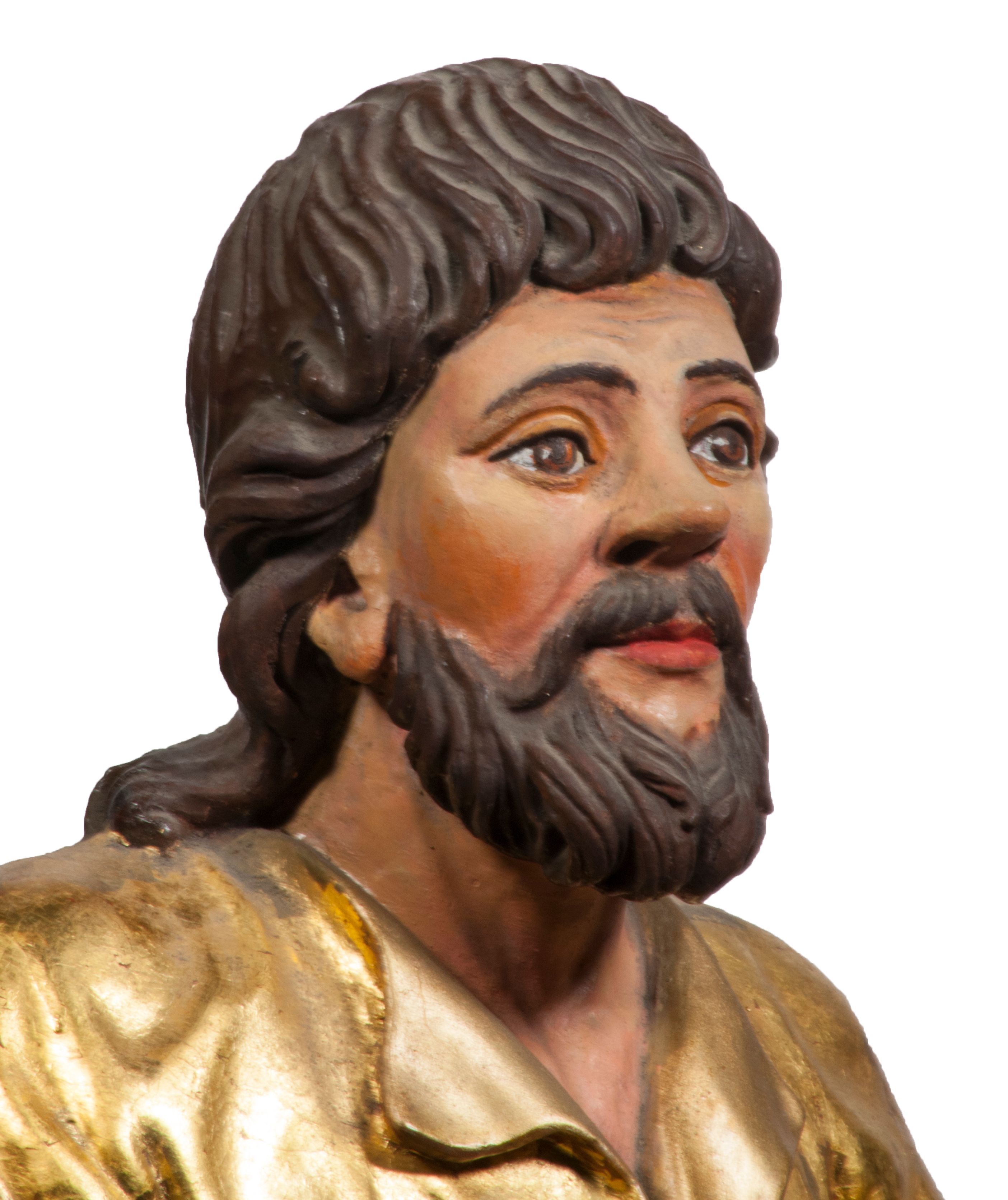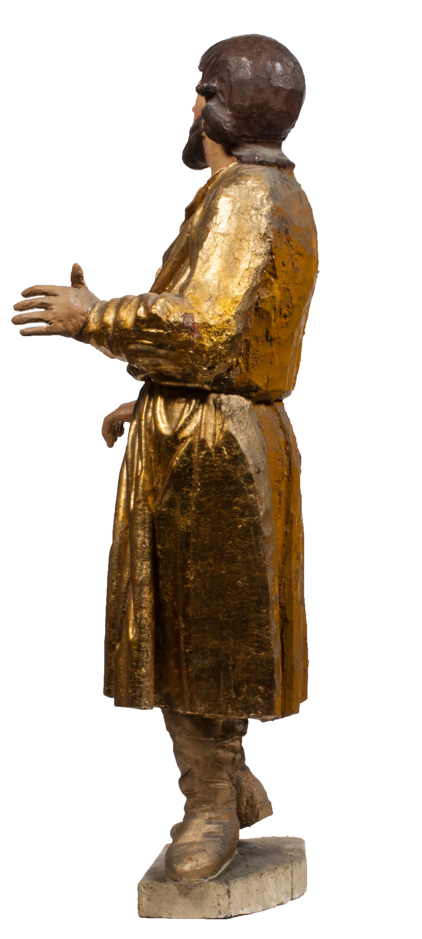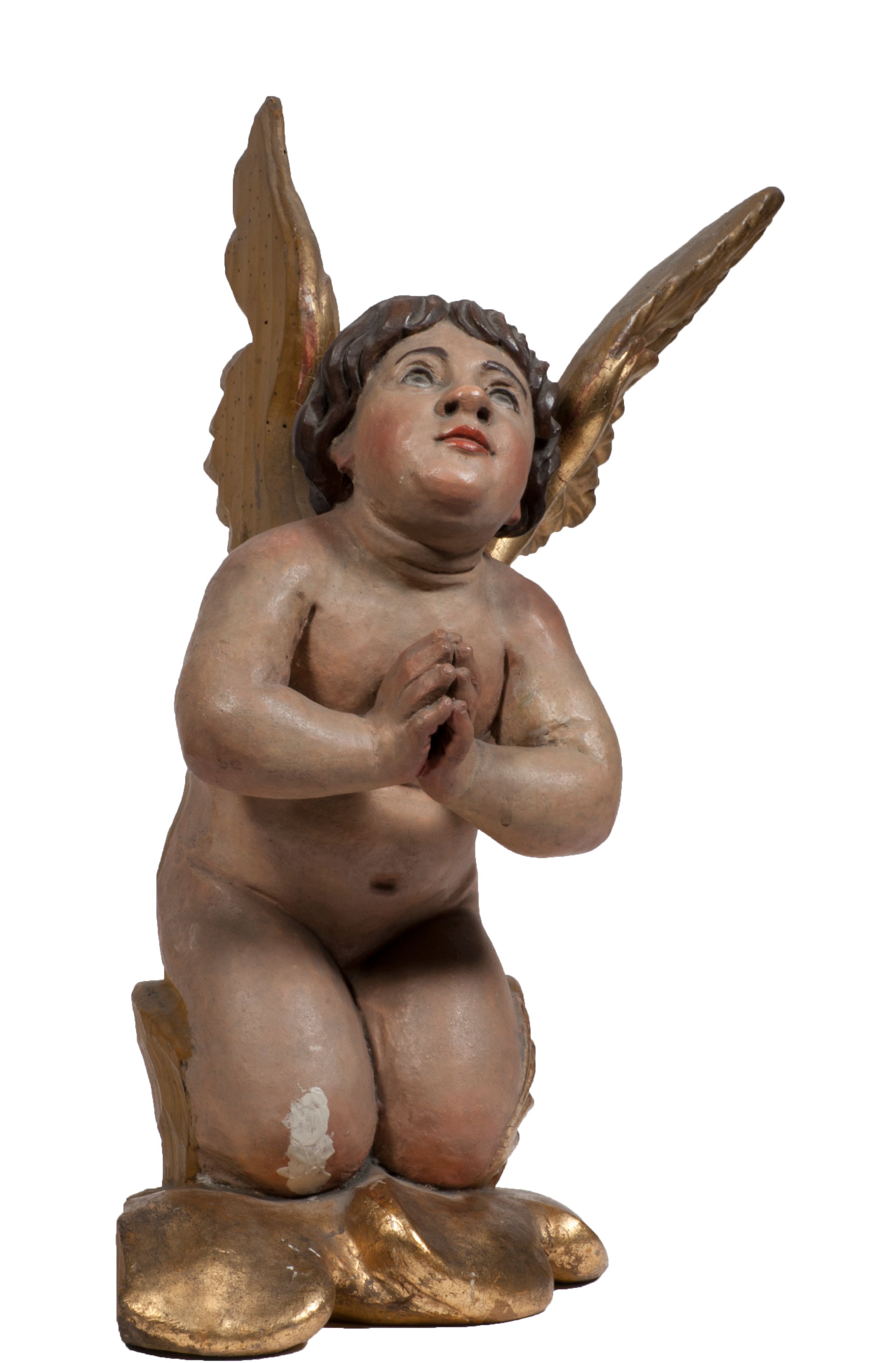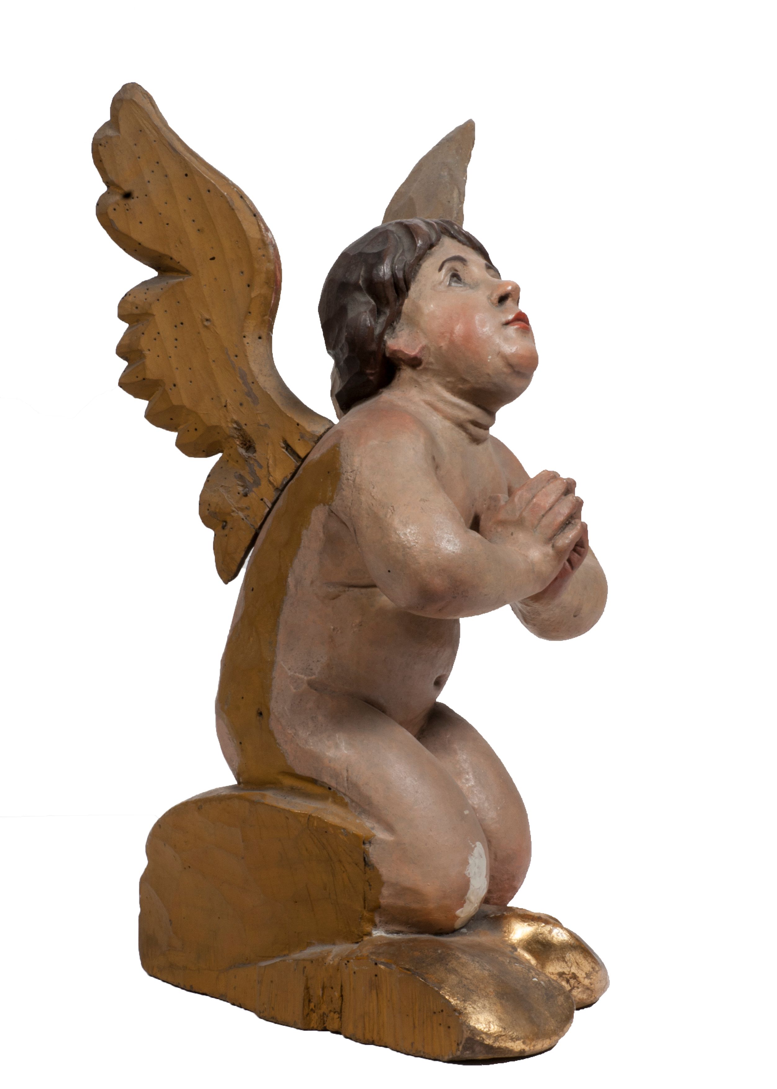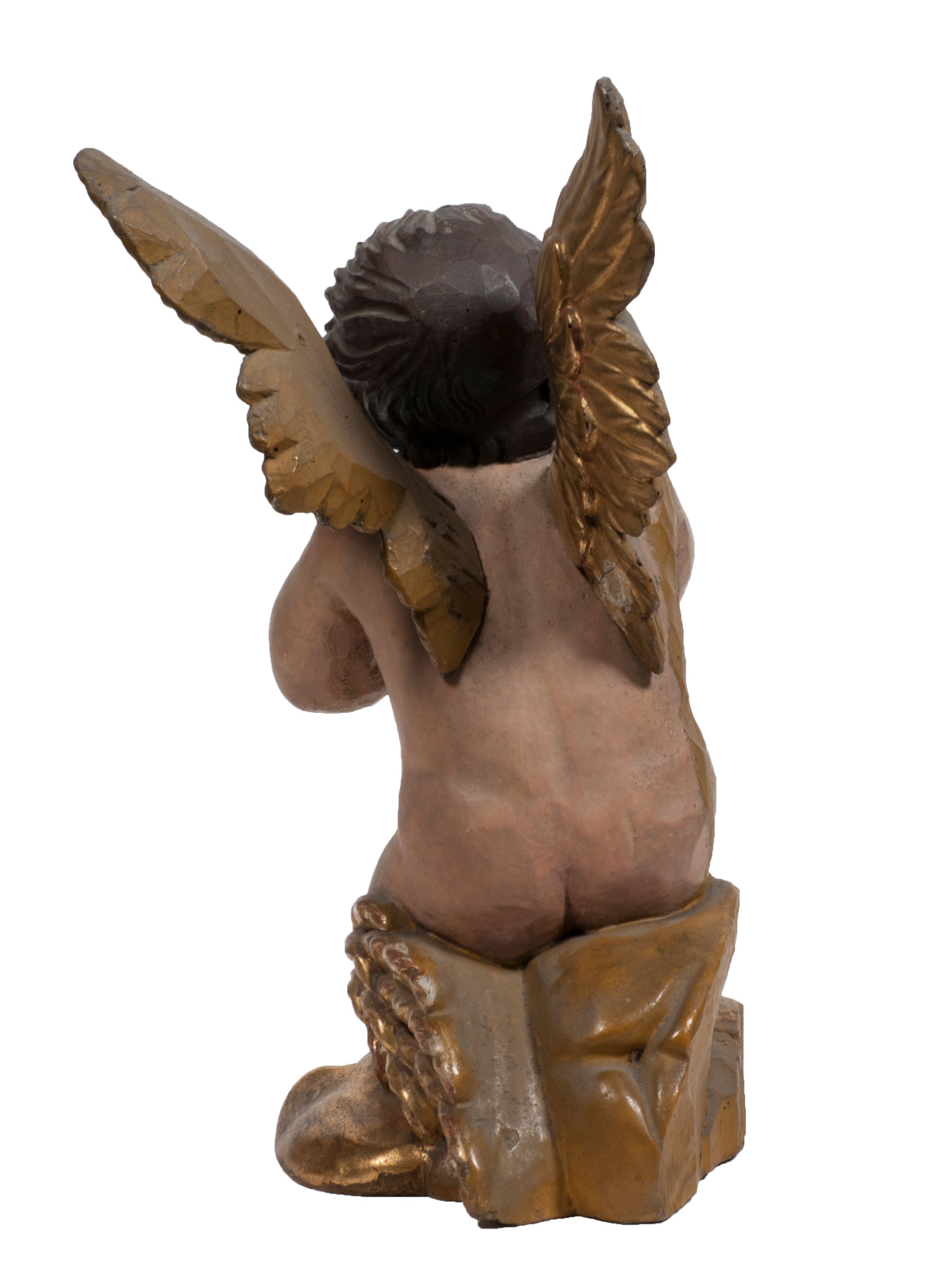 Tabernakulum w formie Arki Przymierza, adorowanej przez dwie klęczące figury starotestamentowego arcykapłana i biskupa oraz dwie stojące postacie lewitów oraz klęczące aniołów, zwieńczonej glorią promienistą z okiem Opatrzności. Wsparte na ośmiu cylindrycznych nóżkach prostopadłościenne tabernakulum jest od frontu podzielone na trzy pola wyznaczone kanelowanymi listwami. Pole środkowe stanowią drzwiczki z rytymi cyframi Dekalogu z ukrzyżowanym Chrystusem, pola boczne z wiązką pałek wodnych z jednej i winnym gronem z drugiej strony. Na skłębionych chmurach z podestem leży Baranek (obecnie w jego miejscu znajduje się figura Matki Boskiej). W tle znacznej wielkości gloria promienista z wieńcem chmur i umieszczonym w nim okiem Opatrzności oraz dwie uskrzydlone główki, nad którymi papieska tiara ze skrzyżowanymi kluczami. Po bokach Baranka dwa klęczące, uskrzydlone nagie aniołki. Obok tabernakulum dwie klęczące postacie z kadzielnicami w rękach. Postać po lewej w stroju biskupim, w albie, stule i kapie oraz infule z dwiema taśmami. Postać po prawej stronie jest ubrany w tradycyjny starotestamentowy strój – efod czyli tunikę i płaszcz wierzchni przepasany na biodrach, pektorał na piersi i zawój na głowie. Za nimi dwaj stojący lewici w tunikach przepasanych na biodrach i wysokich butach. Adorujące Baranka anioły w pozycji klęczącej z rękami skrzyżowanymi na piersi, ze skrzydłami na plecach i nogami w połowie utworzonymi ze skrzydeł.