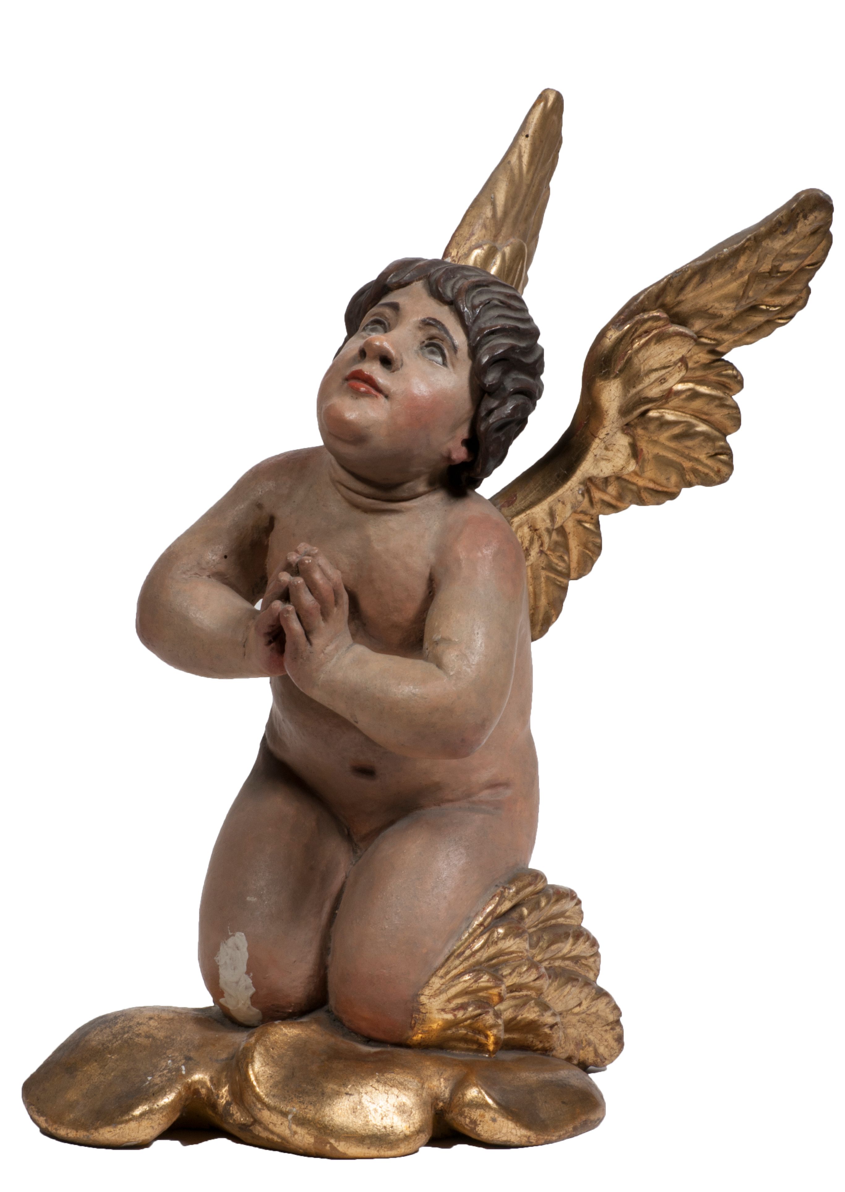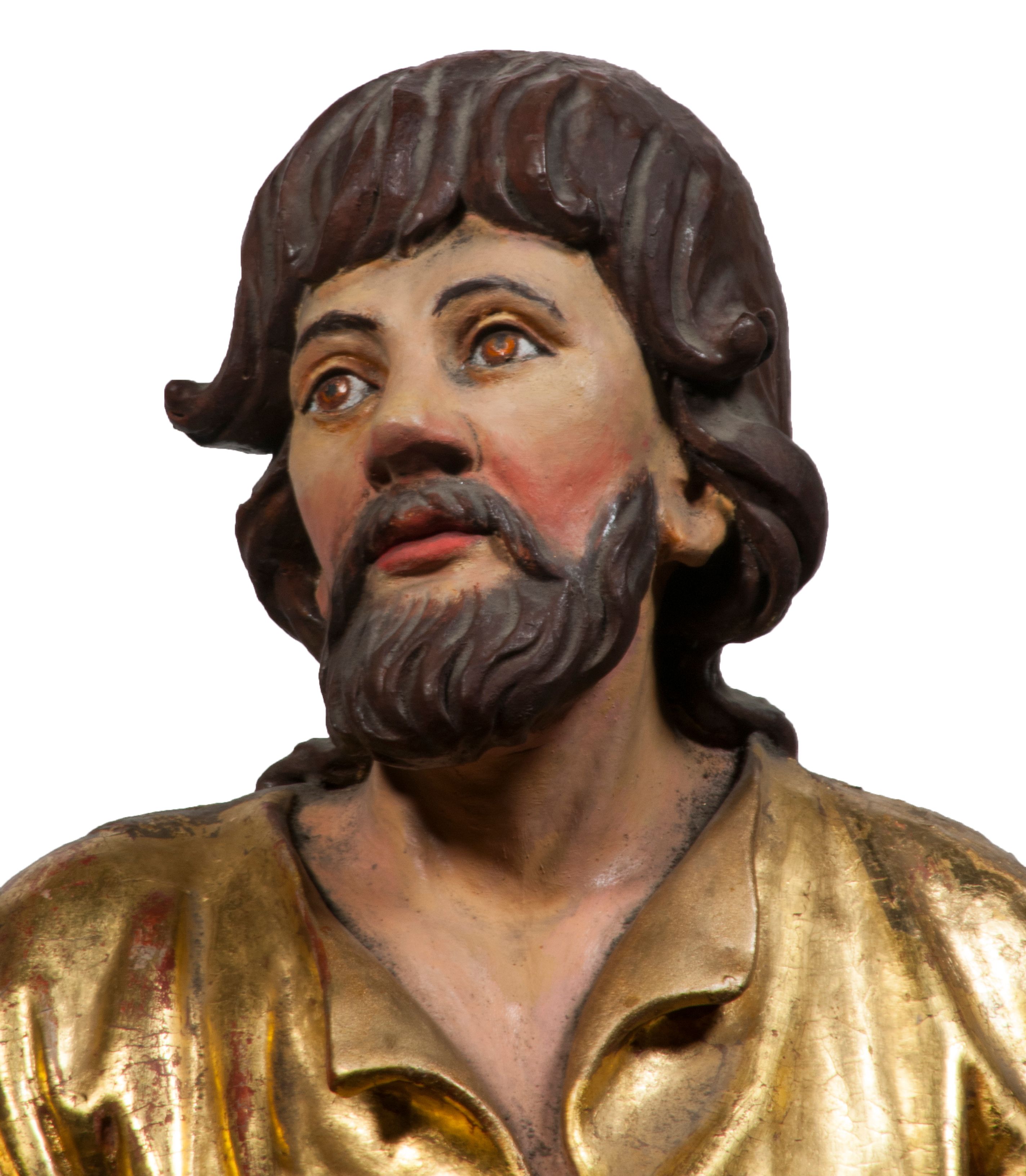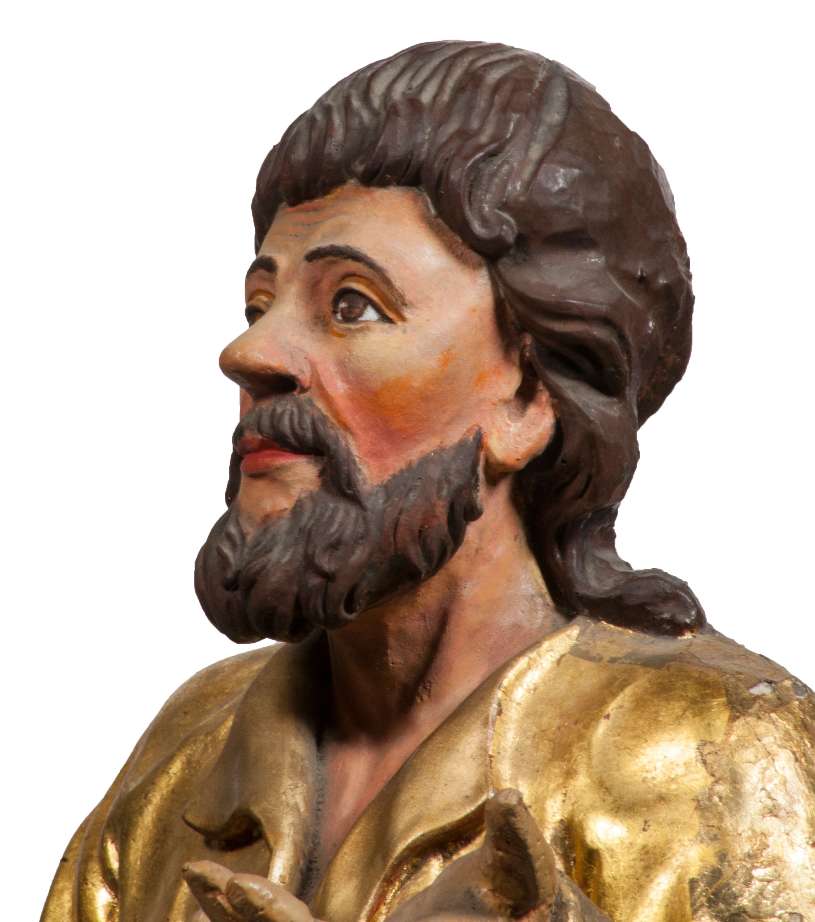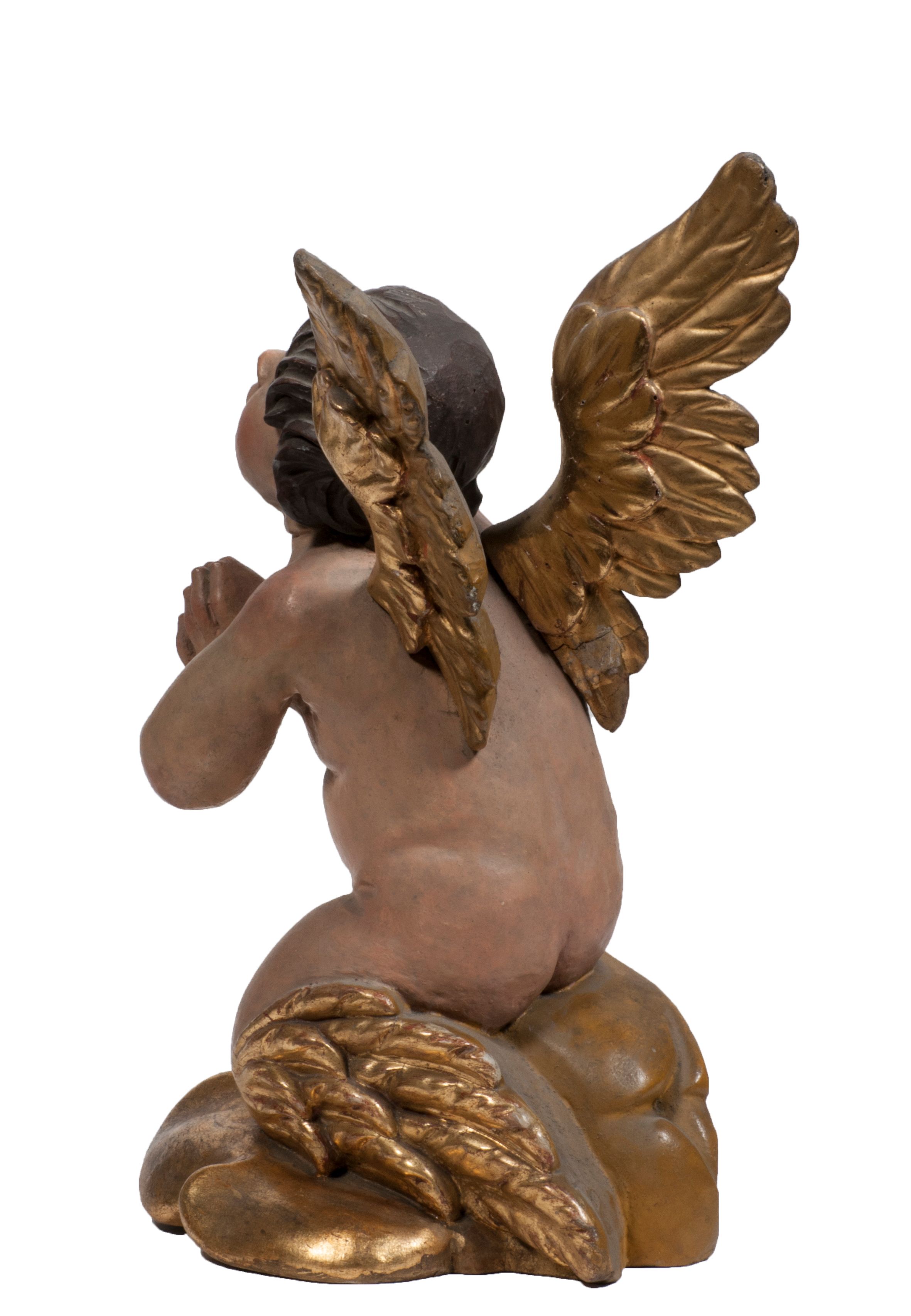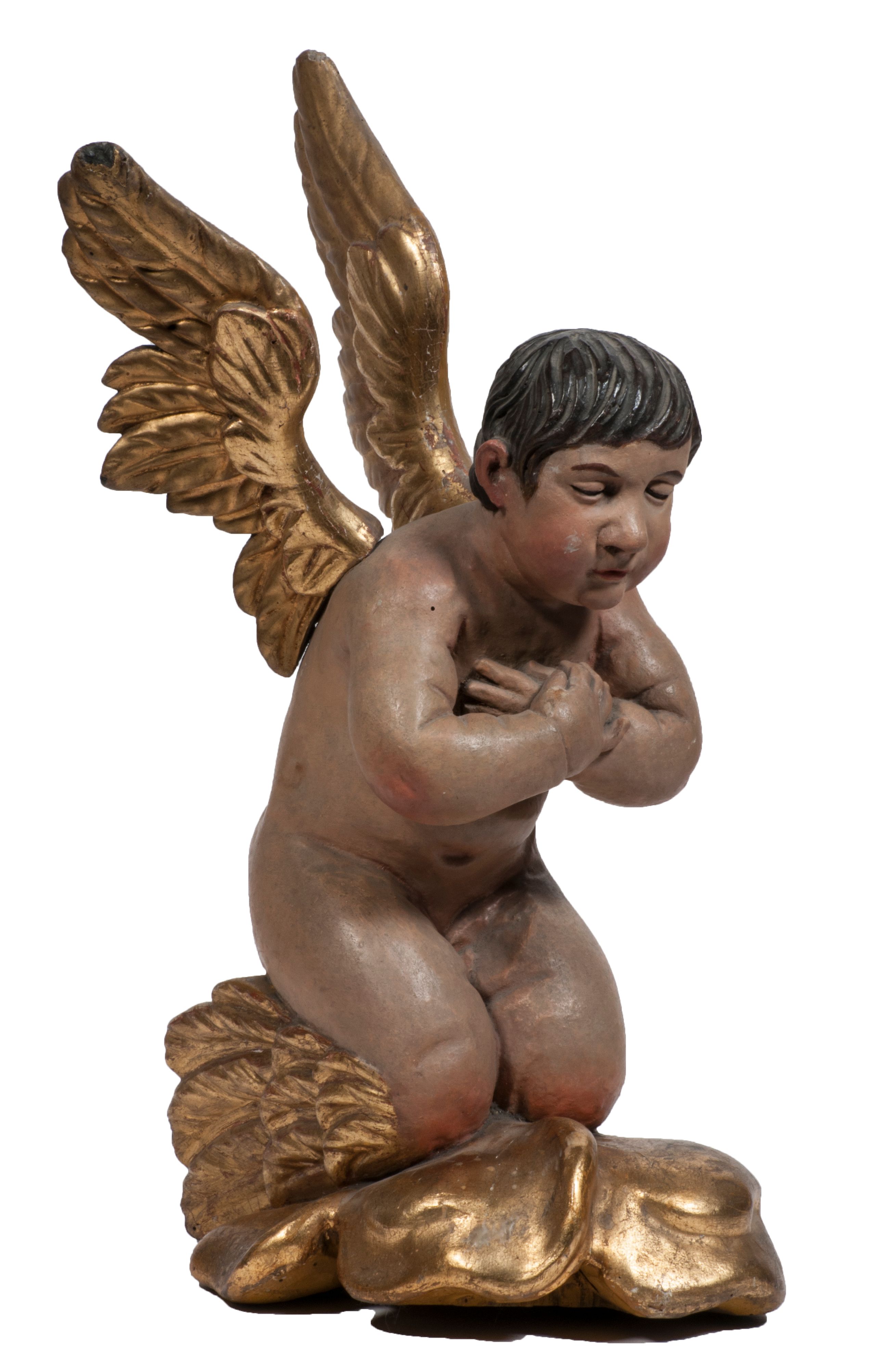 Tabernakulum w formie Arki Przymierza, adorowanej przez dwie klęczące figury starotestamentowego arcykapłana i biskupa oraz dwie stojące postacie lewitów oraz klęczące aniołów, zwieńczonej glorią promienistą z okiem Opatrzności. Wsparte na ośmiu cylindrycznych nóżkach prostopadłościenne tabernakulum jest od frontu podzielone na trzy pola wyznaczone kanelowanymi listwami. Pole środkowe stanowią drzwiczki z rytymi cyframi Dekalogu z ukrzyżowanym Chrystusem, pola boczne z wiązką pałek wodnych z jednej i winnym gronem z drugiej strony. Na skłębionych chmurach z podestem leży Baranek (obecnie w jego miejscu znajduje się figura Matki Boskiej). W tle znacznej wielkości gloria promienista z wieńcem chmur i umieszczonym w nim okiem Opatrzności oraz dwie uskrzydlone główki, nad którymi papieska tiara ze skrzyżowanymi kluczami. Po bokach Baranka dwa klęczące, uskrzydlone nagie aniołki. Obok tabernakulum dwie klęczące postacie z kadzielnicami w rękach. Postać po lewej w stroju biskupim, w albie, stule i kapie oraz infule z dwiema taśmami. Postać po prawej stronie jest ubrany w tradycyjny starotestamentowy strój – efod czyli tunikę i płaszcz wierzchni przepasany na biodrach, pektorał na piersi i zawój na głowie. Za nimi dwaj stojący lewici w tunikach przepasanych na biodrach i wysokich butach. Adorujące Baranka anioły w pozycji klęczącej z rękami skrzyżowanymi na piersi, ze skrzydłami na plecach i nogami w połowie utworzonymi ze skrzydeł.