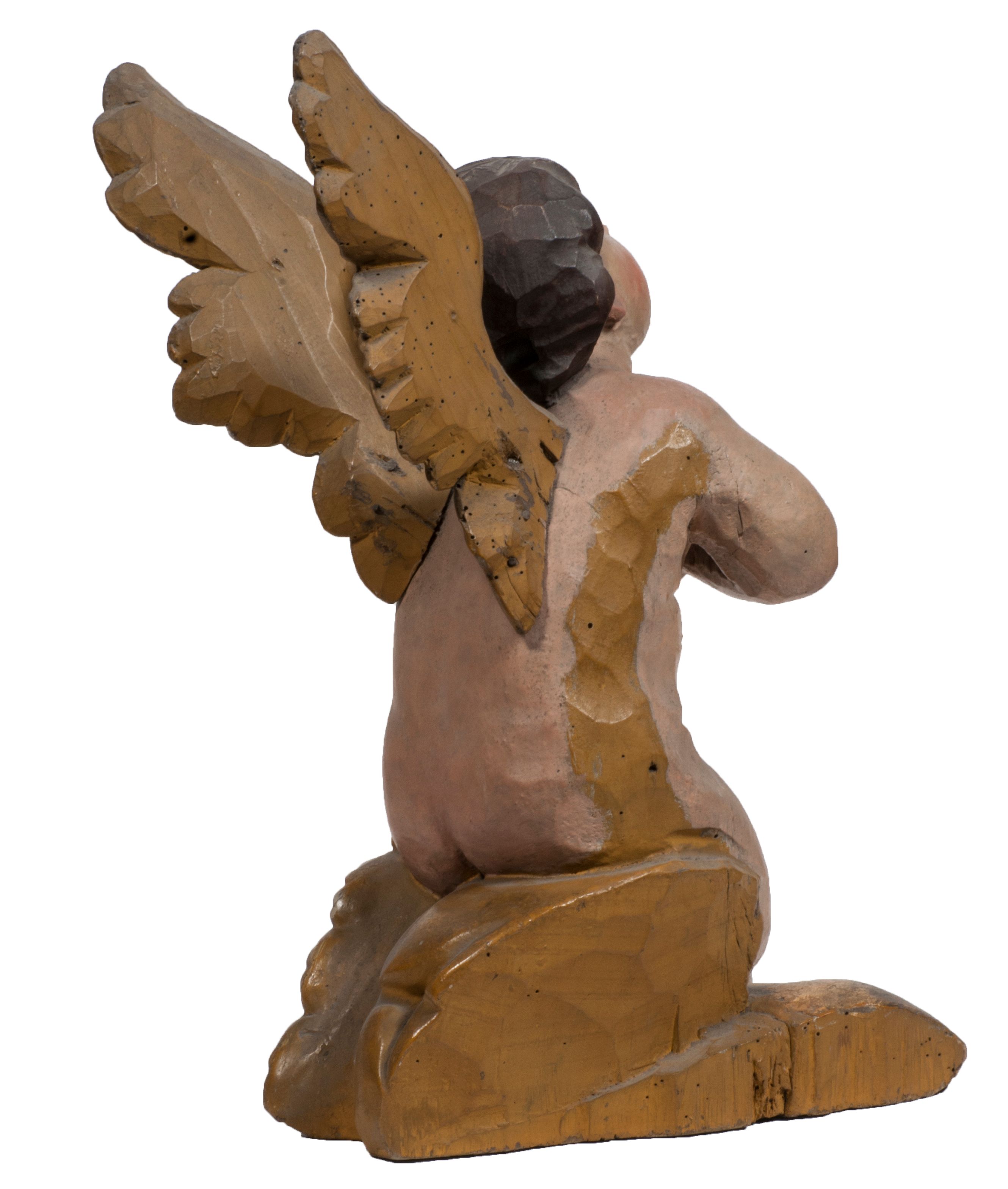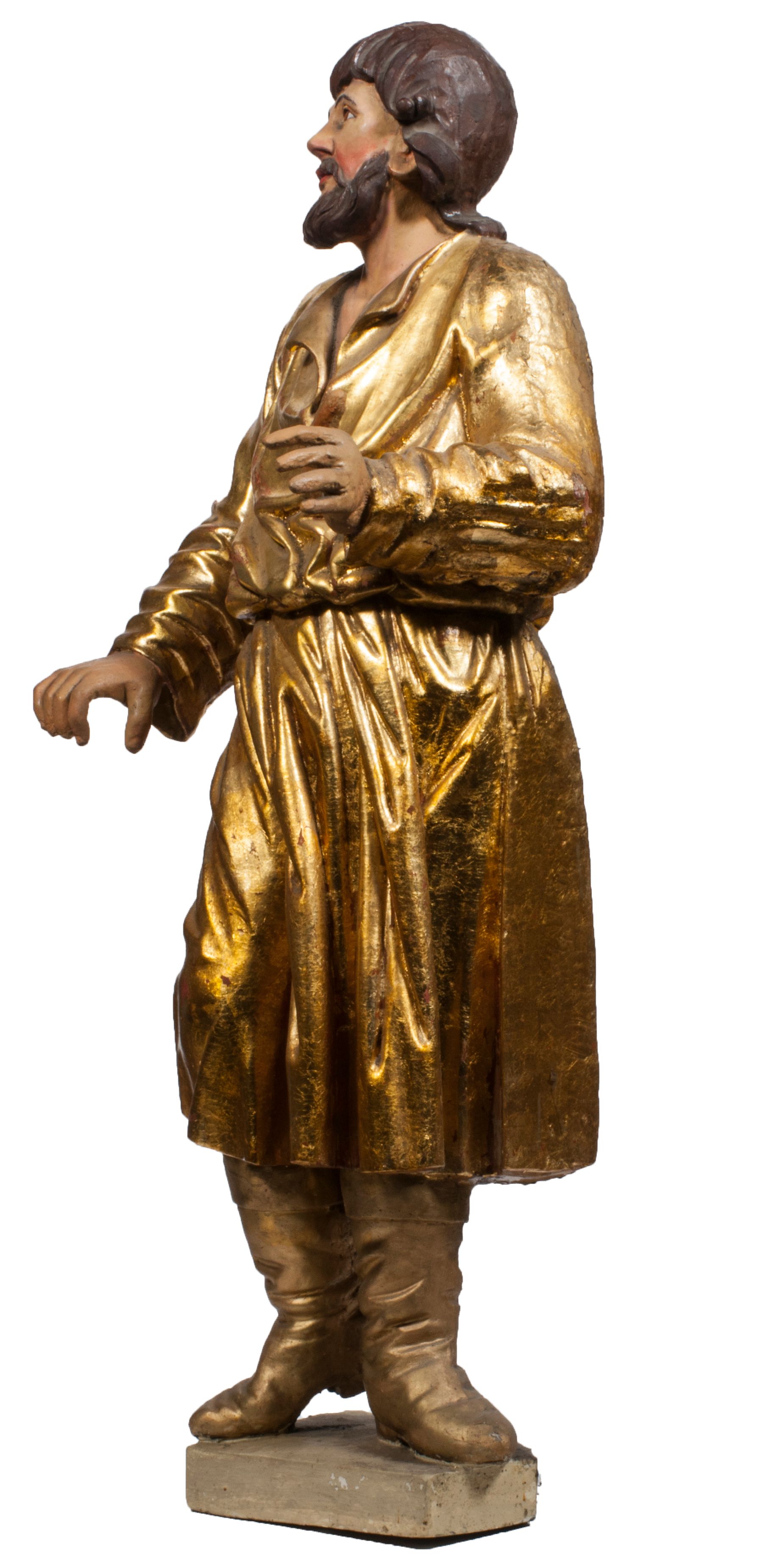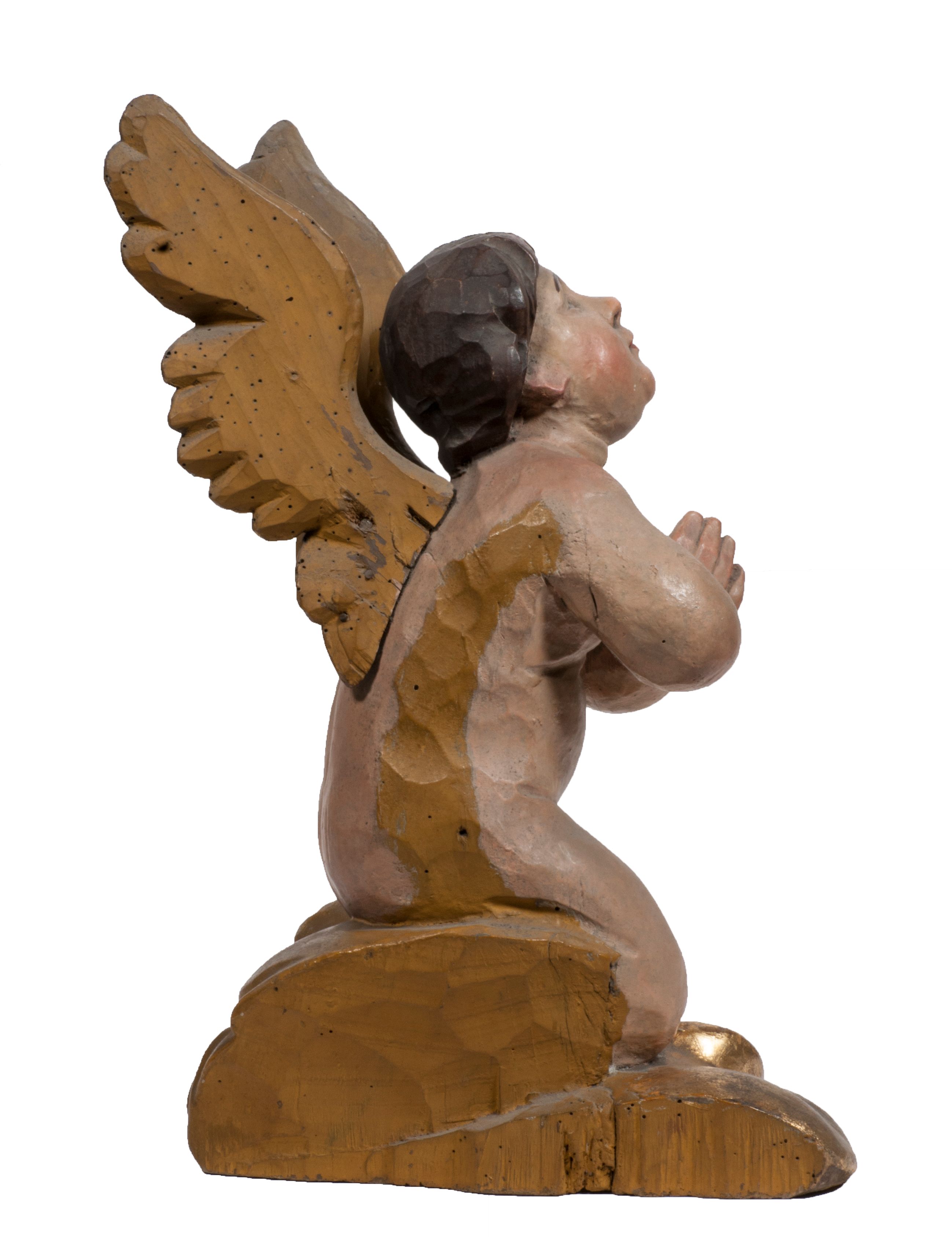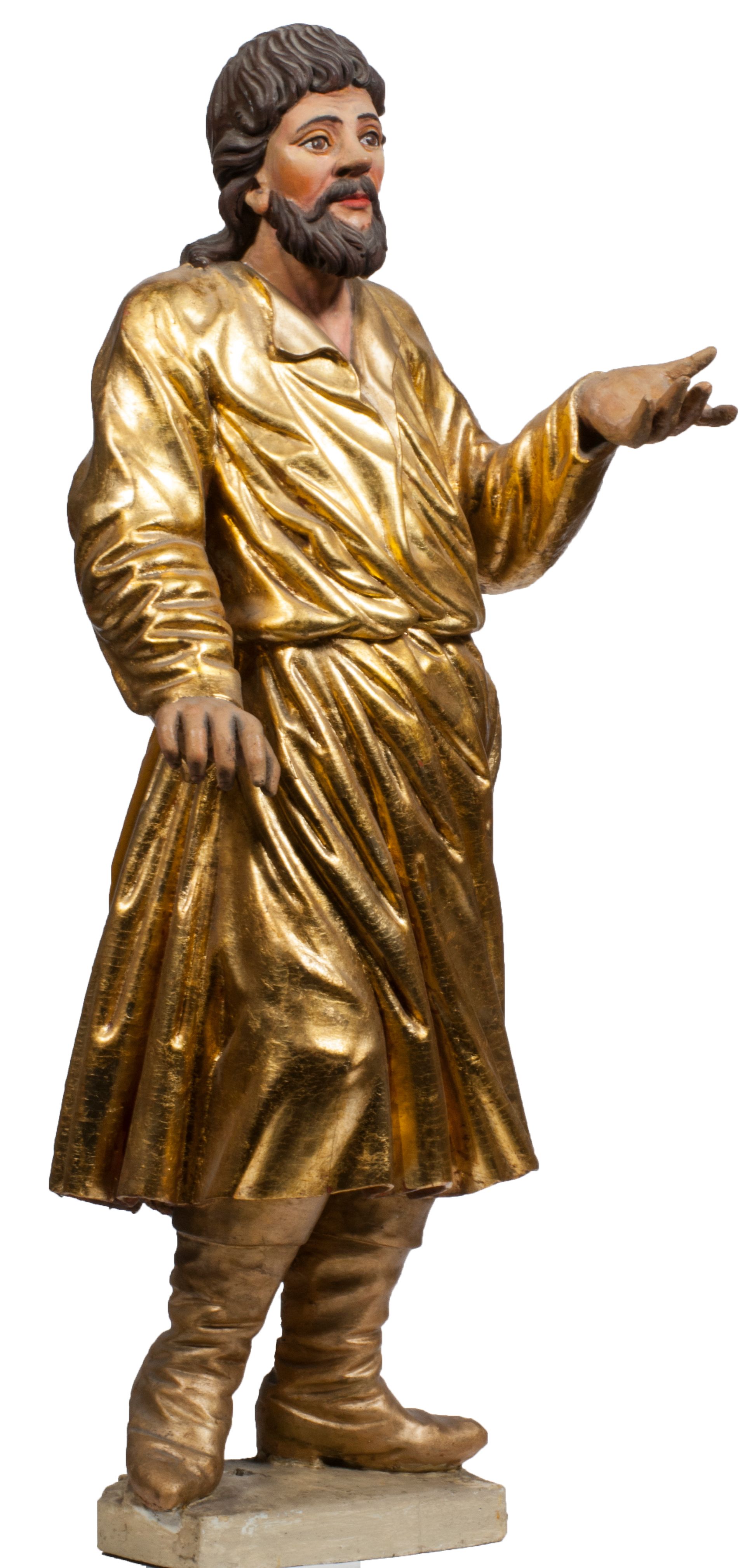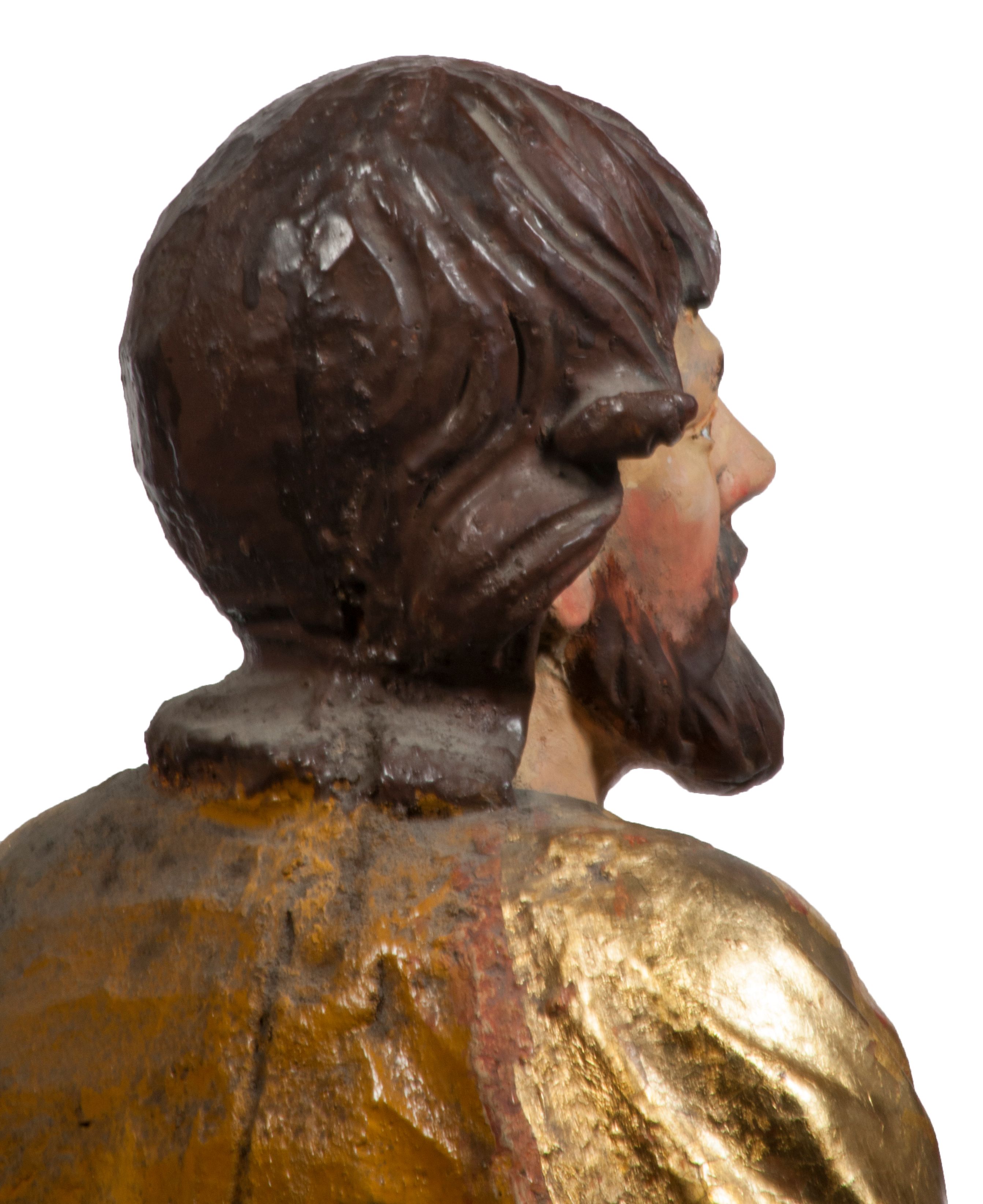 Tabernakulum w formie Arki Przymierza, adorowanej przez dwie klęczące figury starotestamentowego arcykapłana i biskupa oraz dwie stojące postacie lewitów oraz klęczące aniołów, zwieńczonej glorią promienistą z okiem Opatrzności. Wsparte na ośmiu cylindrycznych nóżkach prostopadłościenne tabernakulum jest od frontu podzielone na trzy pola wyznaczone kanelowanymi listwami. Pole środkowe stanowią drzwiczki z rytymi cyframi Dekalogu z ukrzyżowanym Chrystusem, pola boczne z wiązką pałek wodnych z jednej i winnym gronem z drugiej strony. Na skłębionych chmurach z podestem leży Baranek (obecnie w jego miejscu znajduje się figura Matki Boskiej). W tle znacznej wielkości gloria promienista z wieńcem chmur i umieszczonym w nim okiem Opatrzności oraz dwie uskrzydlone główki, nad którymi papieska tiara ze skrzyżowanymi kluczami. Po bokach Baranka dwa klęczące, uskrzydlone nagie aniołki. Obok tabernakulum dwie klęczące postacie z kadzielnicami w rękach. Postać po lewej w stroju biskupim, w albie, stule i kapie oraz infule z dwiema taśmami. Postać po prawej stronie jest ubrany w tradycyjny starotestamentowy strój – efod czyli tunikę i płaszcz wierzchni przepasany na biodrach, pektorał na piersi i zawój na głowie. Za nimi dwaj stojący lewici w tunikach przepasanych na biodrach i wysokich butach. Adorujące Baranka anioły w pozycji klęczącej z rękami skrzyżowanymi na piersi, ze skrzydłami na plecach i nogami w połowie utworzonymi ze skrzydeł.