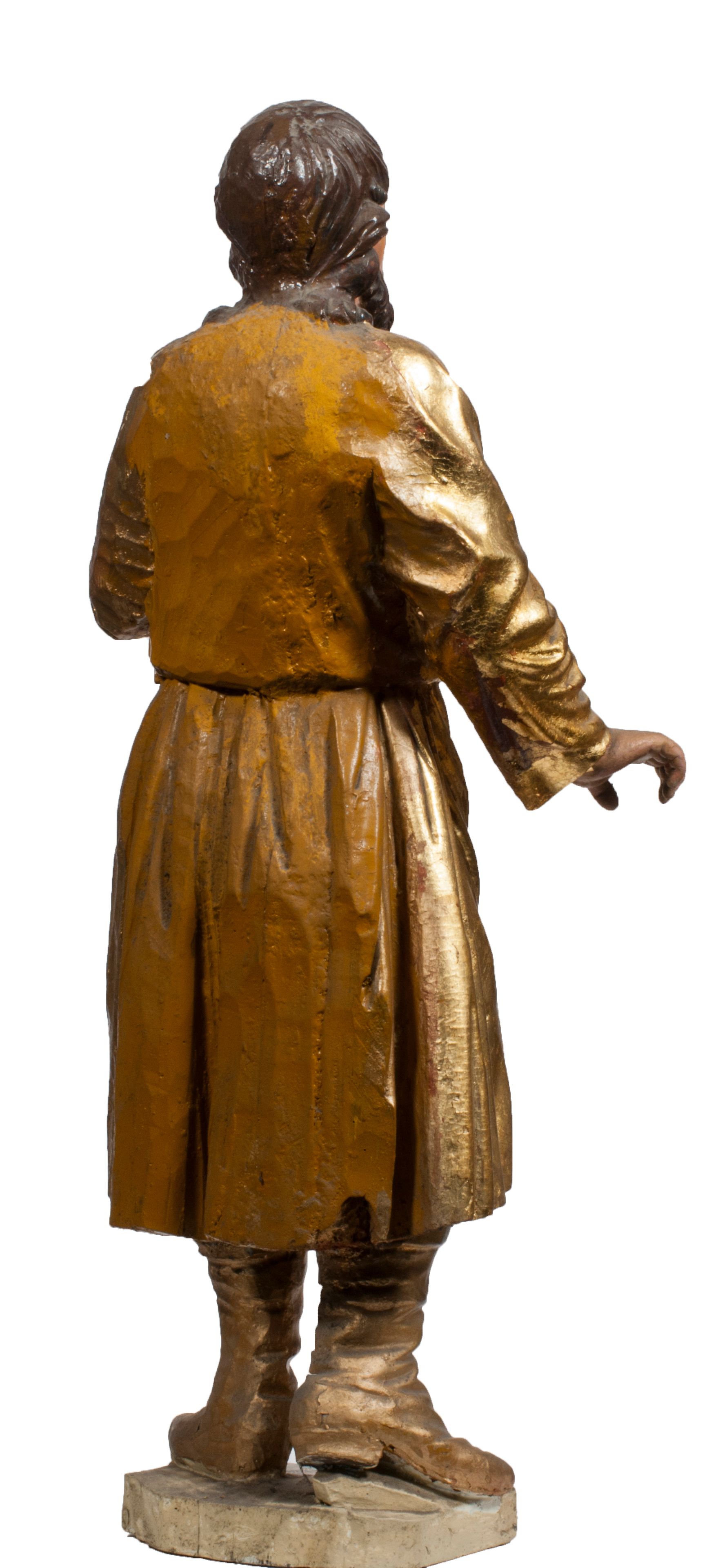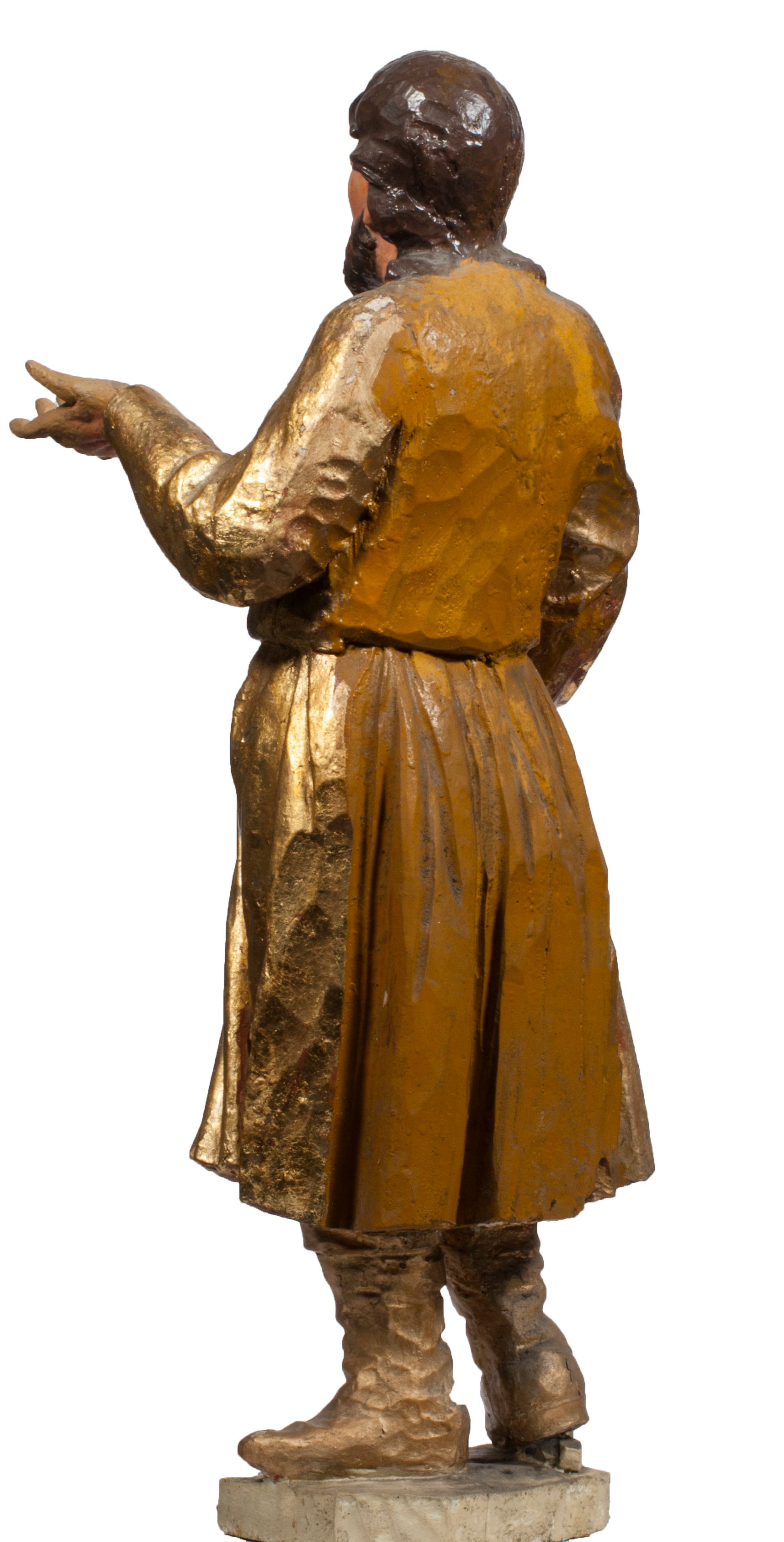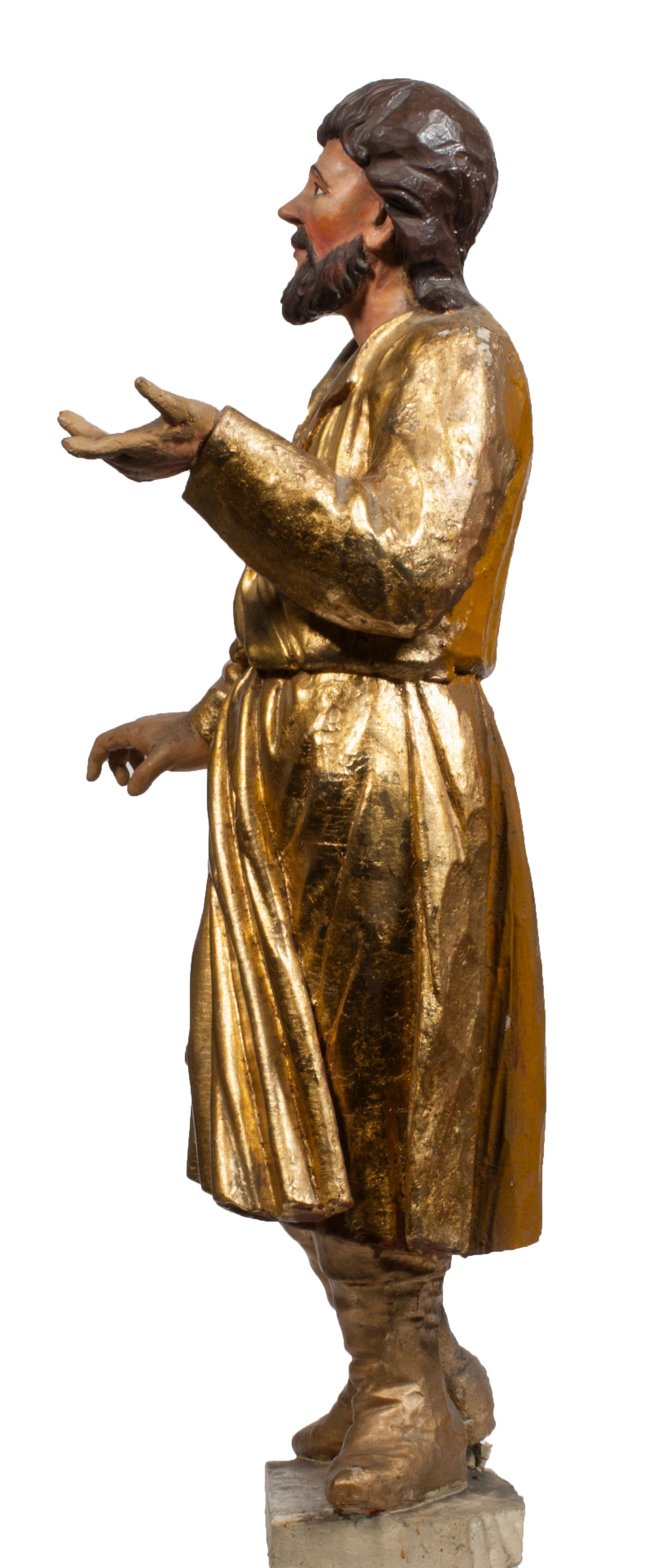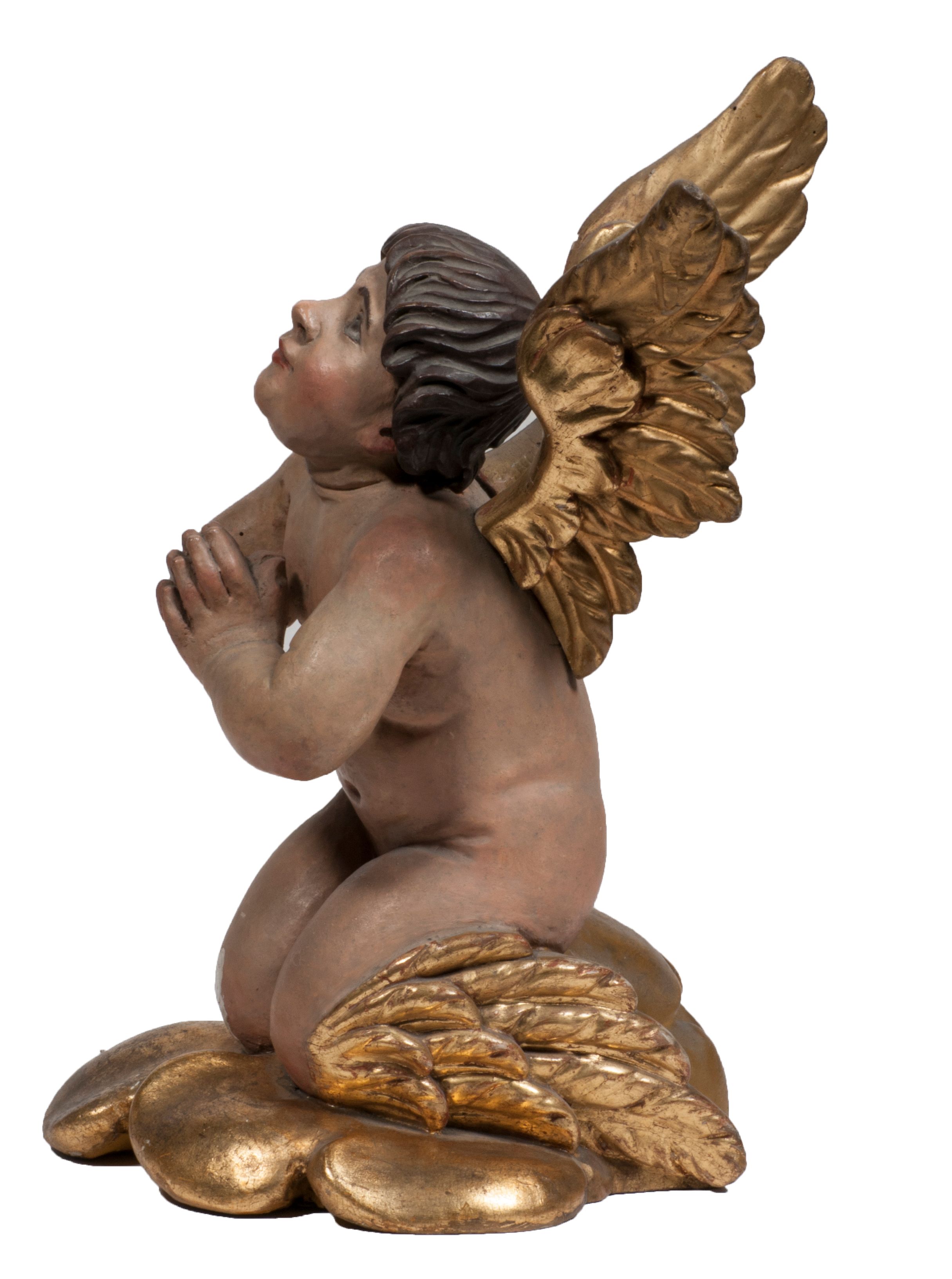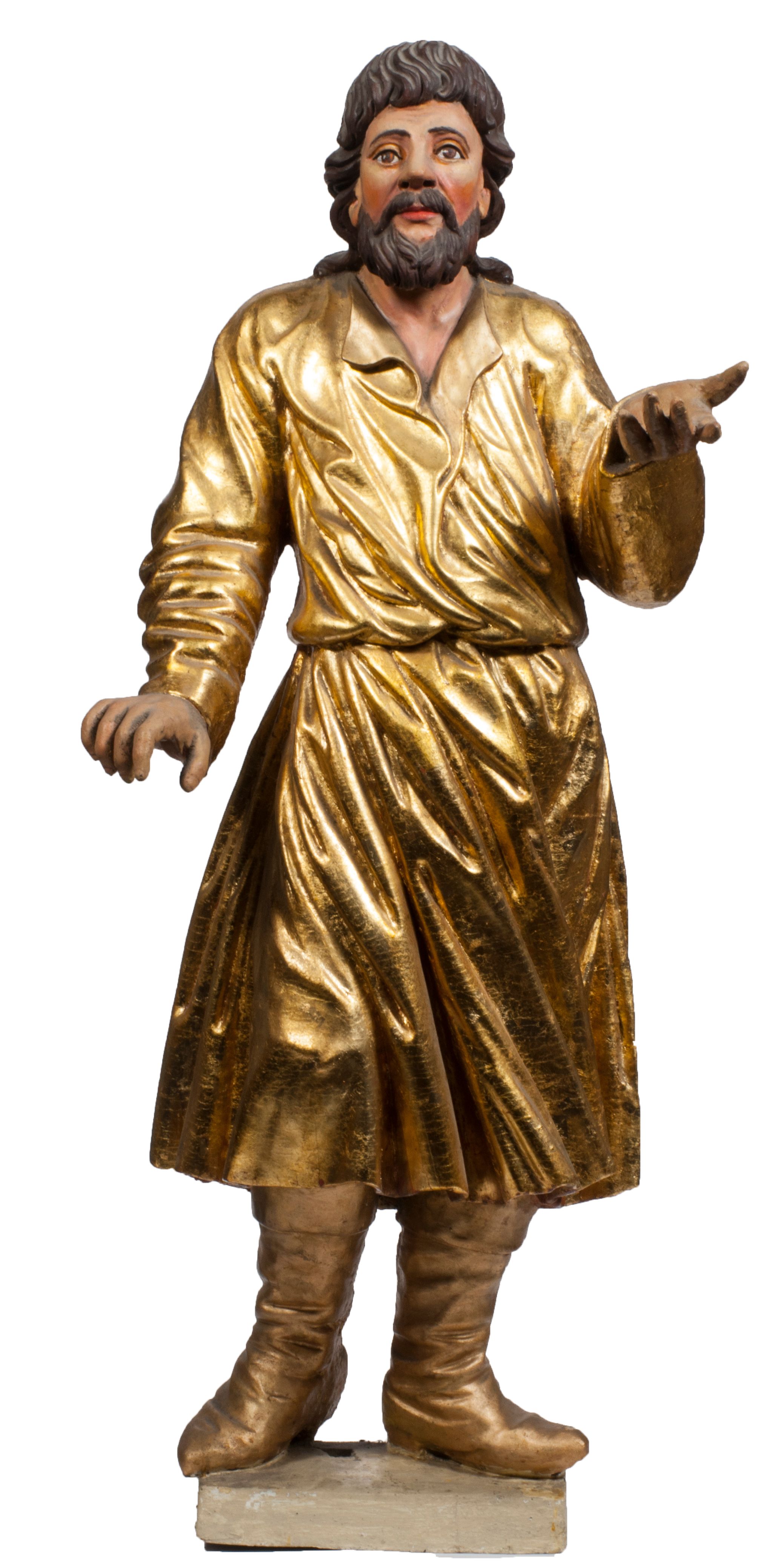 Tabernakulum w formie Arki Przymierza, adorowanej przez dwie klęczące figury starotestamentowego arcykapłana i biskupa oraz dwie stojące postacie lewitów oraz klęczące aniołów, zwieńczonej glorią promienistą z okiem Opatrzności. Wsparte na ośmiu cylindrycznych nóżkach prostopadłościenne tabernakulum jest od frontu podzielone na trzy pola wyznaczone kanelowanymi listwami. Pole środkowe stanowią drzwiczki z rytymi cyframi Dekalogu z ukrzyżowanym Chrystusem, pola boczne z wiązką pałek wodnych z jednej i winnym gronem z drugiej strony. Na skłębionych chmurach z podestem leży Baranek (obecnie w jego miejscu znajduje się figura Matki Boskiej). W tle znacznej wielkości gloria promienista z wieńcem chmur i umieszczonym w nim okiem Opatrzności oraz dwie uskrzydlone główki, nad którymi papieska tiara ze skrzyżowanymi kluczami. Po bokach Baranka dwa klęczące, uskrzydlone nagie aniołki. Obok tabernakulum dwie klęczące postacie z kadzielnicami w rękach. Postać po lewej w stroju biskupim, w albie, stule i kapie oraz infule z dwiema taśmami. Postać po prawej stronie jest ubrany w tradycyjny starotestamentowy strój – efod czyli tunikę i płaszcz wierzchni przepasany na biodrach, pektorał na piersi i zawój na głowie. Za nimi dwaj stojący lewici w tunikach przepasanych na biodrach i wysokich butach. Adorujące Baranka anioły w pozycji klęczącej z rękami skrzyżowanymi na piersi, ze skrzydłami na plecach i nogami w połowie utworzonymi ze skrzydeł.