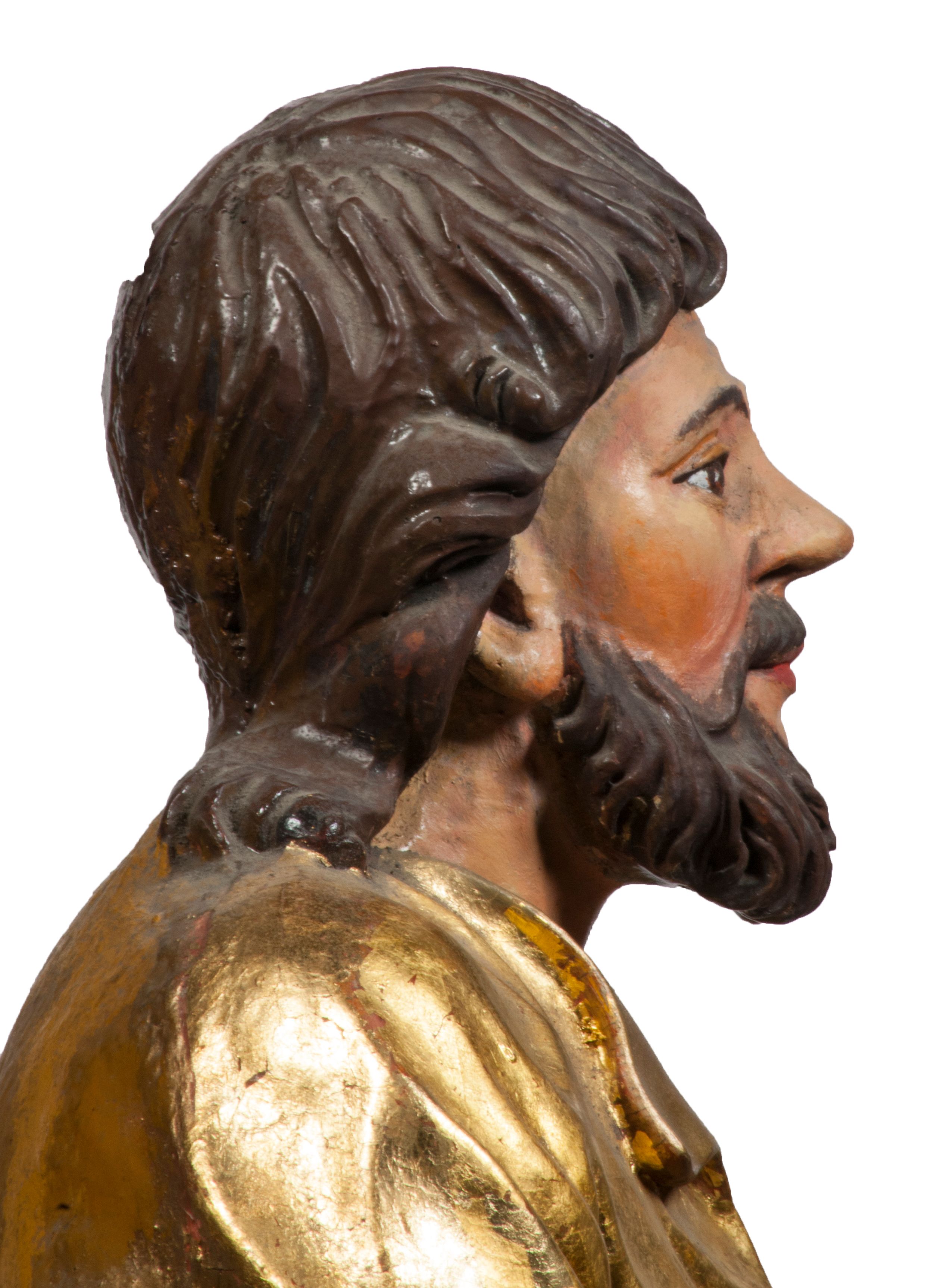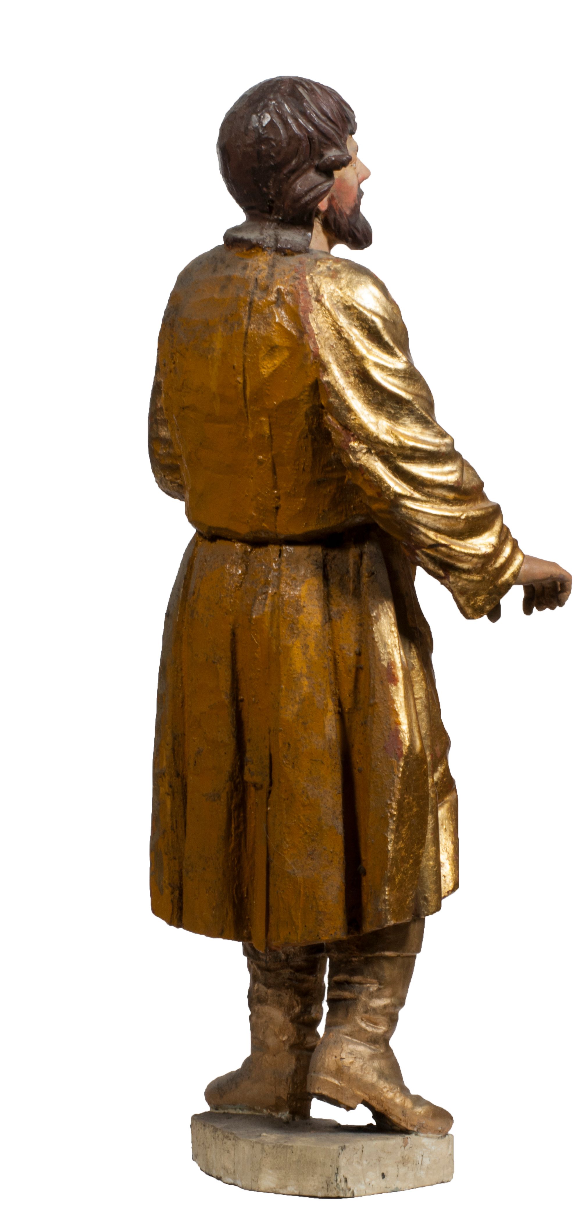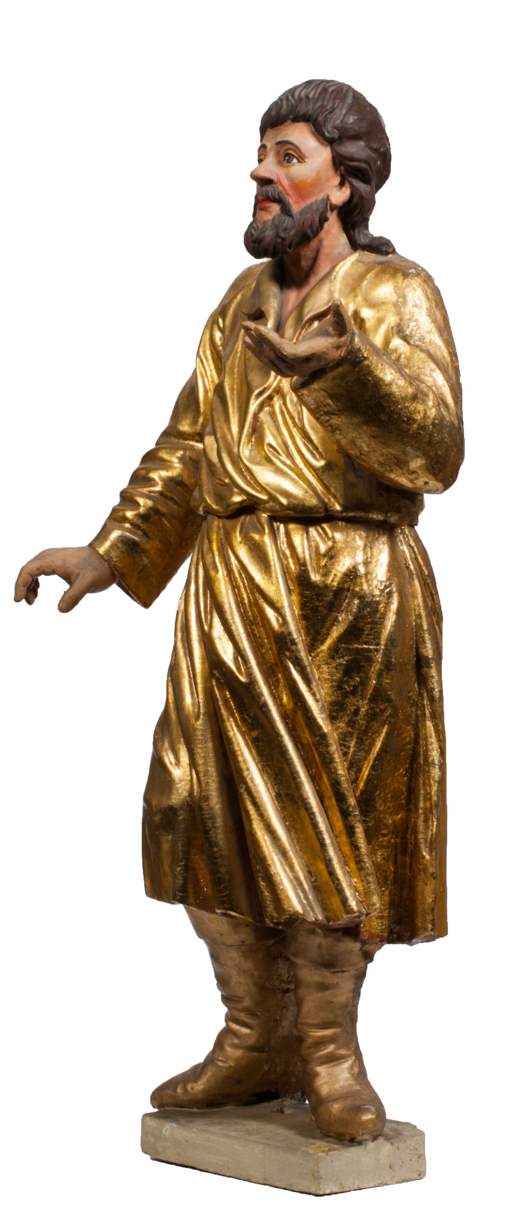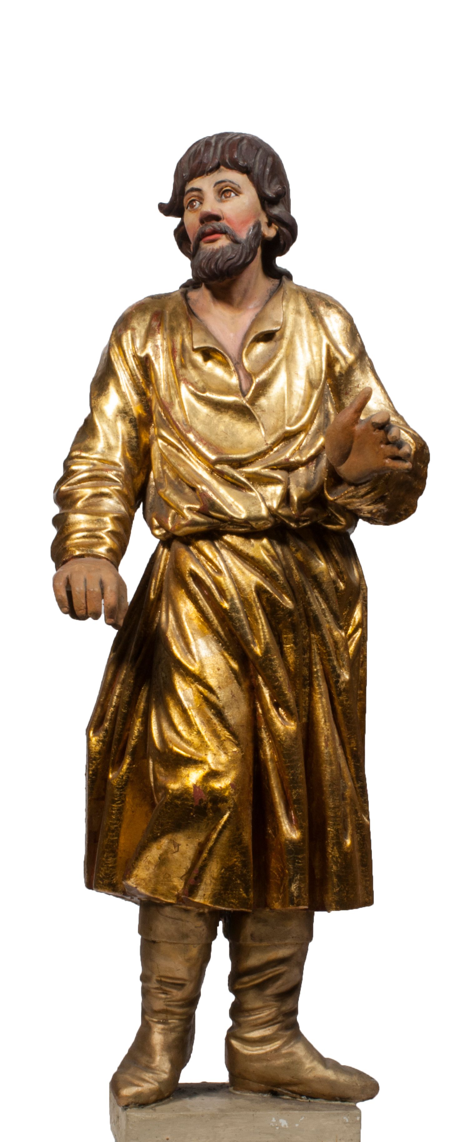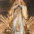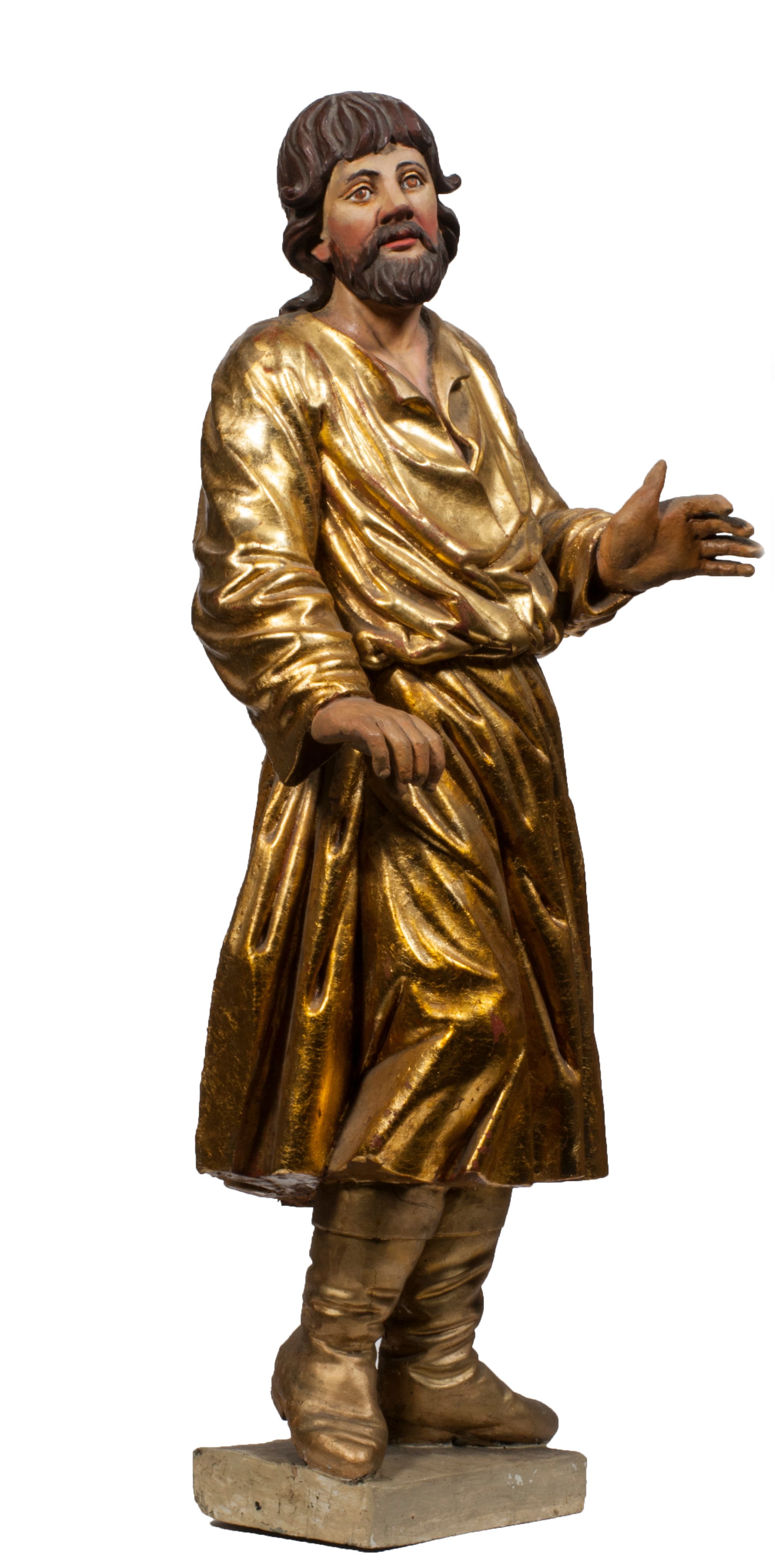 Tabernakulum w formie Arki Przymierza, adorowanej przez dwie klęczące figury starotestamentowego arcykapłana i biskupa oraz dwie stojące postacie lewitów oraz klęczące aniołów, zwieńczonej glorią promienistą z okiem Opatrzności. Wsparte na ośmiu cylindrycznych nóżkach prostopadłościenne tabernakulum jest od frontu podzielone na trzy pola wyznaczone kanelowanymi listwami. Pole środkowe stanowią drzwiczki z rytymi cyframi Dekalogu z ukrzyżowanym Chrystusem, pola boczne z wiązką pałek wodnych z jednej i winnym gronem z drugiej strony. Na skłębionych chmurach z podestem leży Baranek (obecnie w jego miejscu znajduje się figura Matki Boskiej). W tle znacznej wielkości gloria promienista z wieńcem chmur i umieszczonym w nim okiem Opatrzności oraz dwie uskrzydlone główki, nad którymi papieska tiara ze skrzyżowanymi kluczami. Po bokach Baranka dwa klęczące, uskrzydlone nagie aniołki. Obok tabernakulum dwie klęczące postacie z kadzielnicami w rękach. Postać po lewej w stroju biskupim, w albie, stule i kapie oraz infule z dwiema taśmami. Postać po prawej stronie jest ubrany w tradycyjny starotestamentowy strój – efod czyli tunikę i płaszcz wierzchni przepasany na biodrach, pektorał na piersi i zawój na głowie. Za nimi dwaj stojący lewici w tunikach przepasanych na biodrach i wysokich butach. Adorujące Baranka anioły w pozycji klęczącej z rękami skrzyżowanymi na piersi, ze skrzydłami na plecach i nogami w połowie utworzonymi ze skrzydeł.