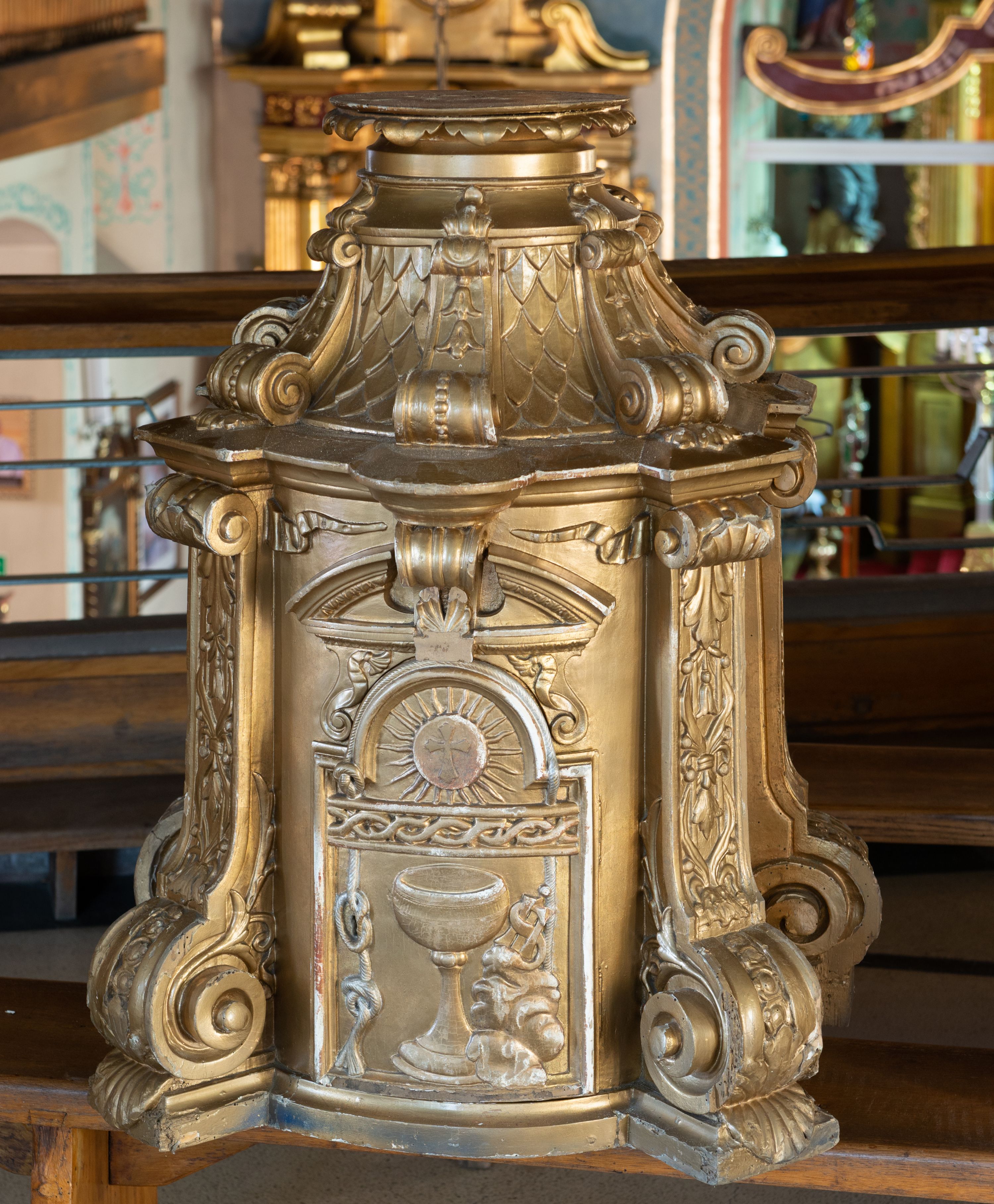 Tabernakulum z ołtarza głównego należy do najciekawszych tego rodzaju mebli kościelnych w Małopolsce. Wyróżnia je wykwintny detal ornamentalny w postaci listków akantu powiązanych z regencyjnymi taśmami i kampanulami.