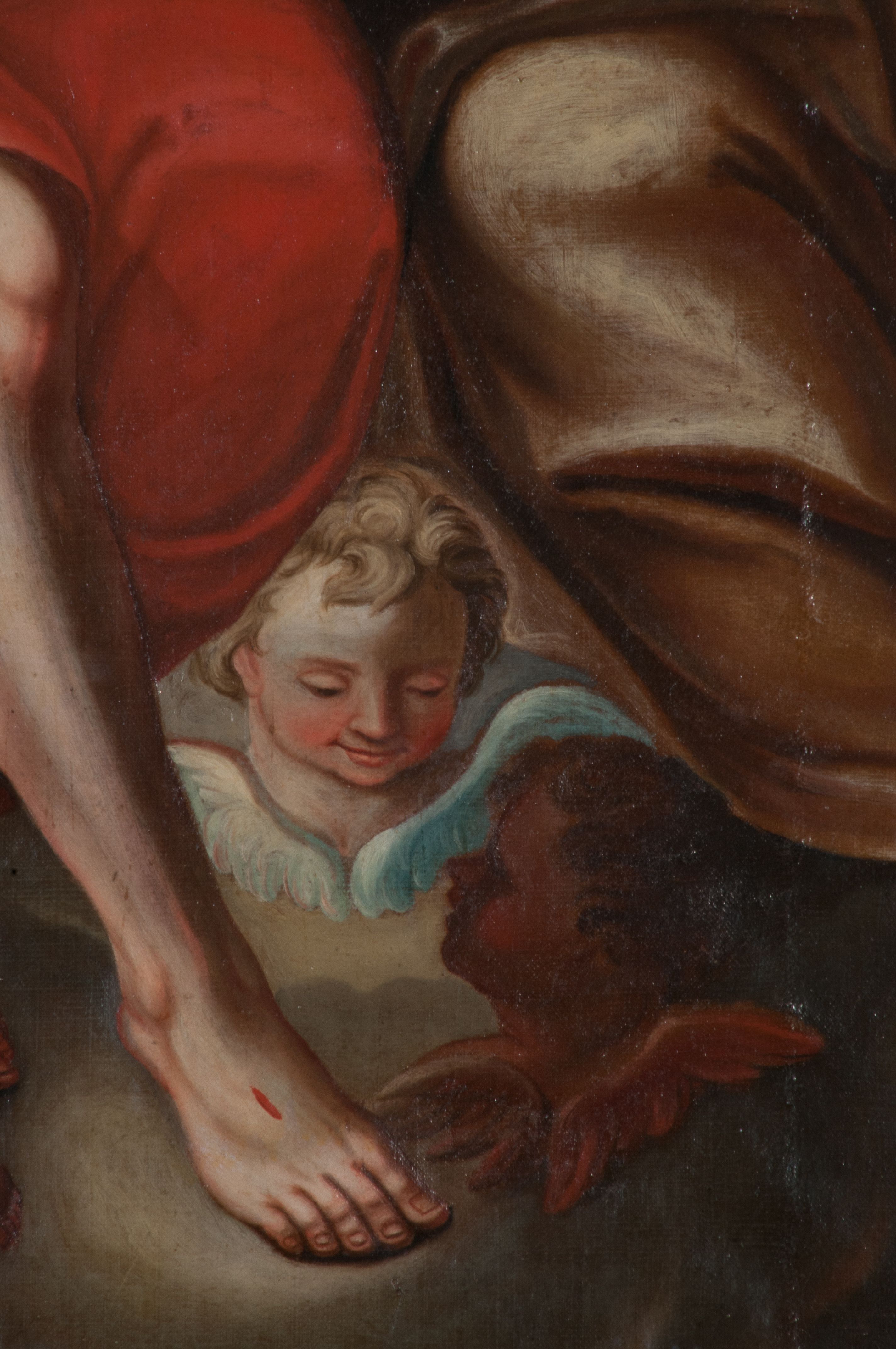 U dołu obrazu sfalowane płótno. Dzieło było konserwowane w 1997 roku.