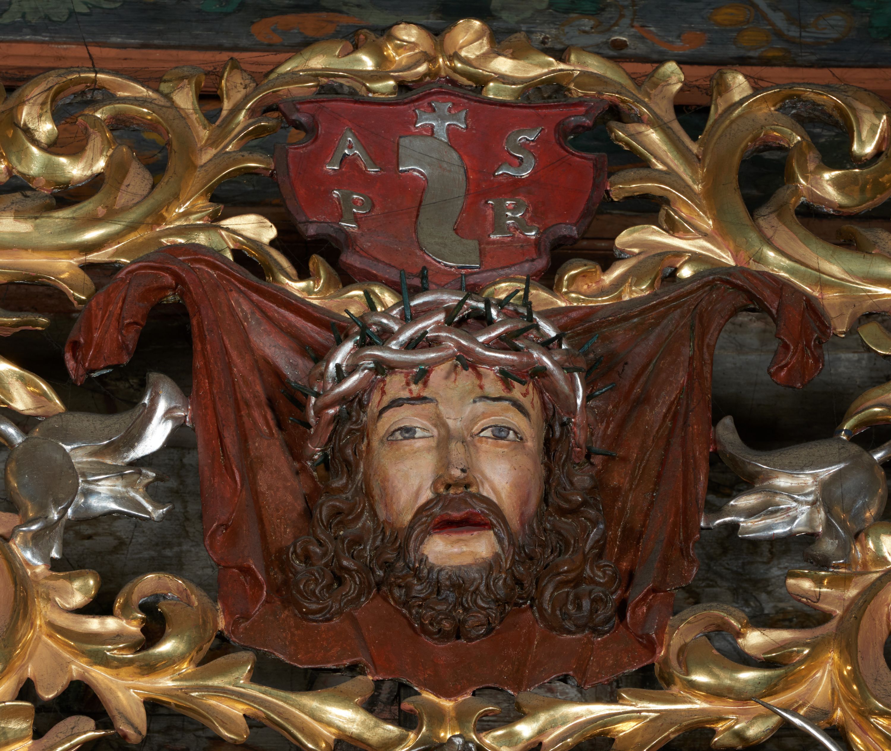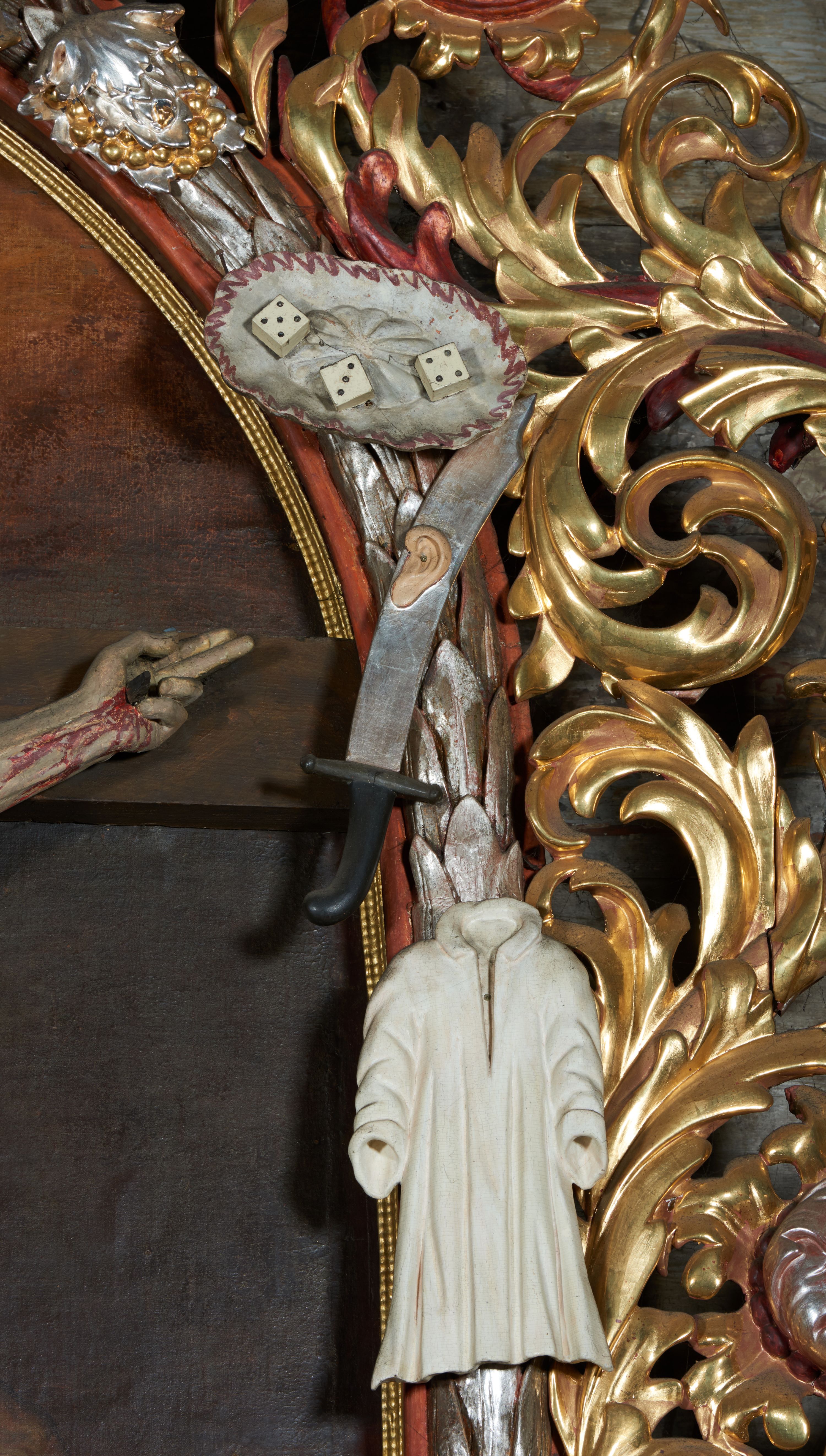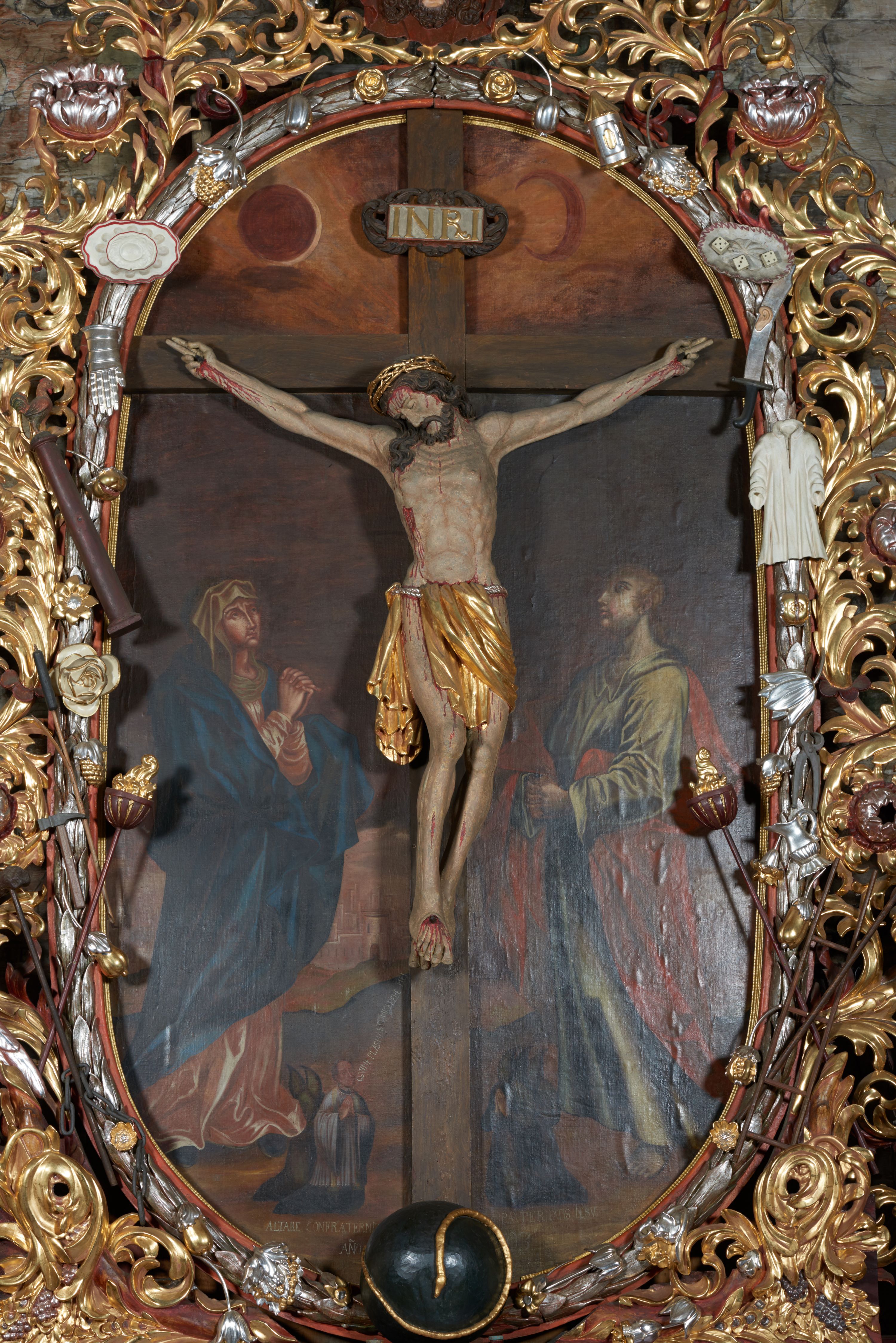 W aktach archiwalnych ołtarz po raz pierwszy został wymieniony w wizytacji z 1728 roku „4-tu quasi ad Orientem Crucifixi Dñi Portatile”. W kolejnej wizytacji (z 1748 roku) wymieniono narzędzia Męki Pańskiej okalające pole główne „insignia Passionis Christi opere sculptoreo eleganter efformata”.