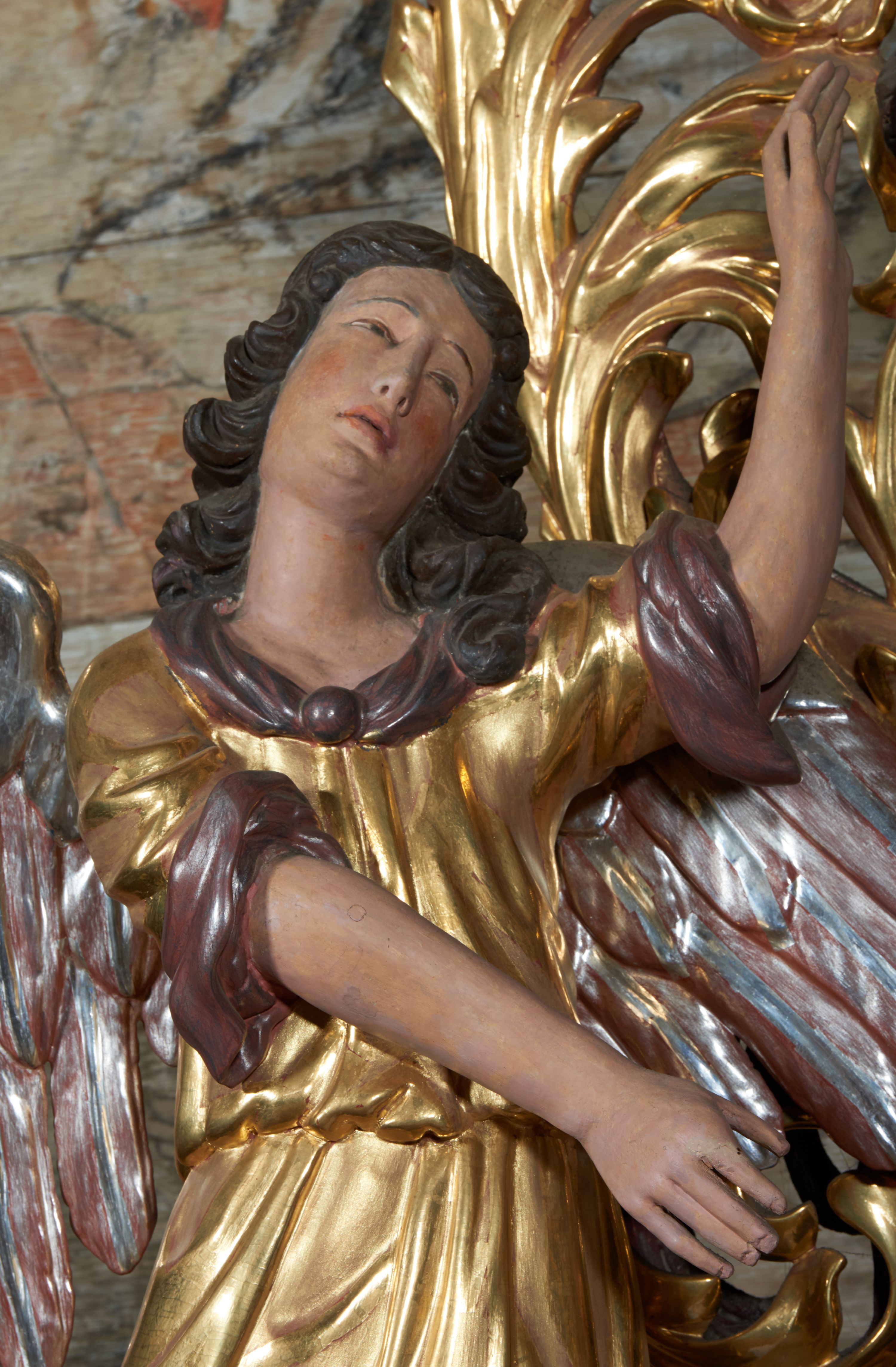 Ołtarz wraz z rzeźbami oraz obramieniami obrazów został odnowiony w 1823 roku staraniem księdza Jana Tymińskiego, który „kazał poodnawiać ołtarzów pięć nadpsutych przez zaciekanie deszczów”. Prace przeprowadził miejscowy organista Wojciech Kozub: „tak co do dorabiania sztuk snycerskich w figurach popsutych przez zaciek deszczów, iż snycerz lepiey nie potrafi, iako też przez danie nowego grontu i farb, niemniey srebra y złota tymże figurom i ramom w ołtarzach”. Kolejną konserwację przeprowadził w 1952 roku Eugeniusz Czuchorski, a ostatnią wykonano w 2004 roku.
