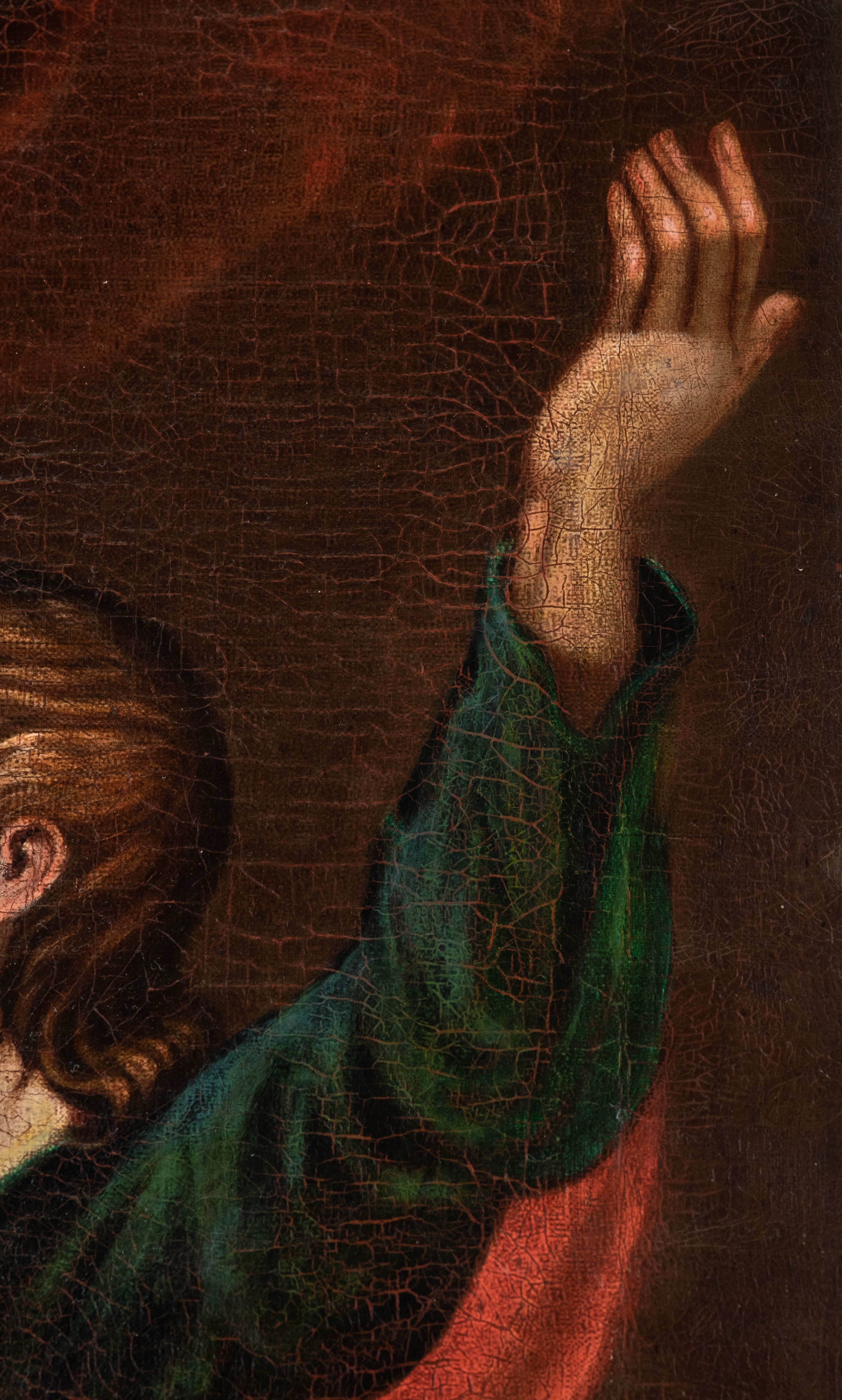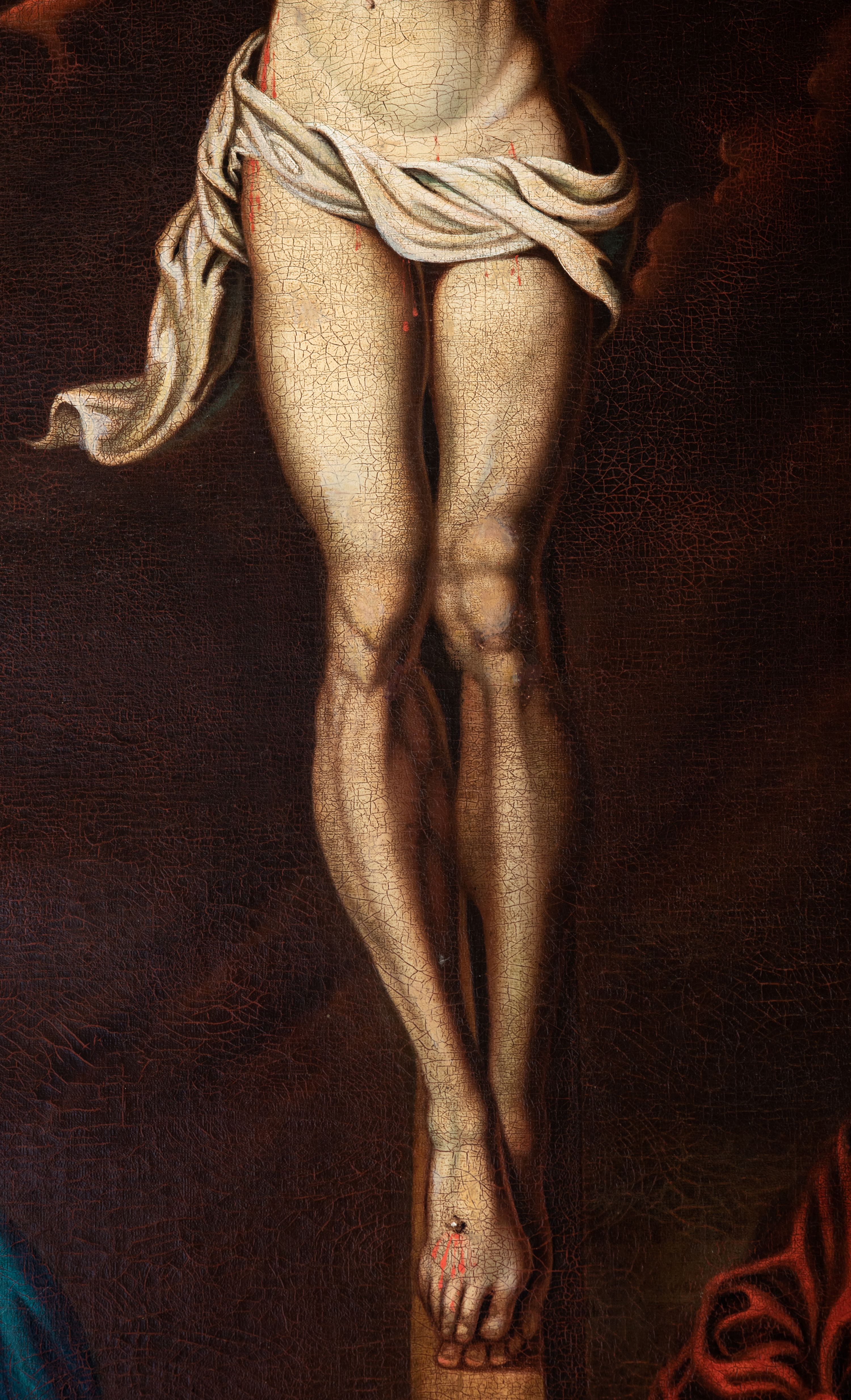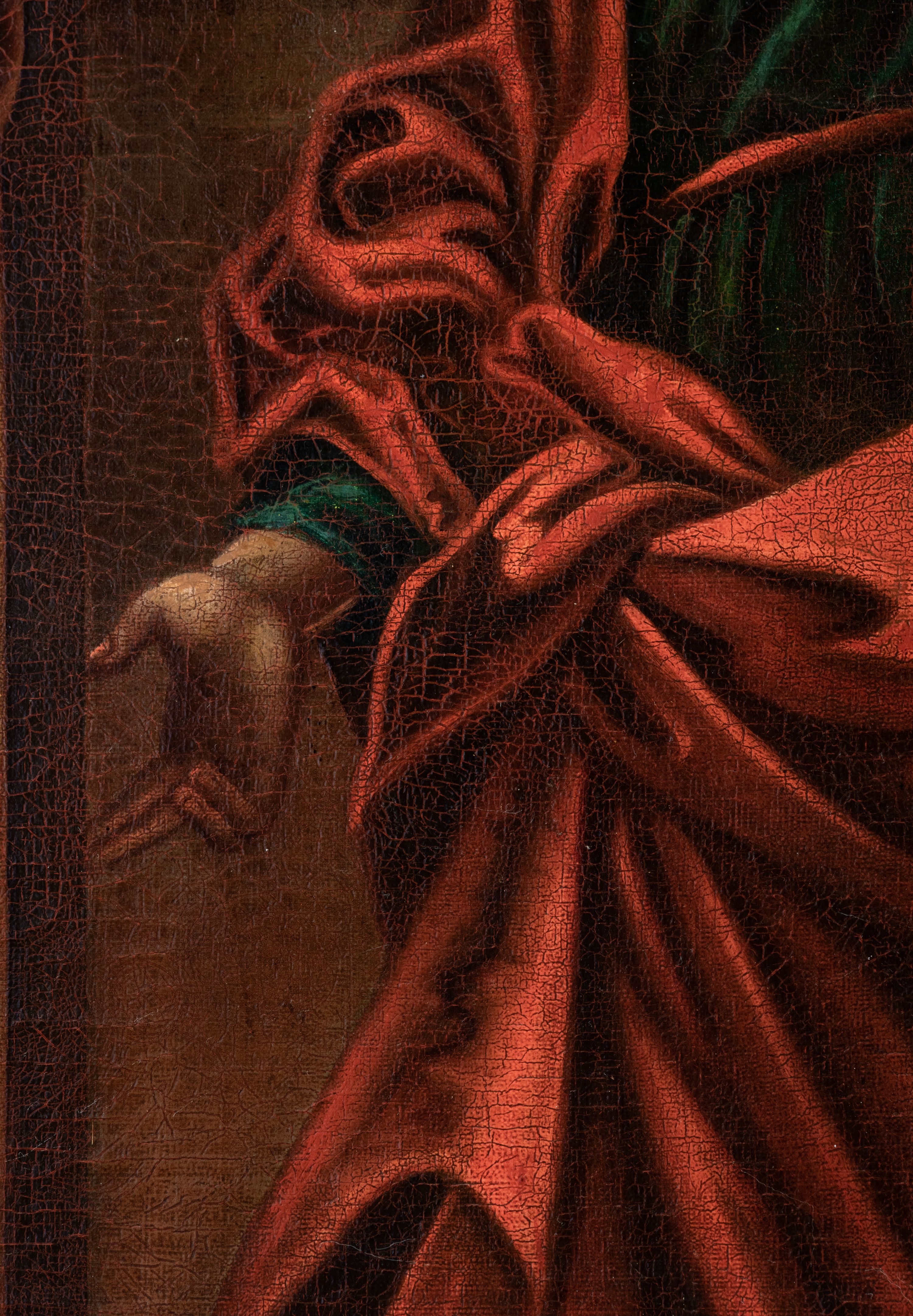 Płótno delikatnie sfalowane, spękania warstwy malarskiej.