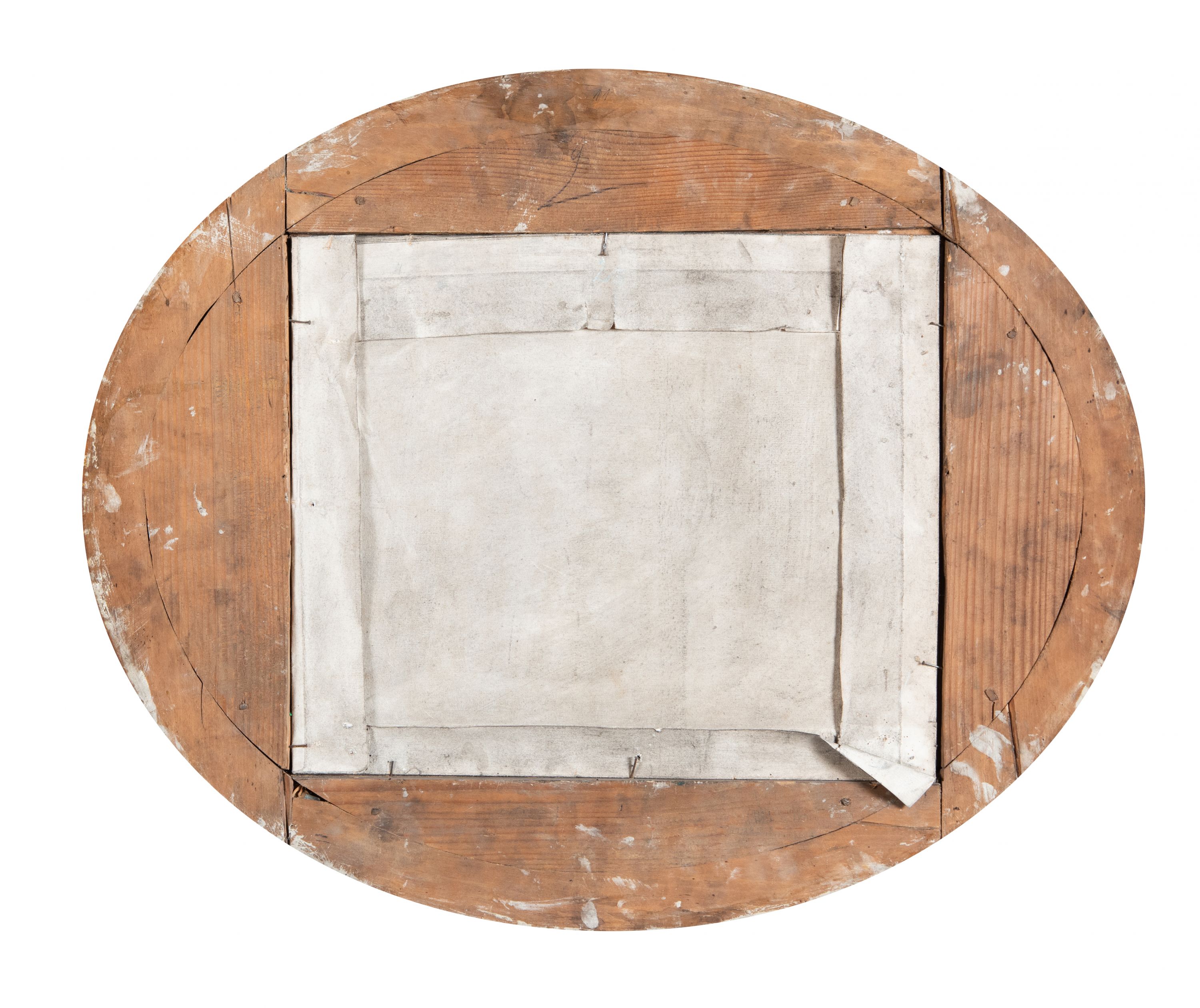 Rama: zabrudzenia powierzchni, przetarcia złoceń i malatury, pęknięta rama.
