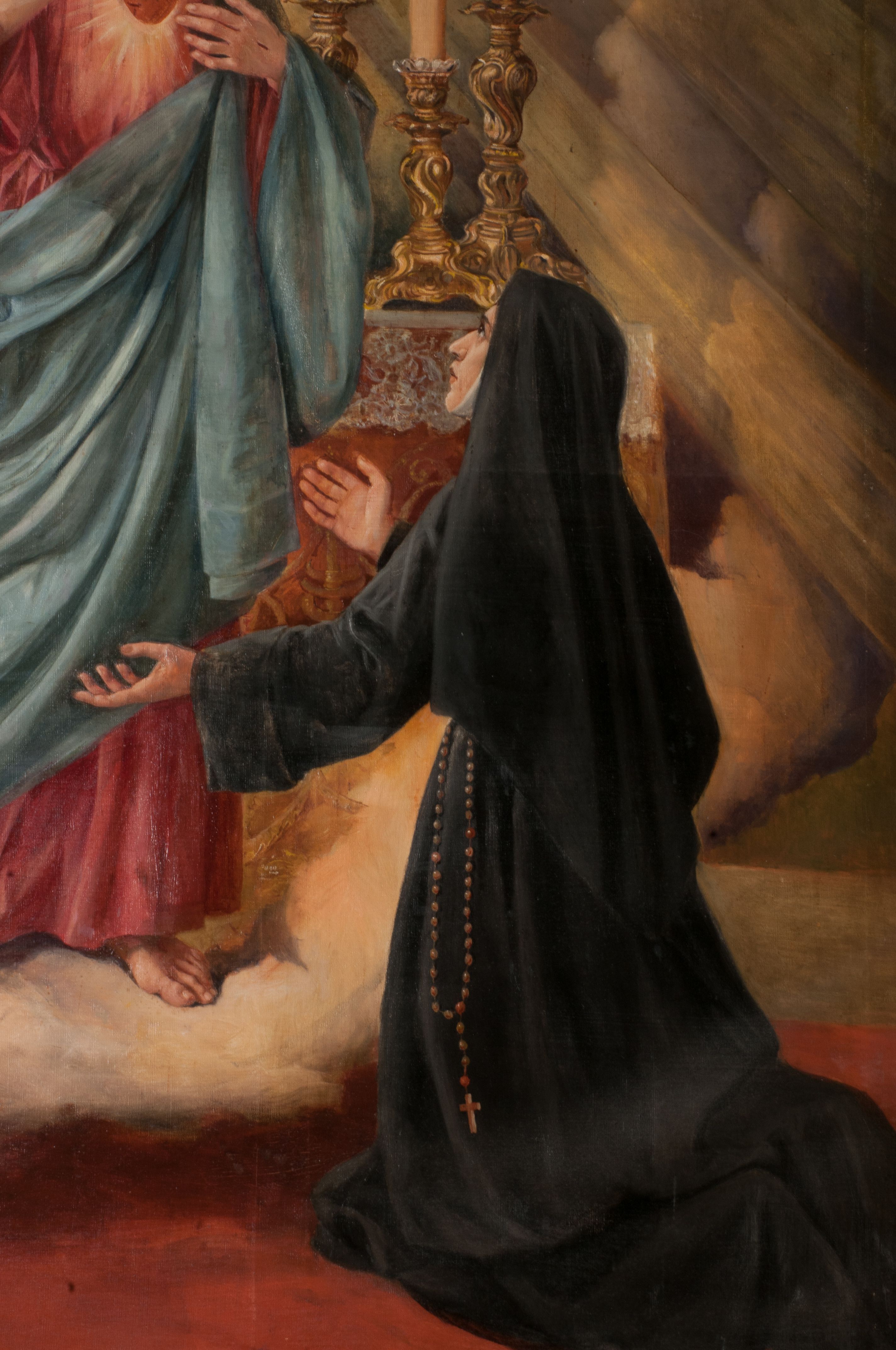 Obraz przedstawiający wizję św. Małgorzaty Marii Alacoque został namalowany przez Antoniego Zembaczyńskiego w 1910 roku.