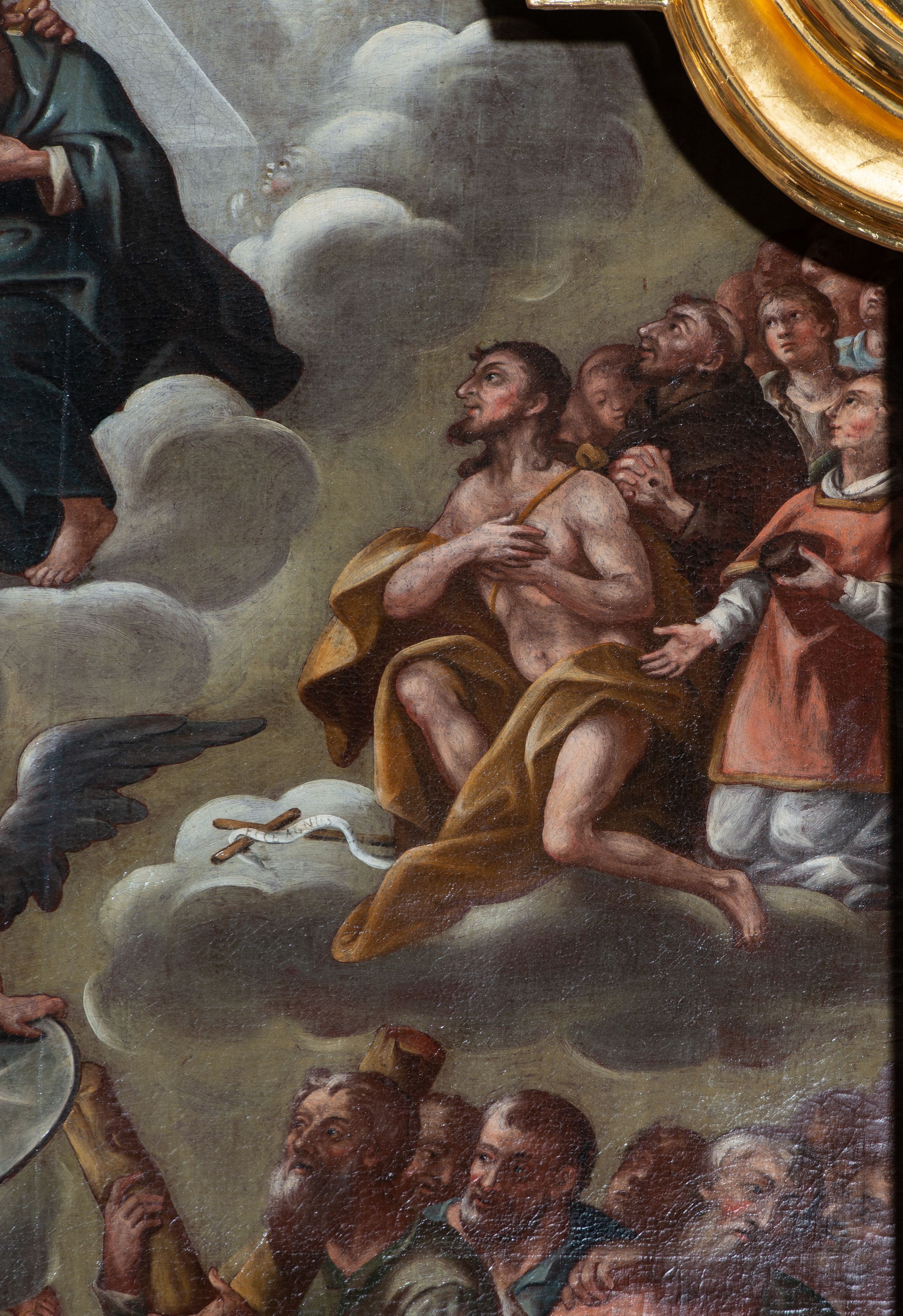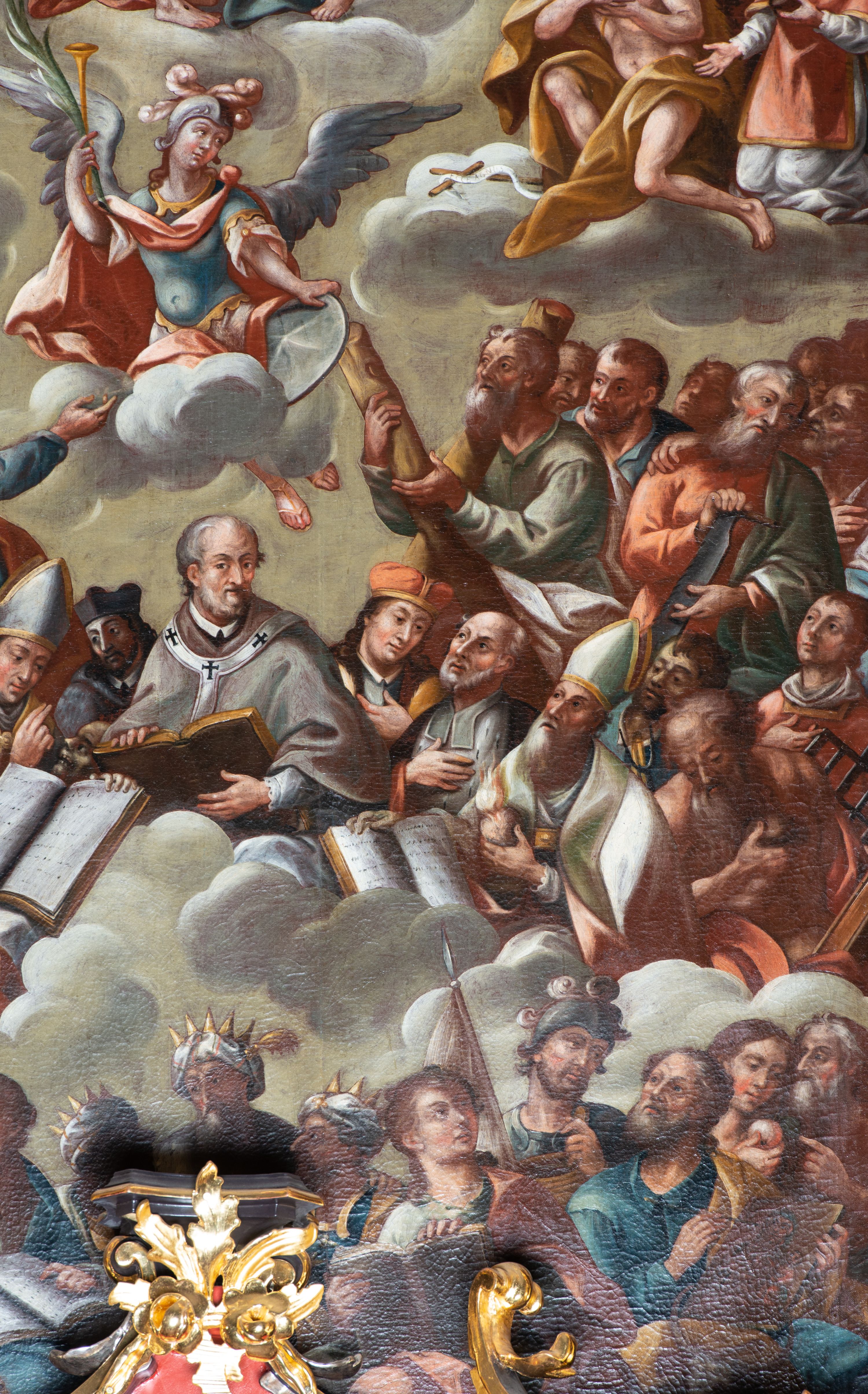 Obraz namalowany przez nieznanego małopolskiego artystę pozwala oglądać świętych i zbawionych w niebie oczami polskich uczestników uroczystości Wszystkich Świętych z początku XVIII wieku. Podobnie skomplikowane ikonograficznie dzieło powtórzył ponad pięćdziesiąt lat później krakowski malarz Łukasz Orłowski na obrazie z 1763 roku w kościele Wszystkich Świętych w Krakowie.