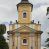 Ryzalit wieńczy trójkątny przyczółek z herbem Nowina w tympanonie. Nad belkowaniem, na całej szerokości fasady, znajduje się prosta attyka z odpowiadającymi dolnej strefie elewacji podziałami lizenowymi, wspierającymi wyłamujący się ponad nimi gzyms ozdobiony wazonami. Powyżej wznosi się górne piętro wieży, czworościenne o ściętych narożnikach, nakryte kopulastym hełmem z nasadnikiem.
