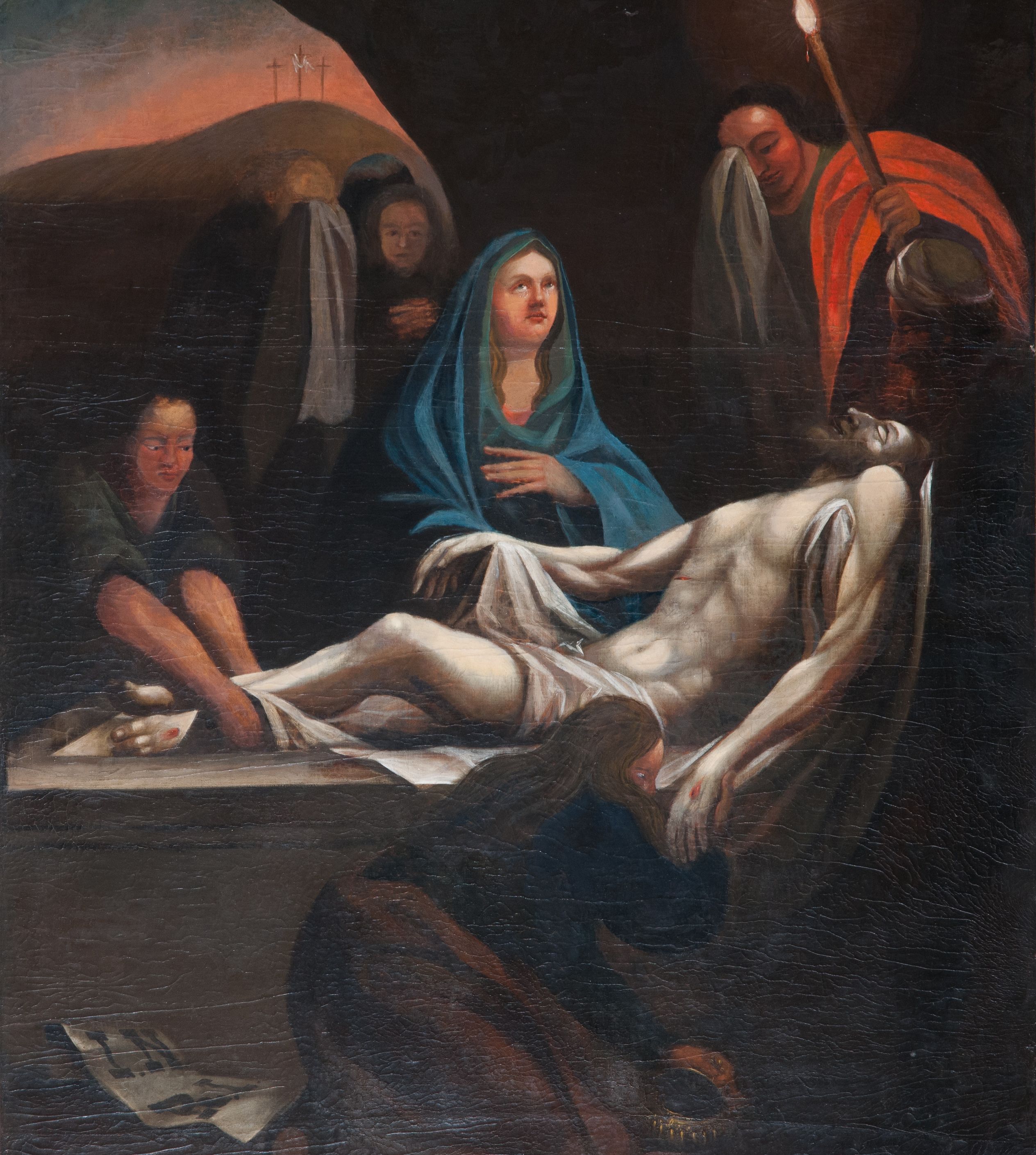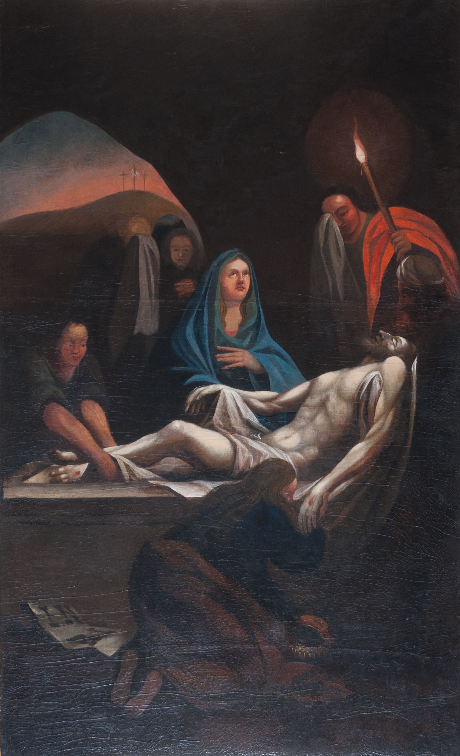 Obraz, który charakteryzuje silny światłocień, został namalowany w XVIII wieku. Ukazuje moment składania martwego ciała Jezusa do kamiennego sarkofagu. Wokół grobu przedstawiono Marię, Marię Magdalenę oraz św. Jana Ewangelistę.