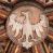Rzeźbiony zwornik z przedstawieniem Orła Piastowskiego.