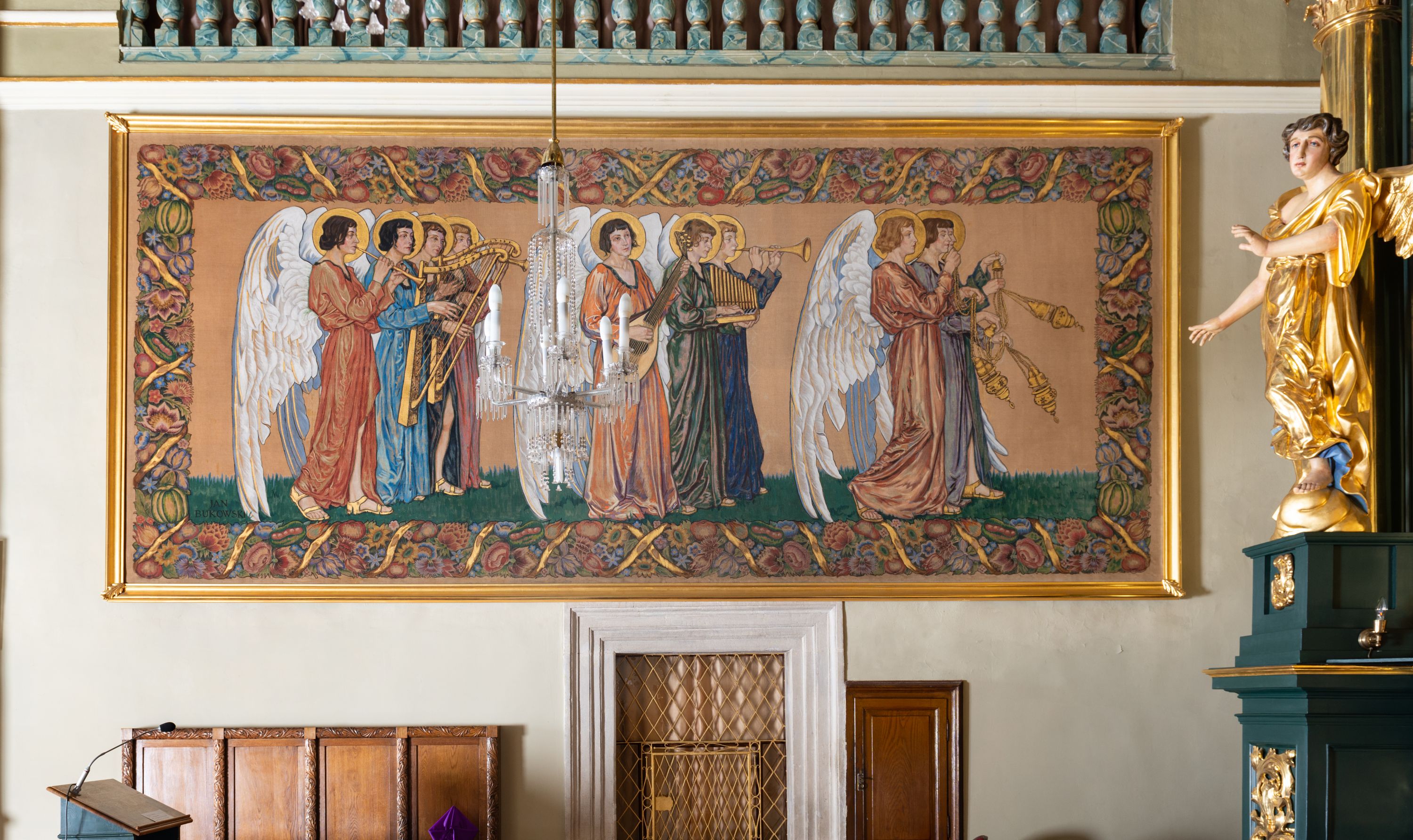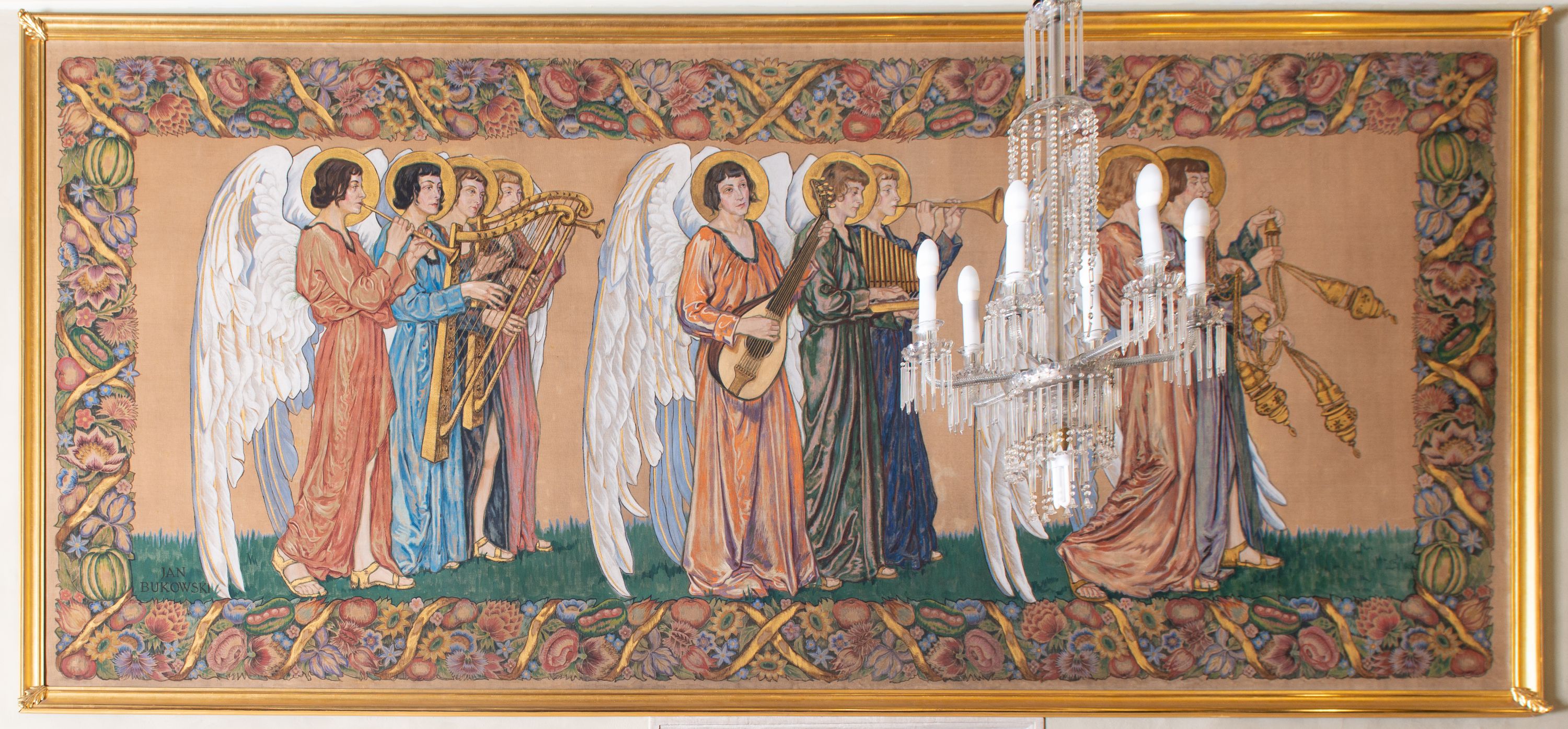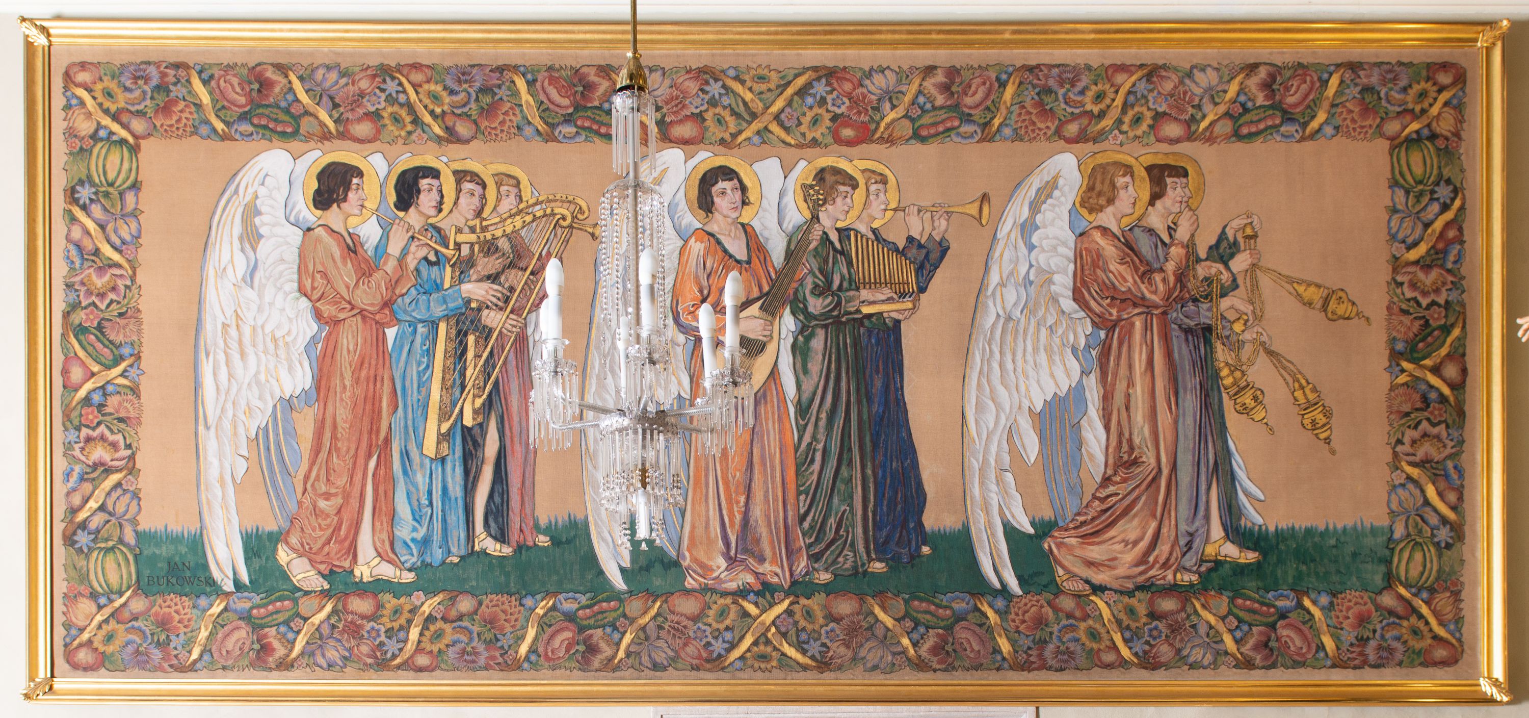 Two large paintings in the chancel were created in connection with the new polychrome of the temple made by Jan Bukowski in 1913. They show a group of musician angels.