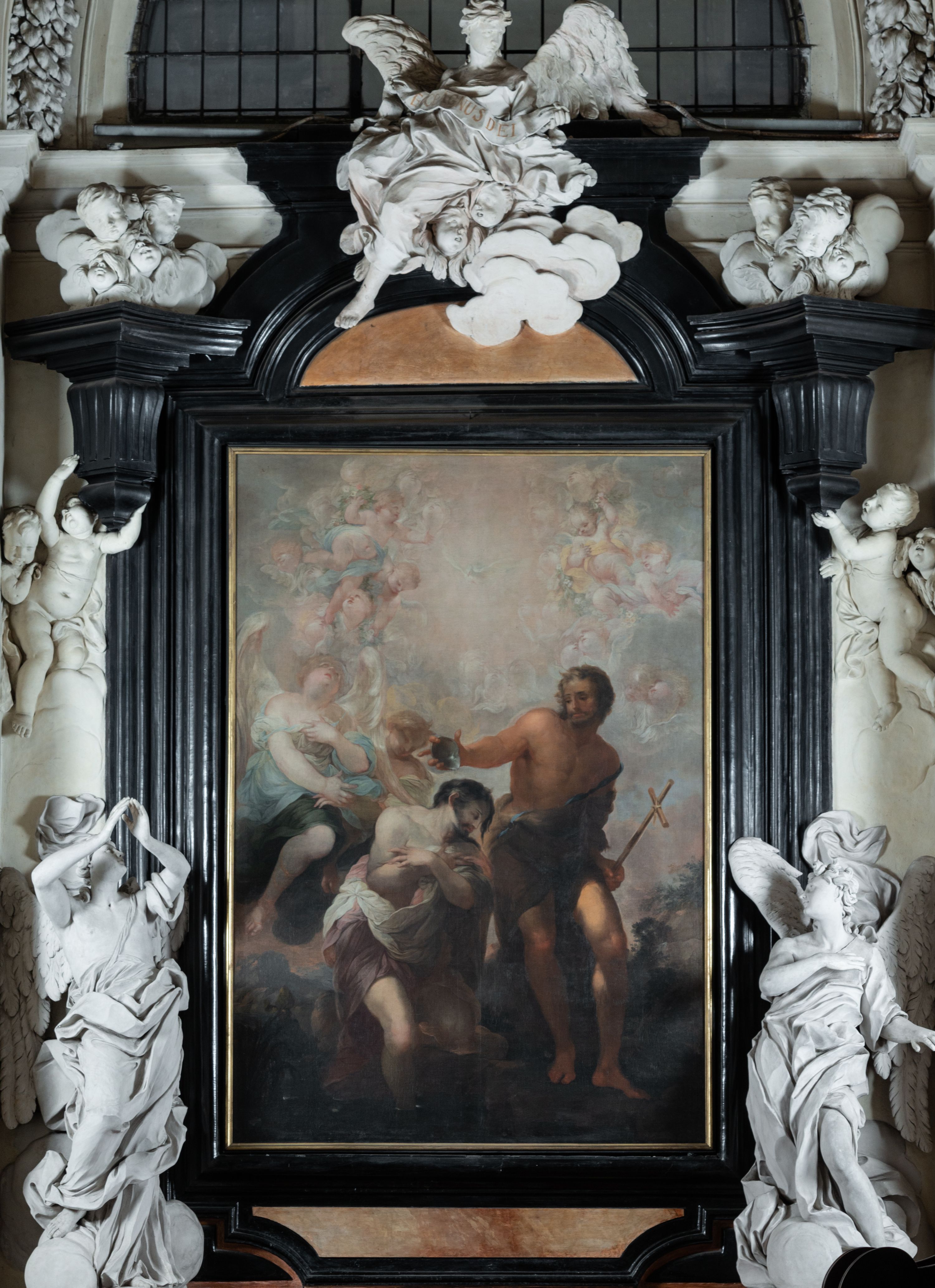 The altar in St. John the Baptis's chapel was built in 1695-1703. Its author was Baltazar Fontana and his workshop. An innovative type of reredos in Poland – with a pair of angels flanking a painting, was taken from the Roman art. The altars in the Church of Santa Maria del Popolo became the source of inspiration. The statue of an angel with raised hands, located on the left side, finds similarities in the statue of Daniel and the Lion, by Giovanni Lorenzo Bernini, located in the same Roman church, in the Chigi Chapel.
