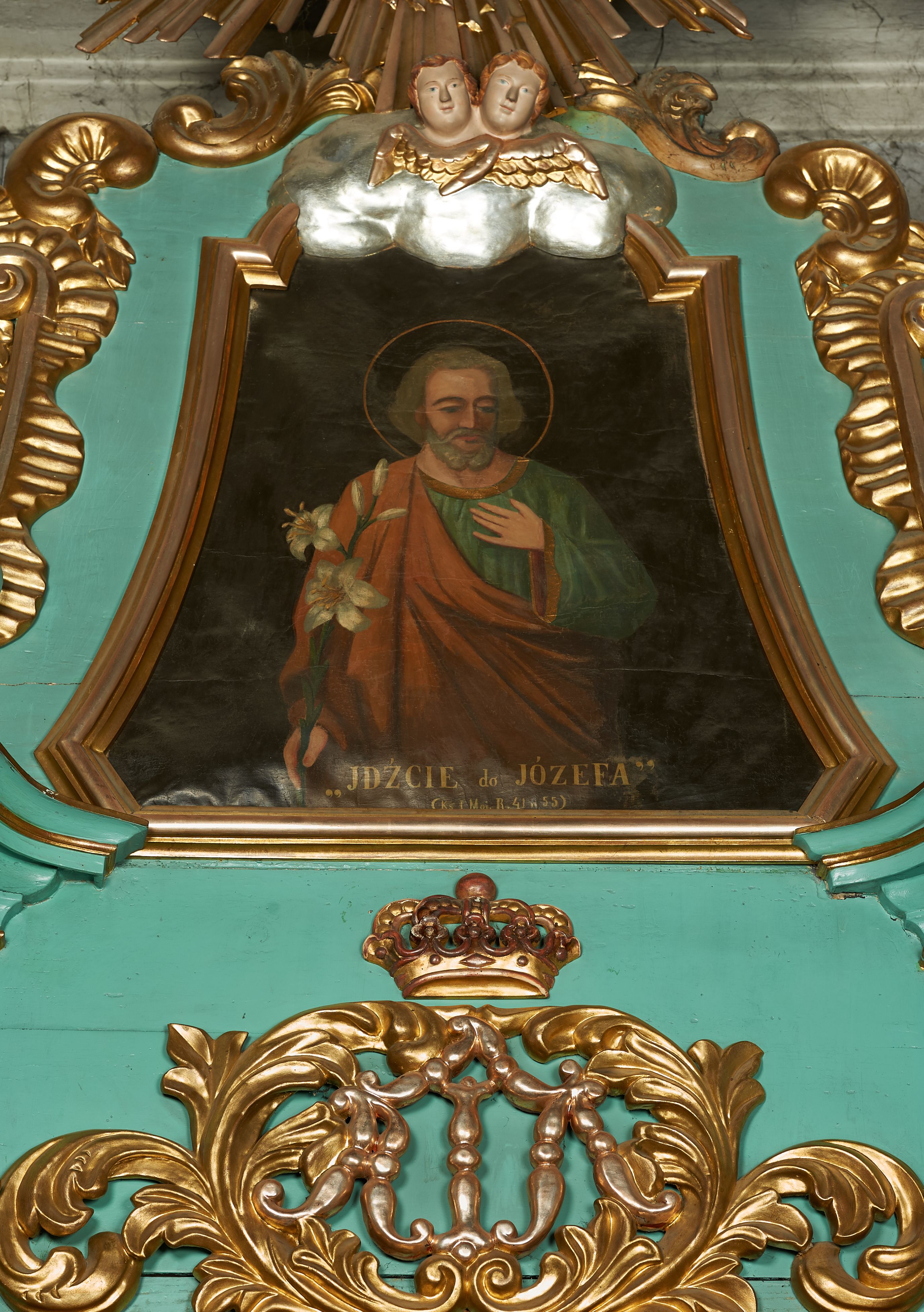 The altar for the chapel with statues of St. Joachim and St. Anne was probably made by Ignacy and Antoni Kornecki in the fourth quarter of the 18th century. In the altar finial there was originally a painting of St. Sebastian, changed into a painting of St. Joseph at the beginning of the 20th century. A reredos is in the aedicula type, i.e. a single-storey structure with an altar finial, placed on a pair of supports. This type of structures was most popular in the 18th century, intended for more modest, in terms of architecture, side altars.