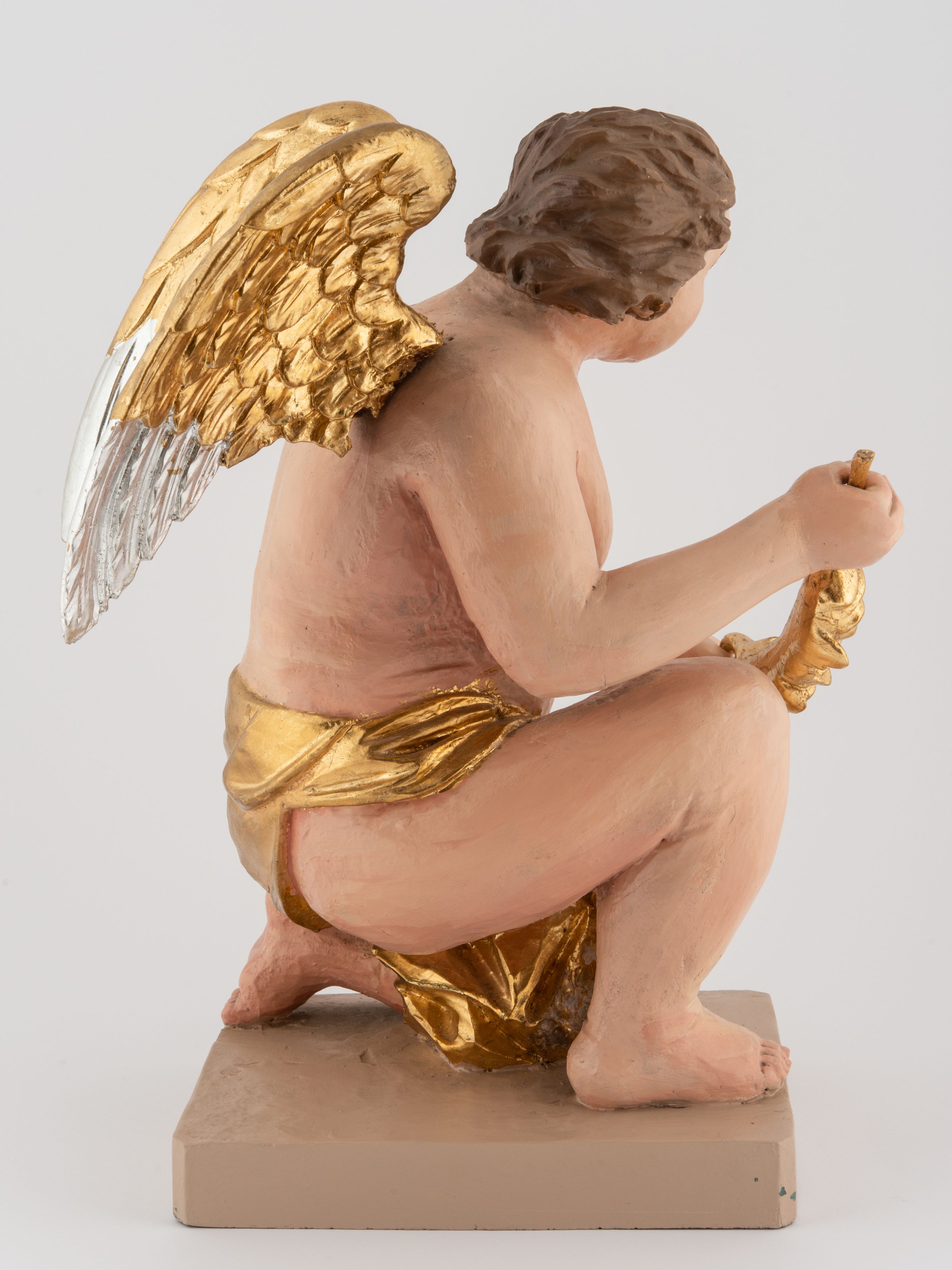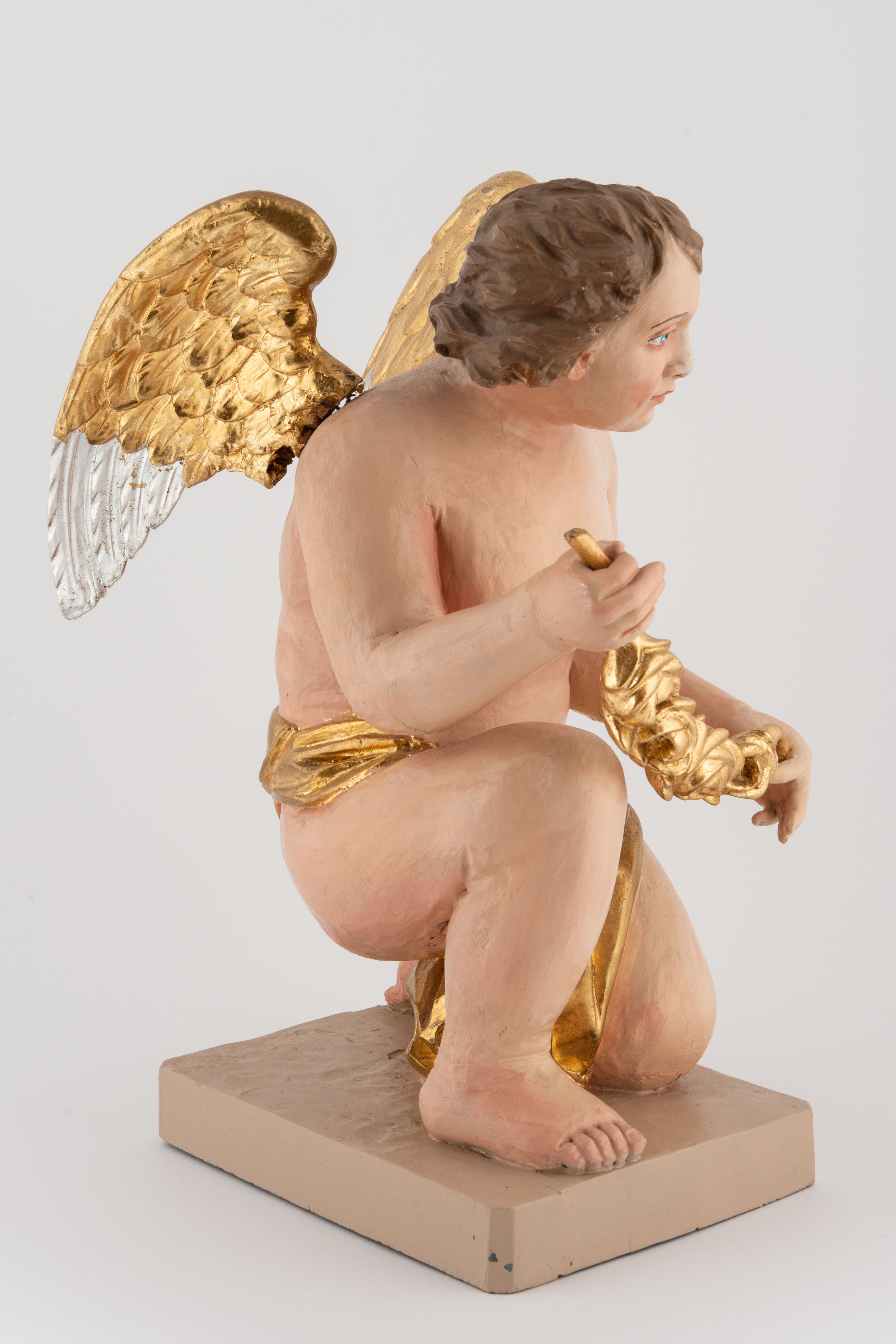 Figures of angels, free-standing, placed on the high altar were made in 19th century along with a set of other figures surrounding the tabernacle. It depicts an angel adoring and praising God, holding wreathens of roses in his hands. Unfortunately, the sculpture's attribution is unknown.