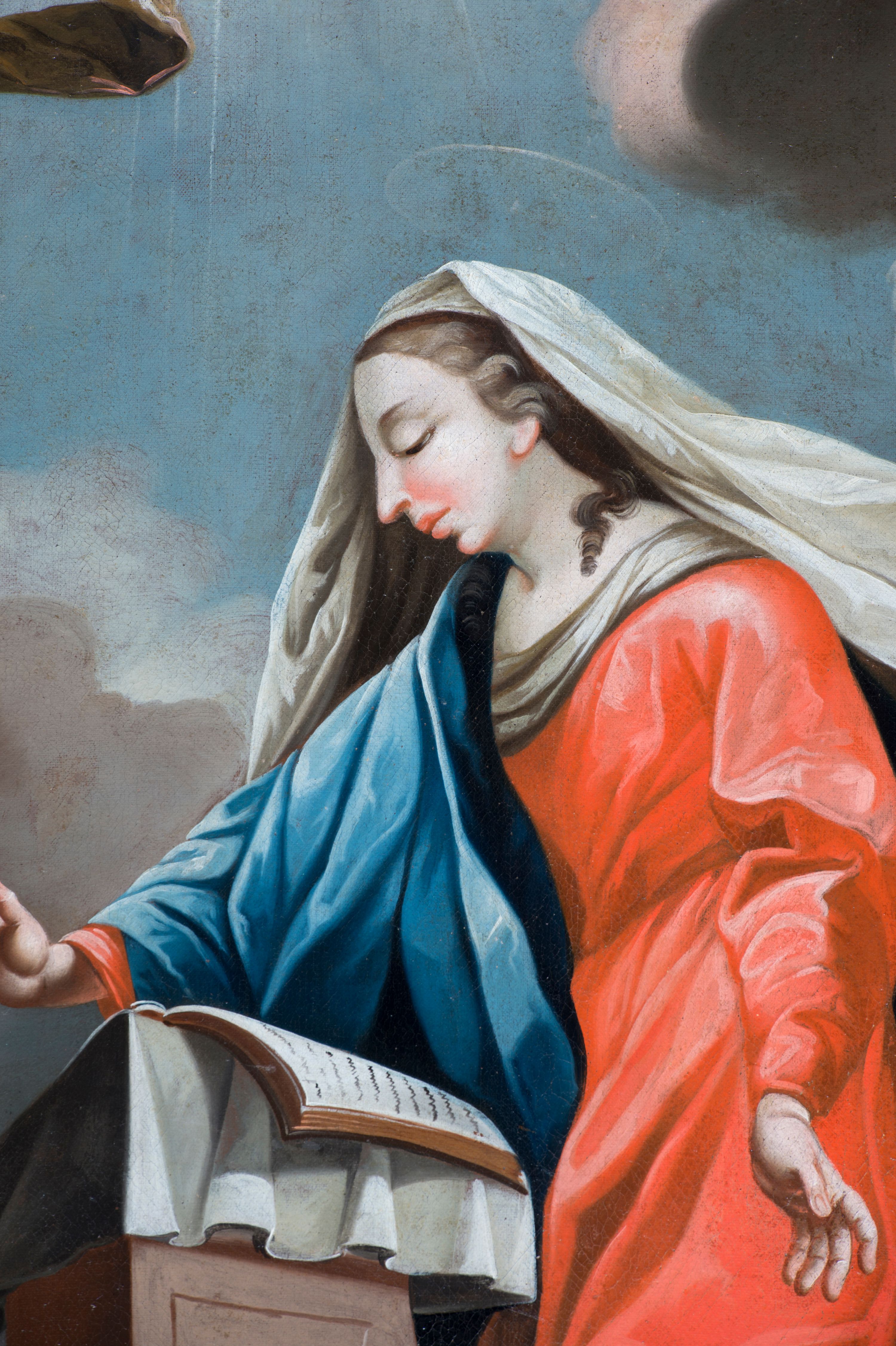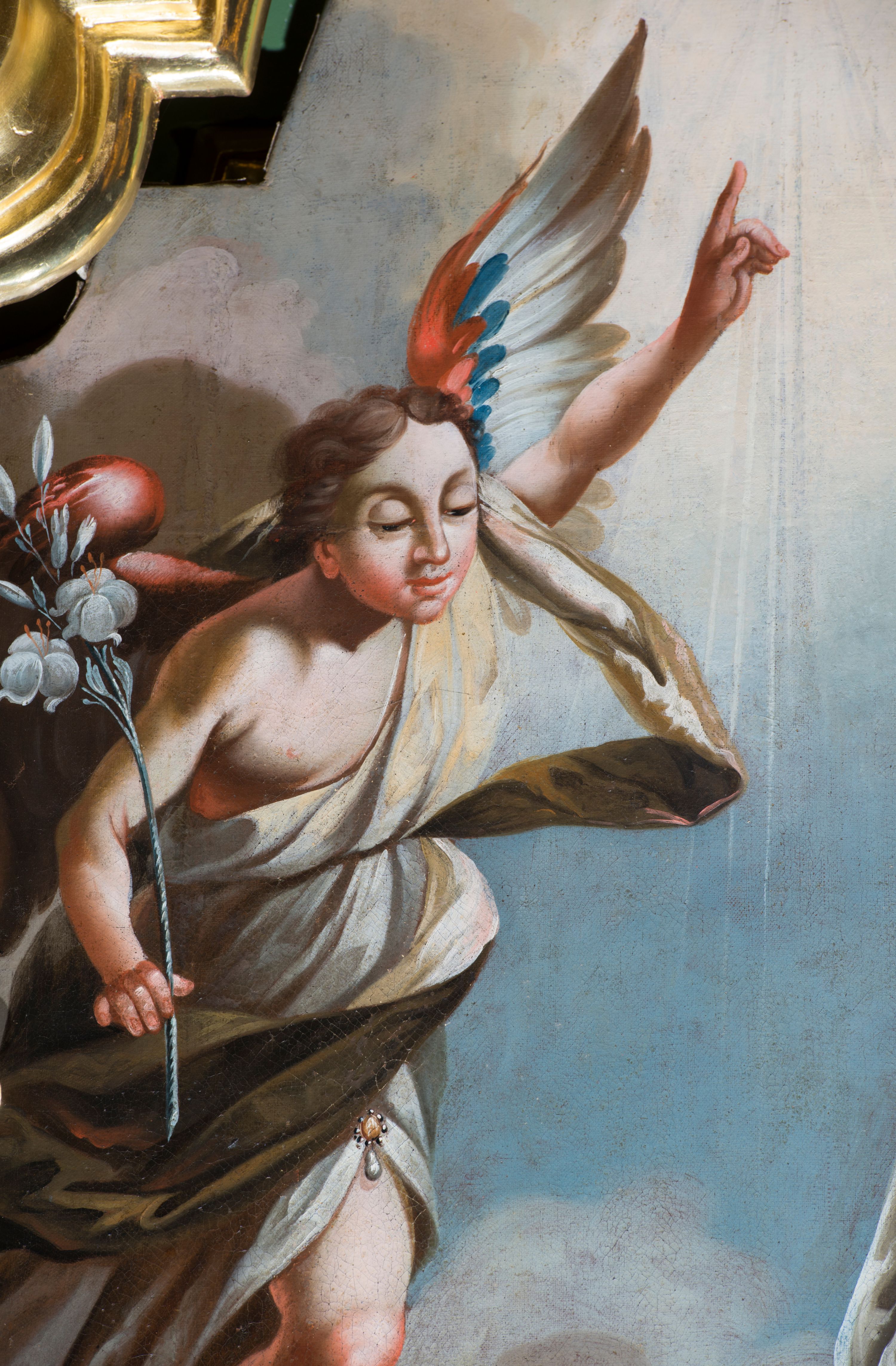 The painting depicting the scene of the Annunciation was painted between 1770 and 1774 by Imrich Jagušič who was active in Spišská Sobota. The scene was composed in a manner typical of Western art.