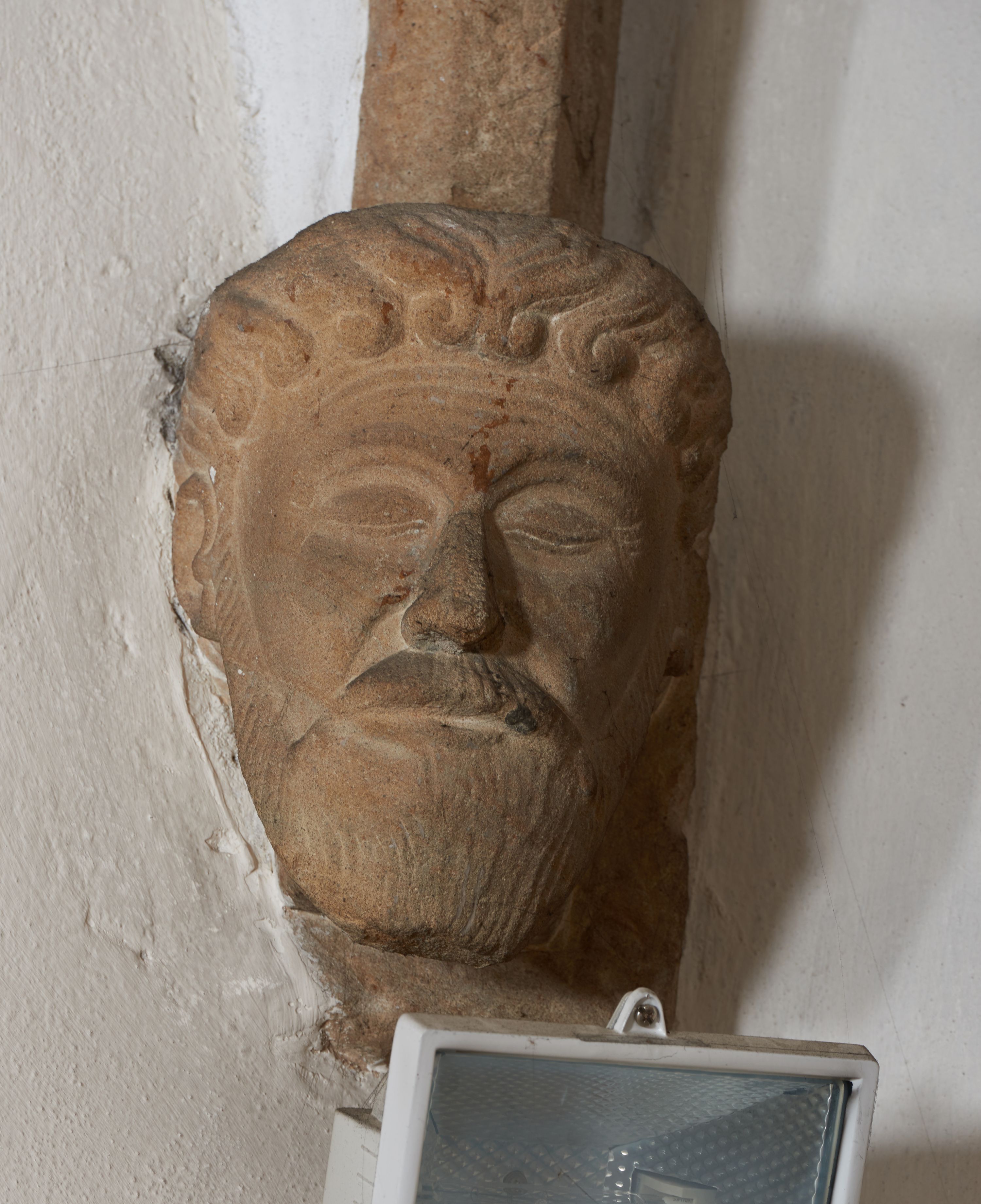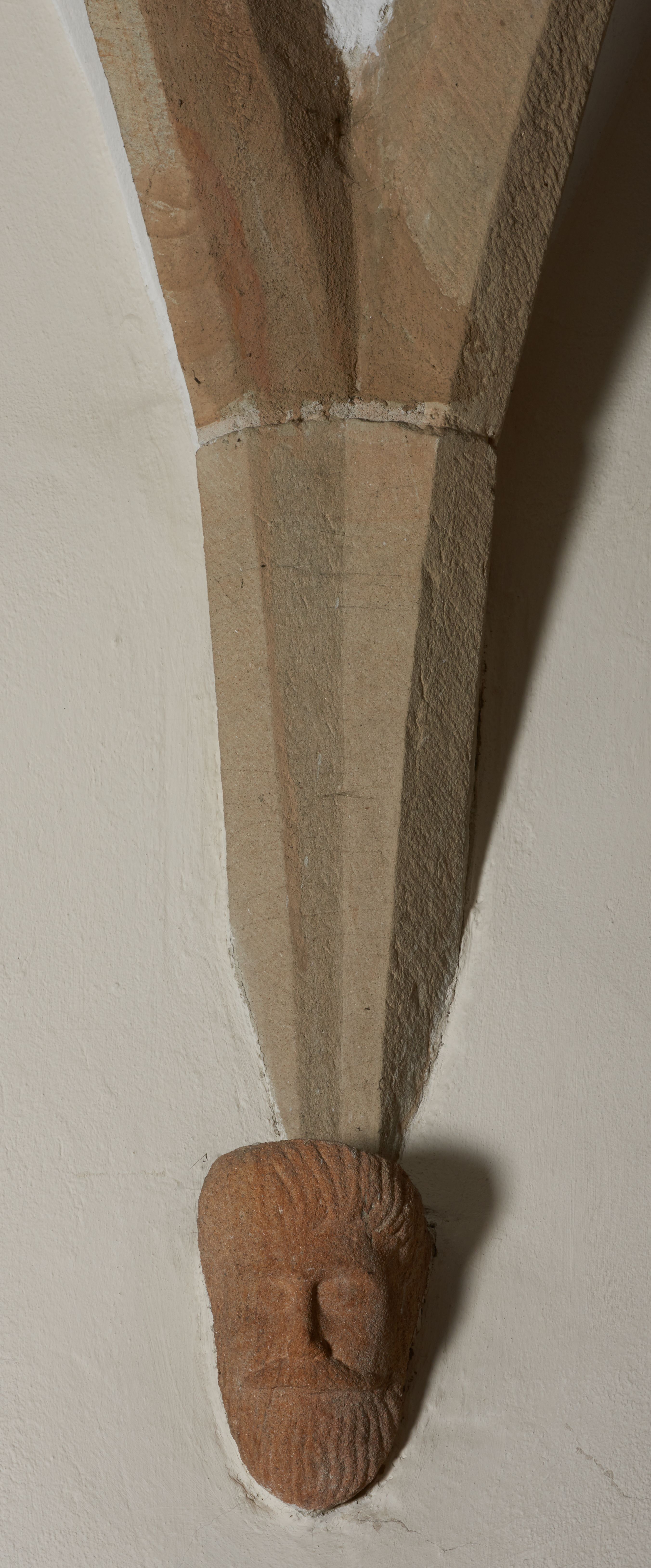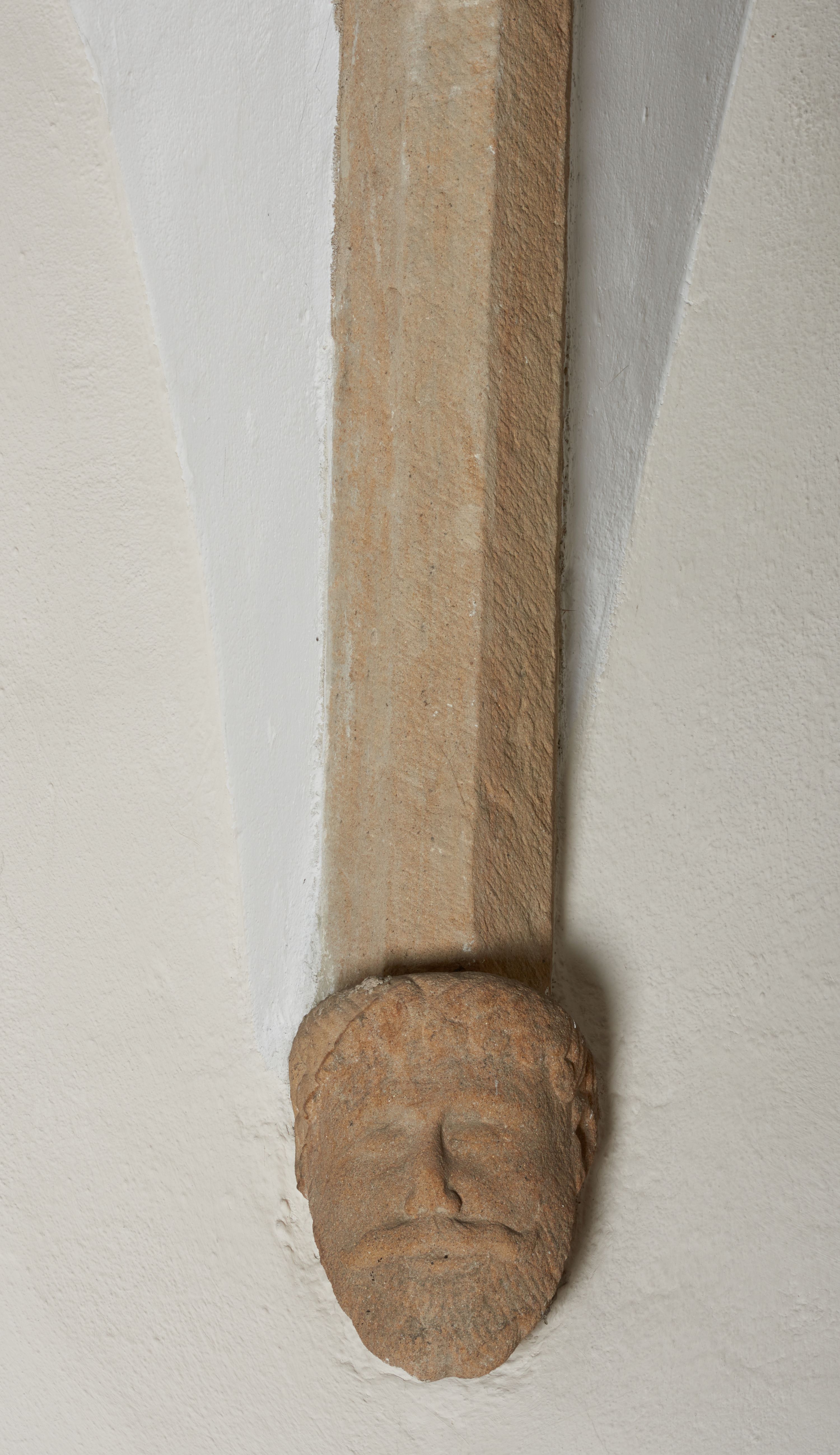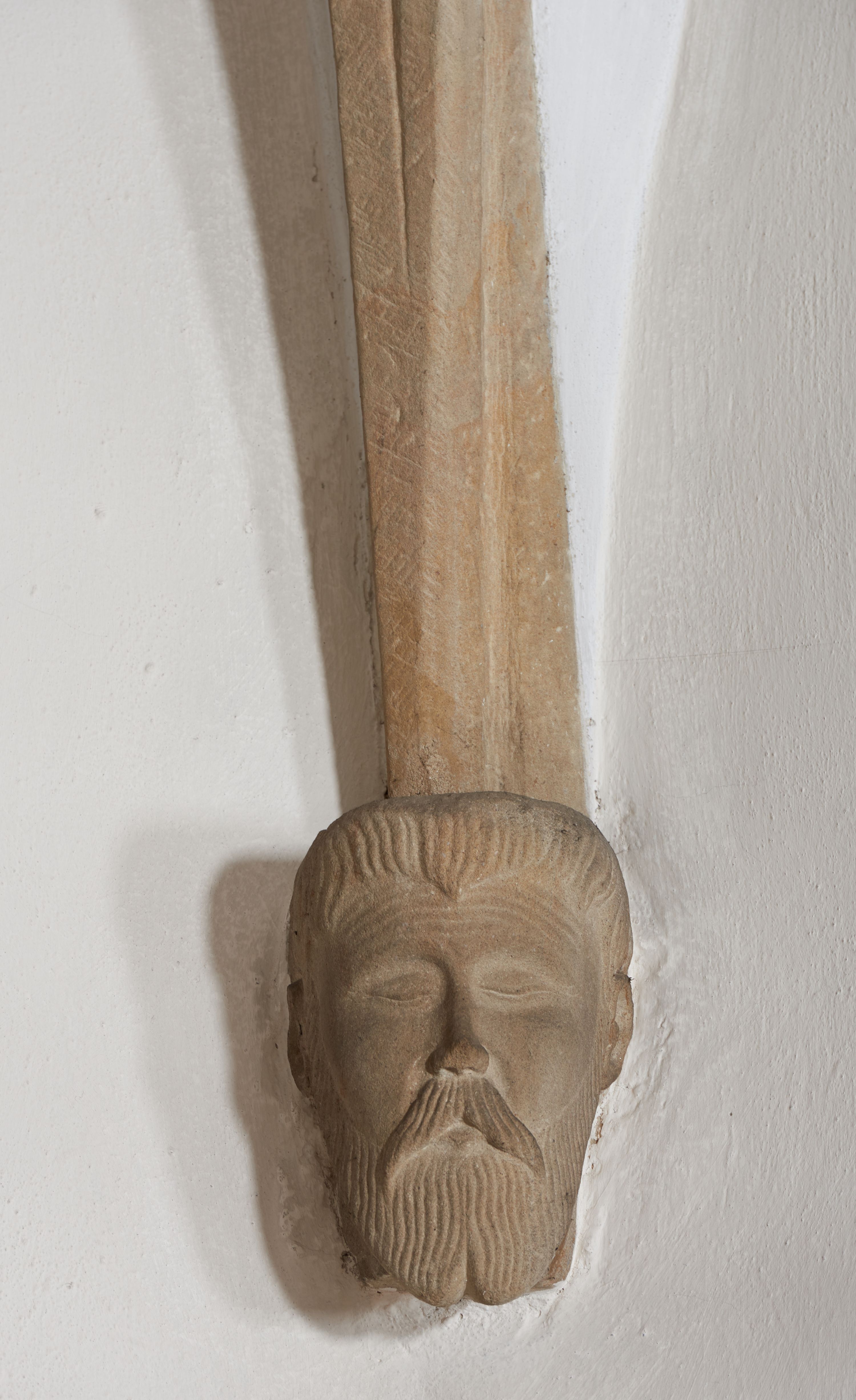 The date of creation of the discussed architectural elements of the church in Łazany corresponds roughly to the time when construction of the current temple was finished, i.e. they were created at the end of the 16th century. The building and its architectural detail in terms of style are a combination of late gothic, renaissance and mannerist features. The ceiling keystones in question with the Drużyna coat of arms and the initials „S(ebastian) L(ubomirski)” referring to the funder of the church - Sebastian Lubomirski, and the consoles decorated with the motif of human heads, take on late gothic forms. The console in the canopy of the chancel arcade with the Drużyna coat of arms and the initials „S(ebastian) L(ubomirski)” takes on a modern form (cartouche decorated with a scrollwork motif). According to Bogusław Krasnowolski, two sculpture workshop operated at the church in Łazany. The first was in medieval style, the second drew on new patterns, inspired by the activities of Jan Michałowicz from Urzędów or Santi Gucci.