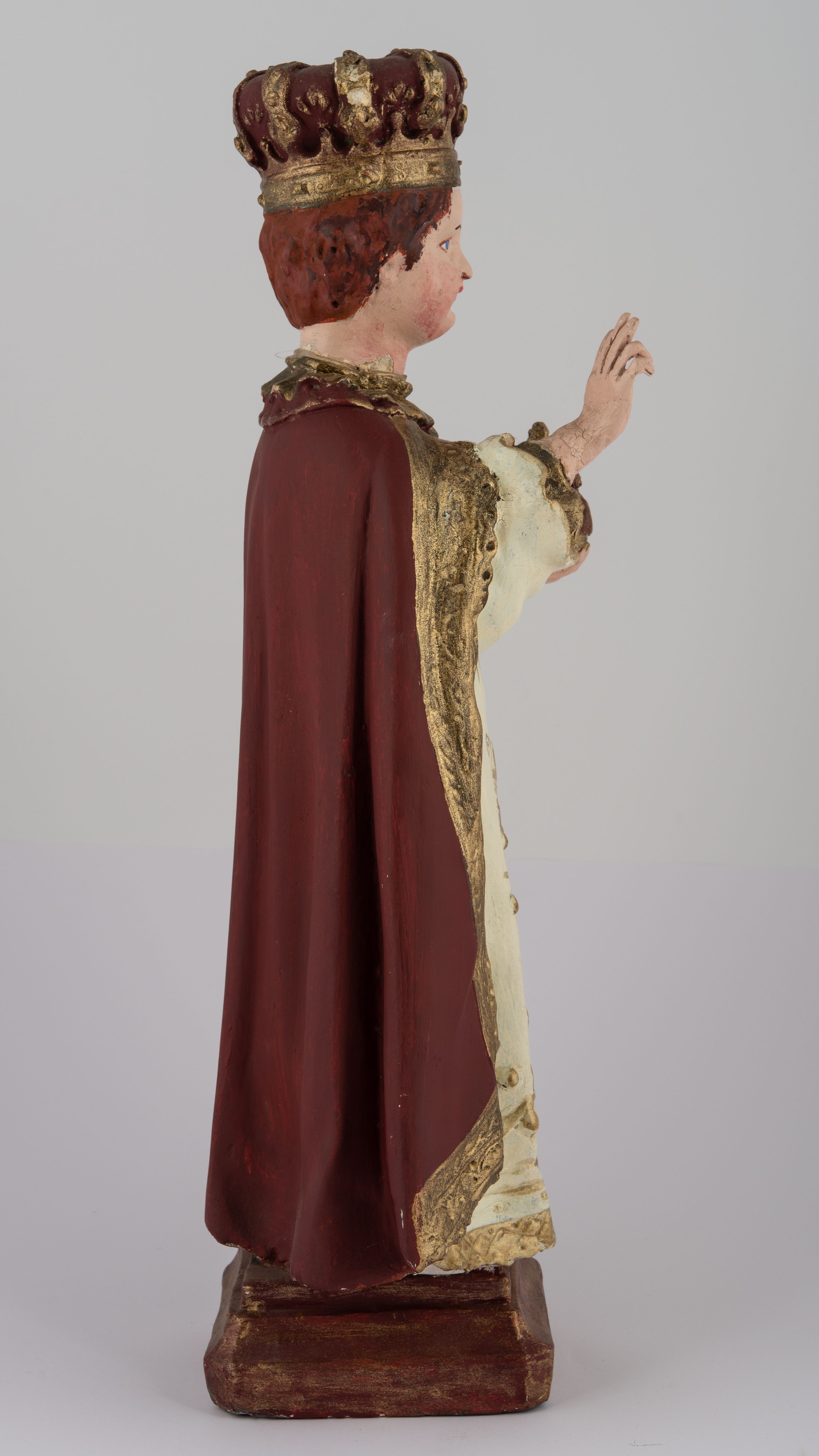 The statuette of Baby Jesus was probably made in the 20th century and is close to a 16th-century image stored in the Church of Our Lady Victorious in Prague. The statue in Lachowice is a plaster cast with clothing marked on which further garments are to be worn.