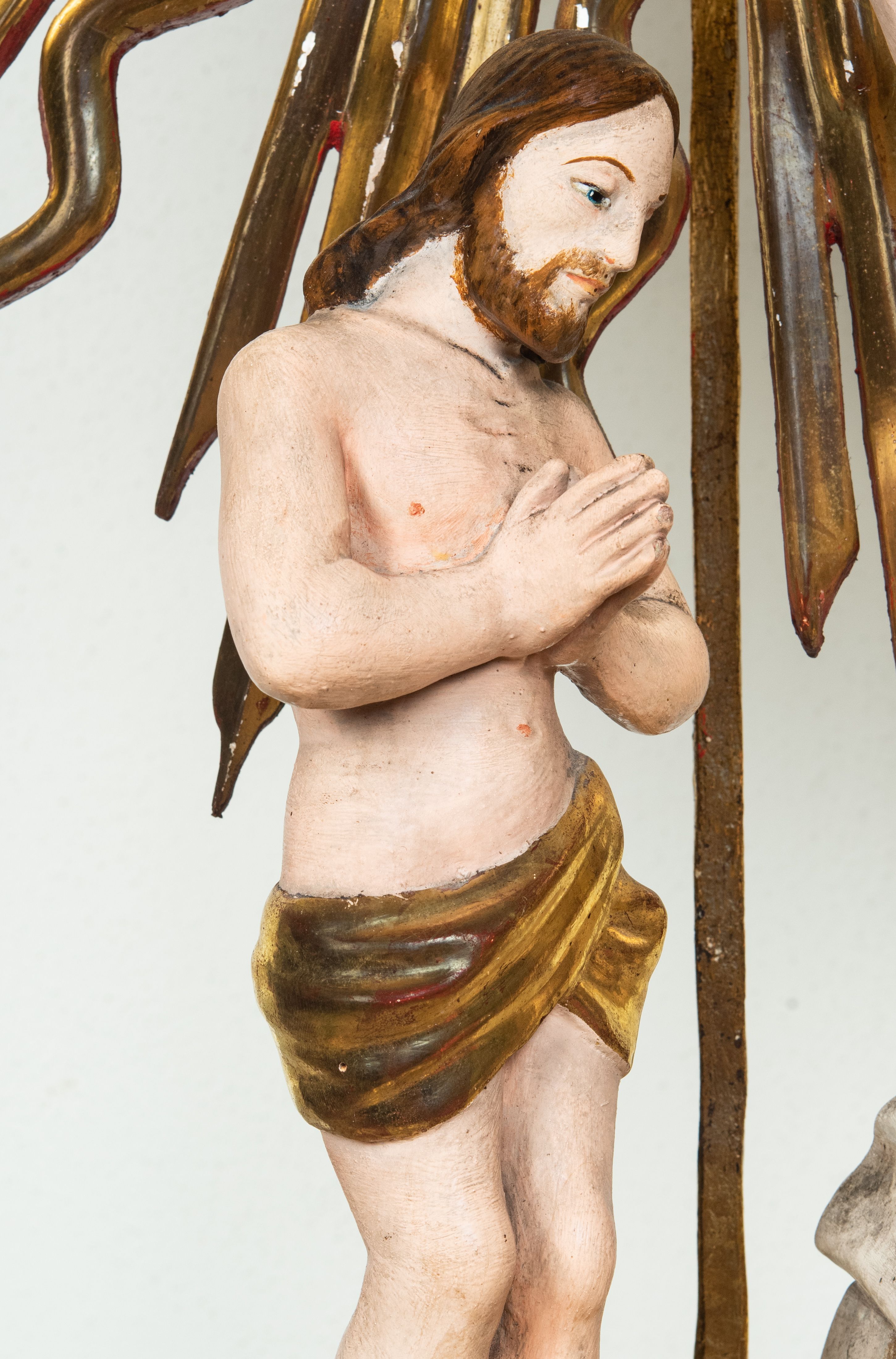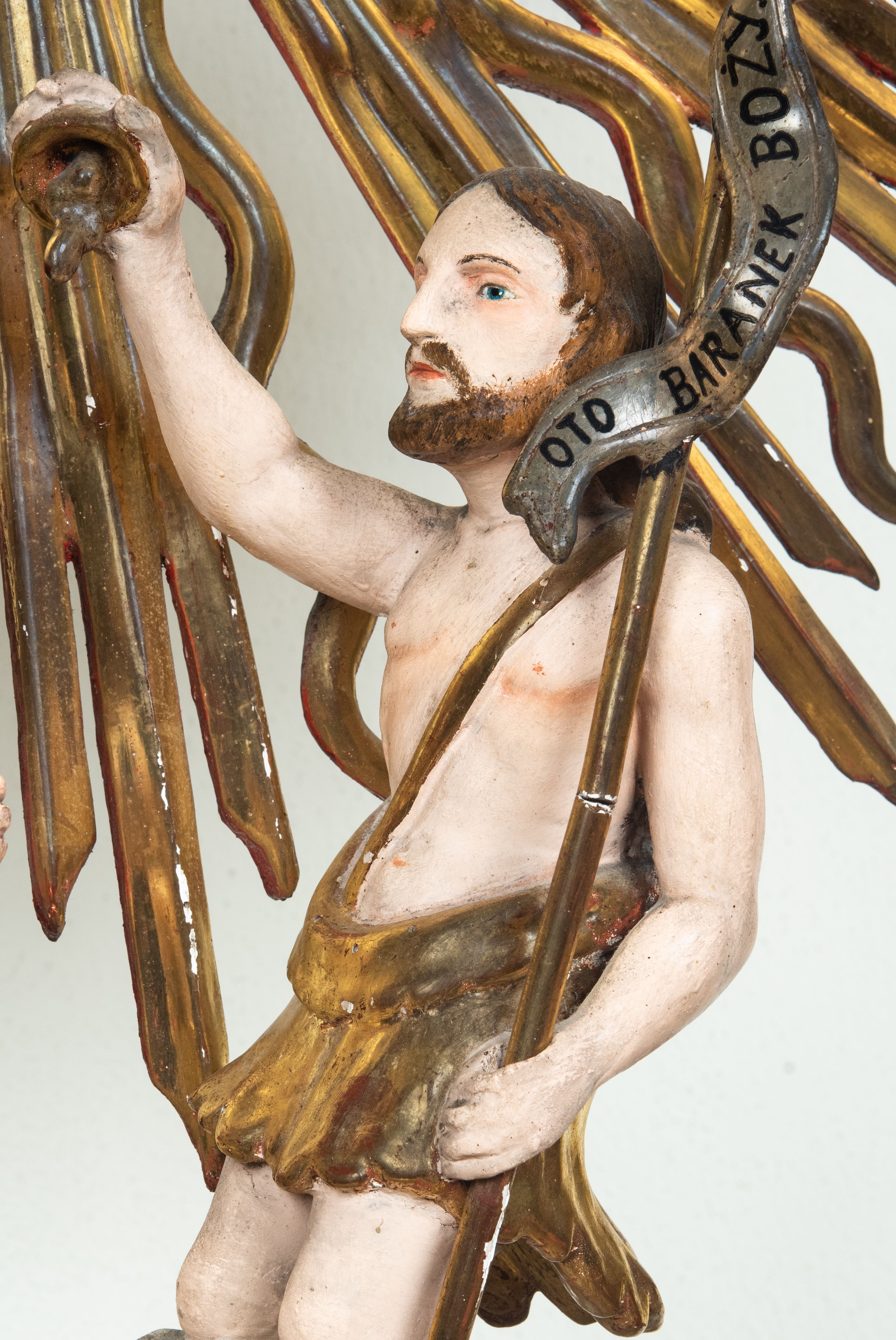 Baptismal font cover was made in the second half of the 17th century and it was transferred from the old John the Baptist church in Zembrzyce. It depicts a scene of the Baptism of Christ. The base of the cover is decorated with a motif known as "chasing" - characteristic in particular of the 16th and 17th century art, but repeated also in the 18th century. Unfortunately, archival sources do not reveal the author of the work.