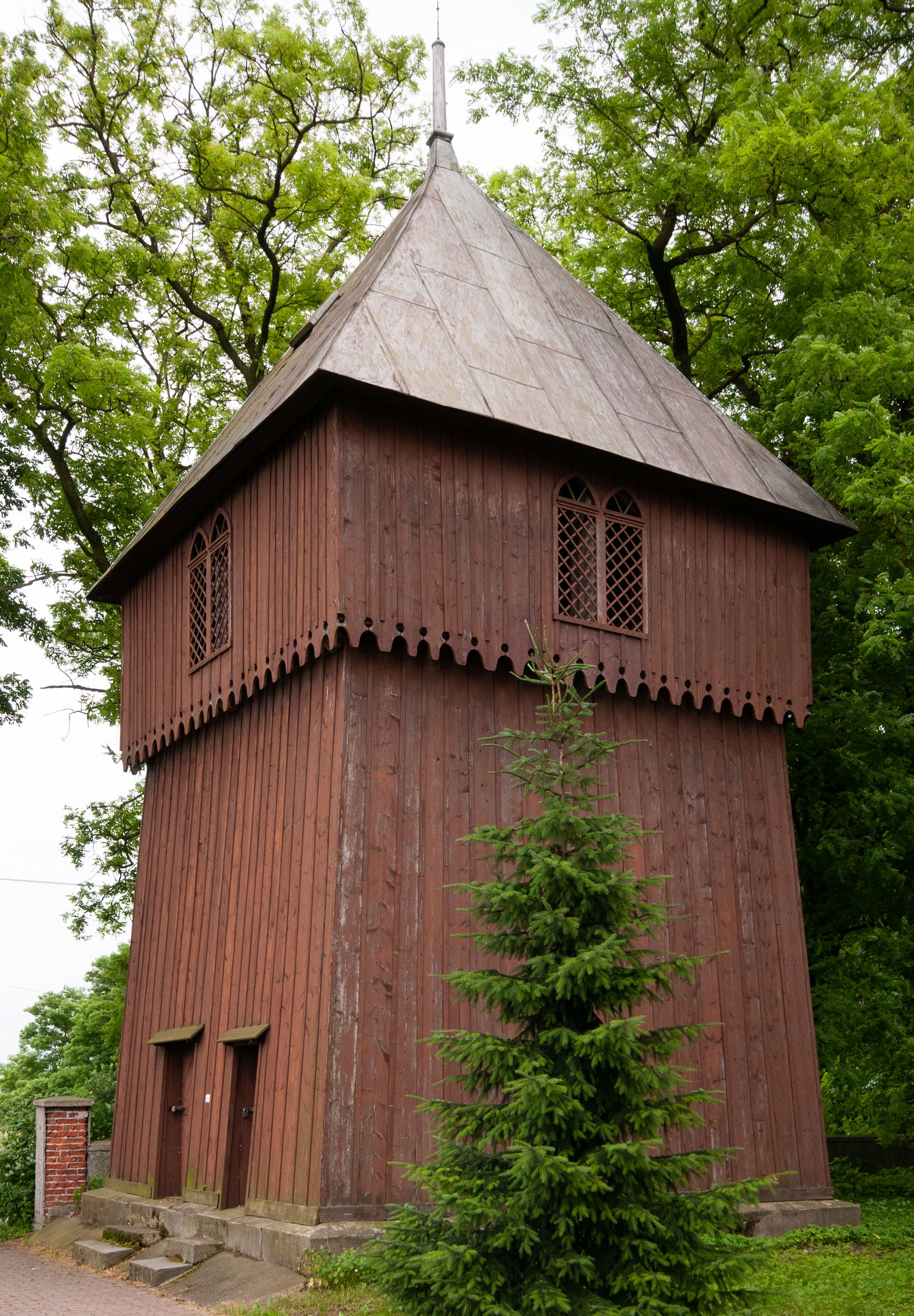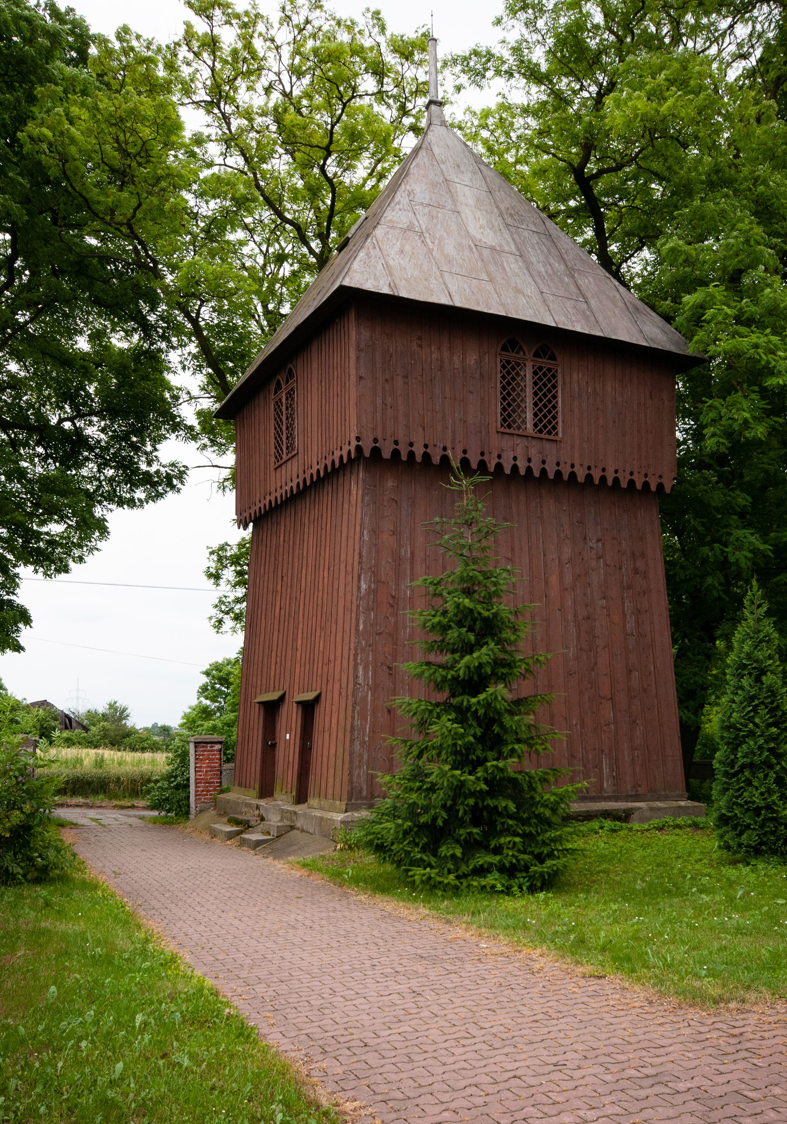 The 17th-century baroque bell tower was replaced in 1872 with the present one, which was built as a post and beam construction, on a square plan and on a stone base. Its primary task is to house bells, however, the ground floor also serves as a warehouse.