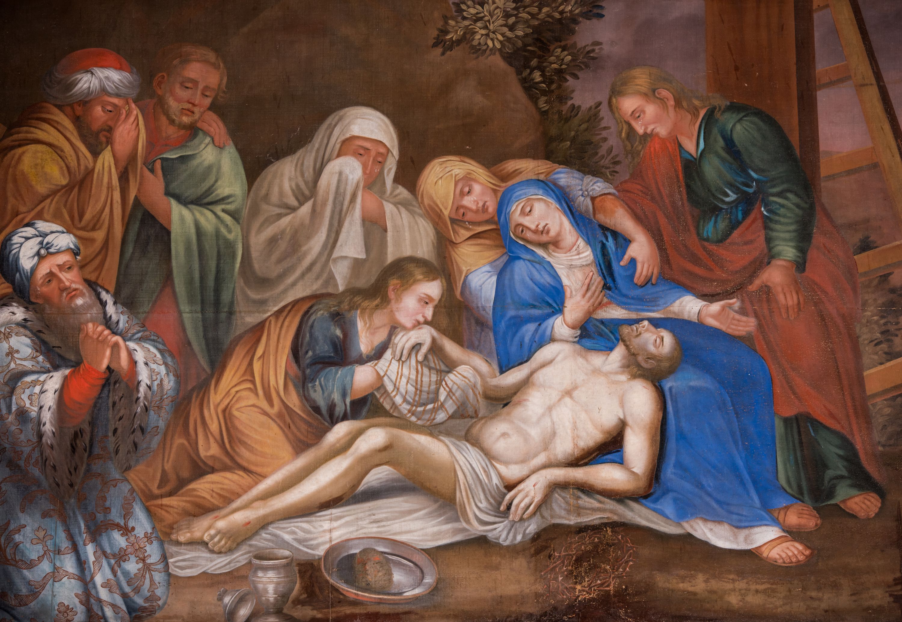 The painting depicting a scene of "Descent from the Cross", placed in the the Reformed Church in Kęty, was created in 1842 by an anonymous artist. The canvas presents the iconographic motif which developed in the Middle Ages and became very popular in the modern era.