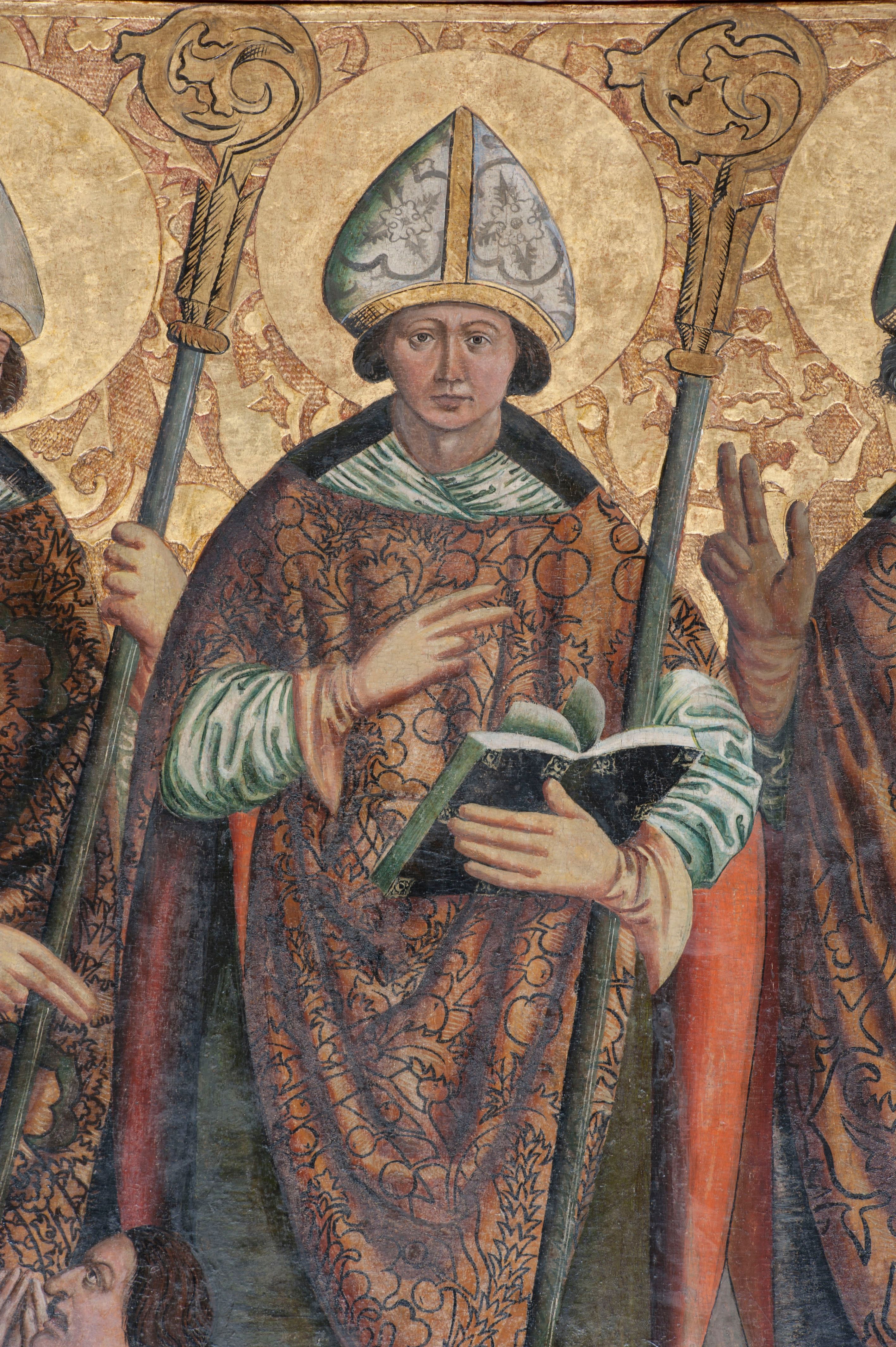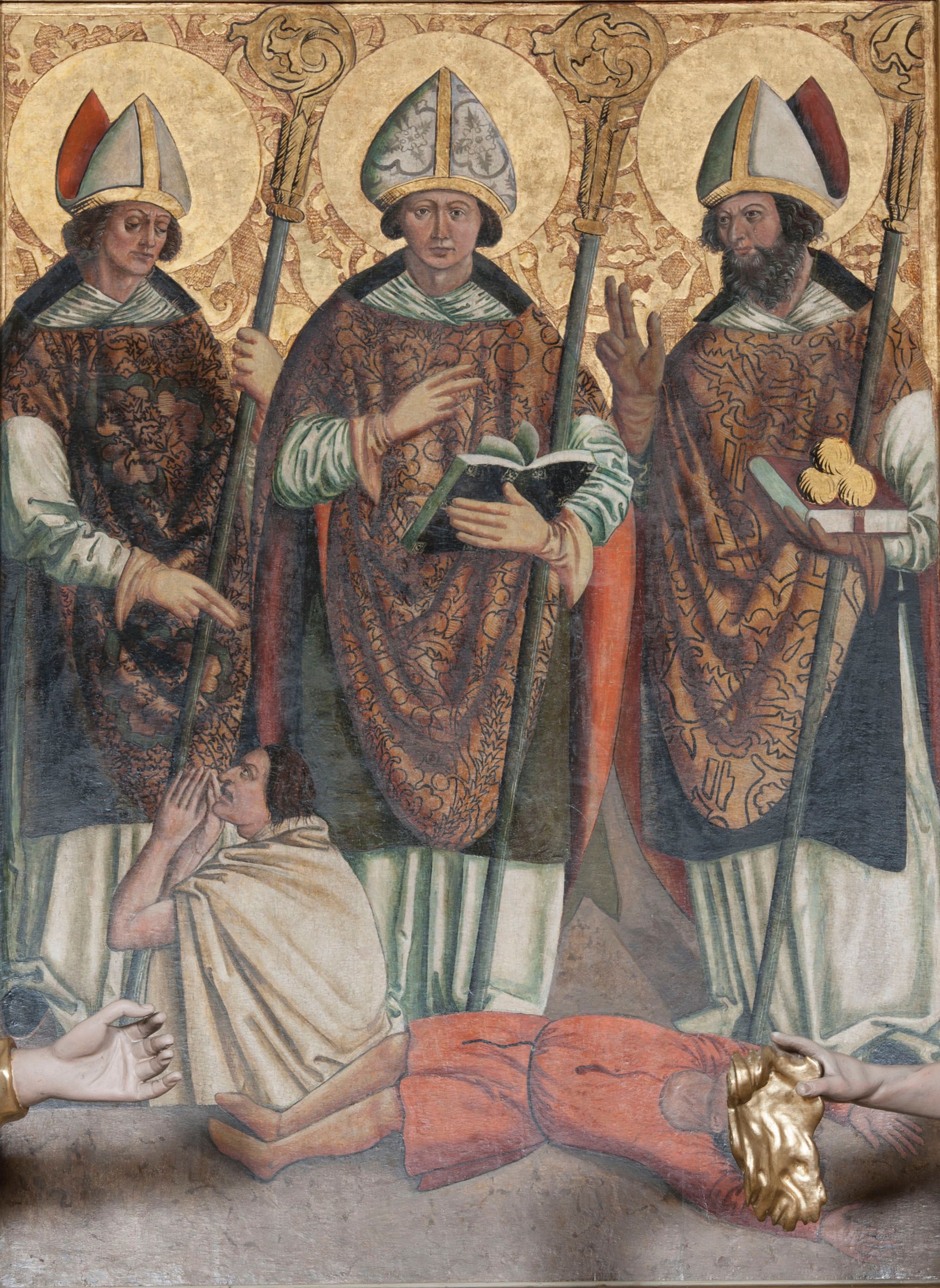 Maria Działo, "Central part of the triptych: St. Stanislaus, St. Valentine and St. Nicholas", [in:] "The Sacred Lesser Poland Heritage", 2026, source: https://sdm.upjp2.edu.pl/en/works/central-part-of-the-triptych-st-stanislaus-st-valentine-and-st-nicholas