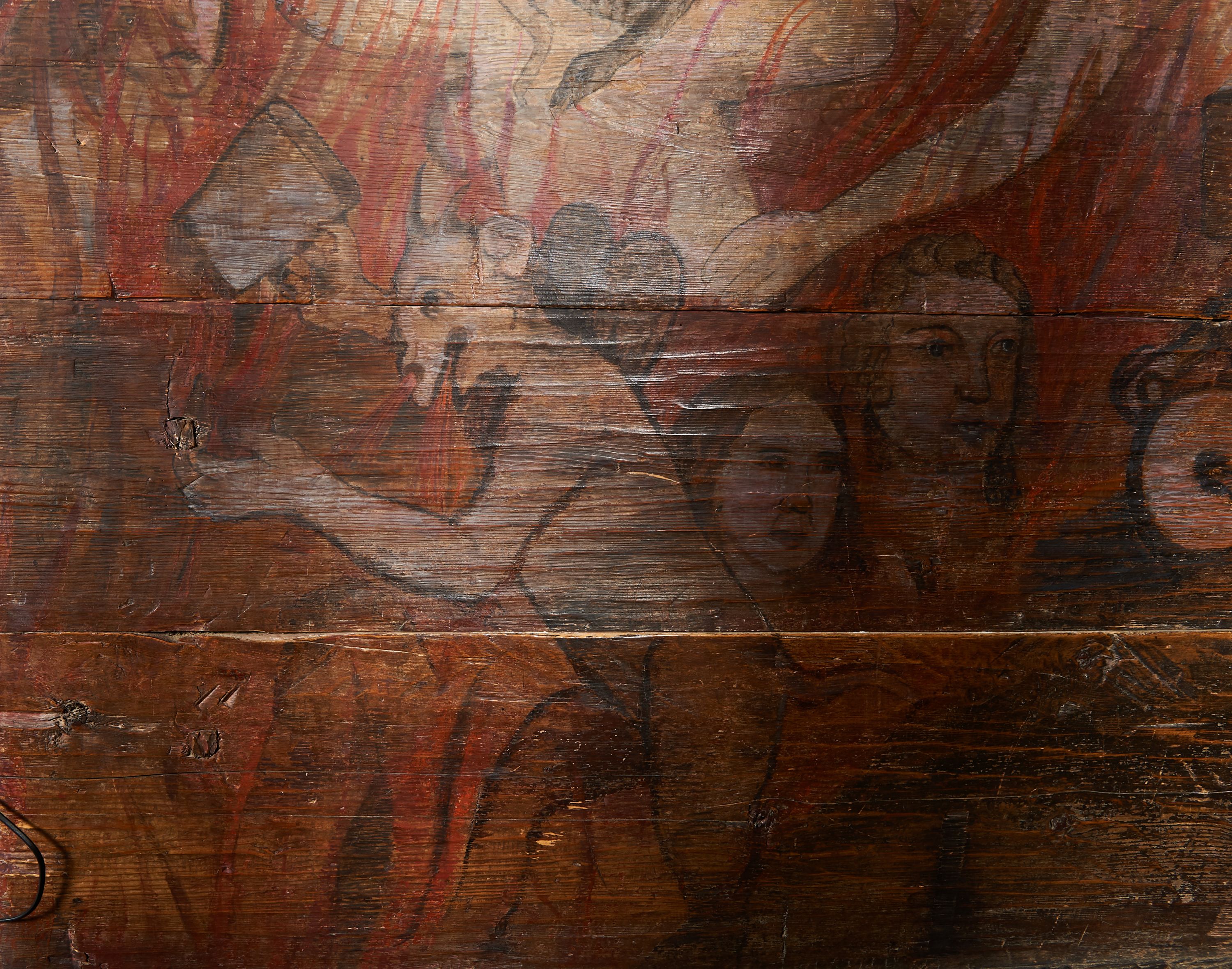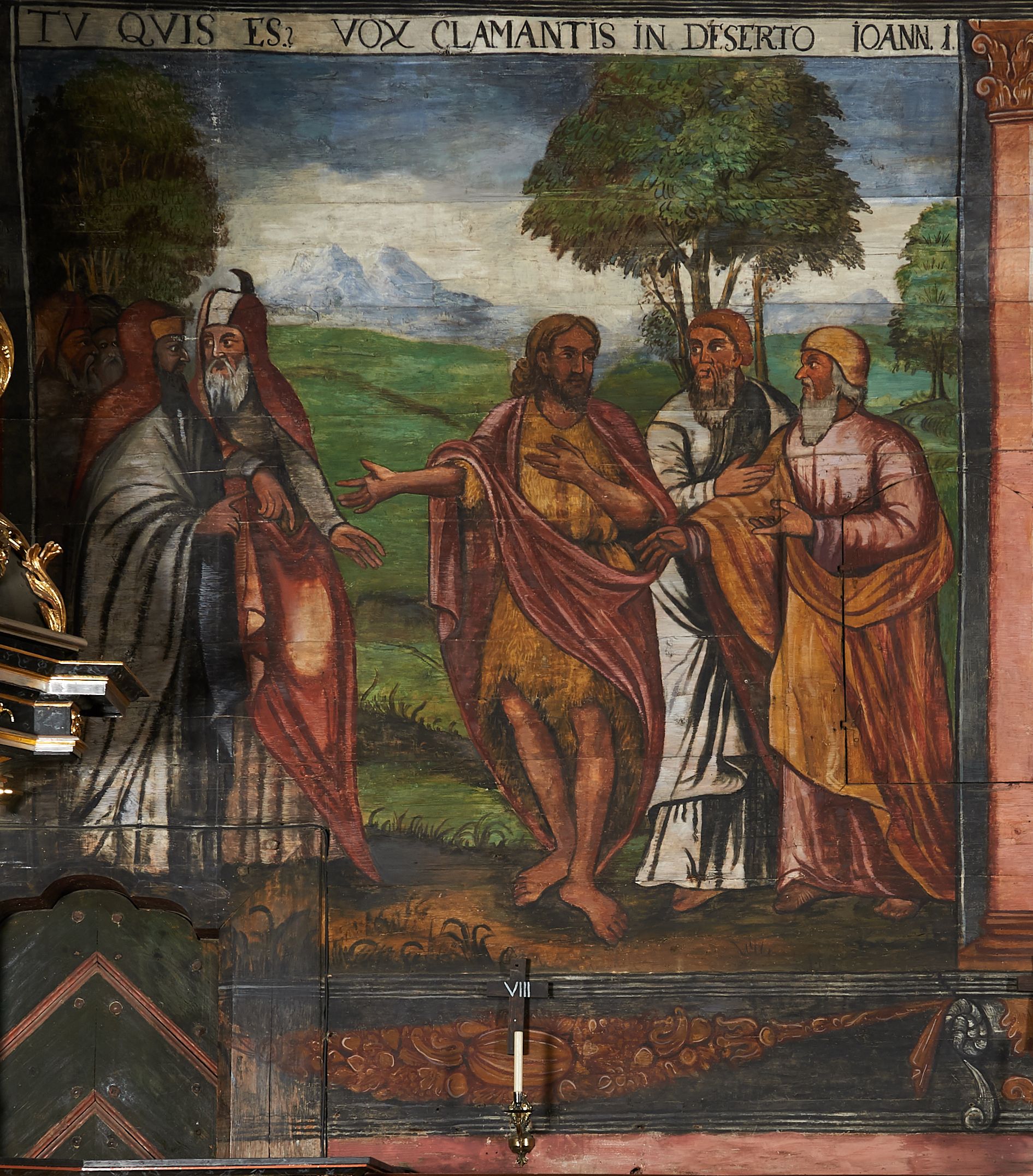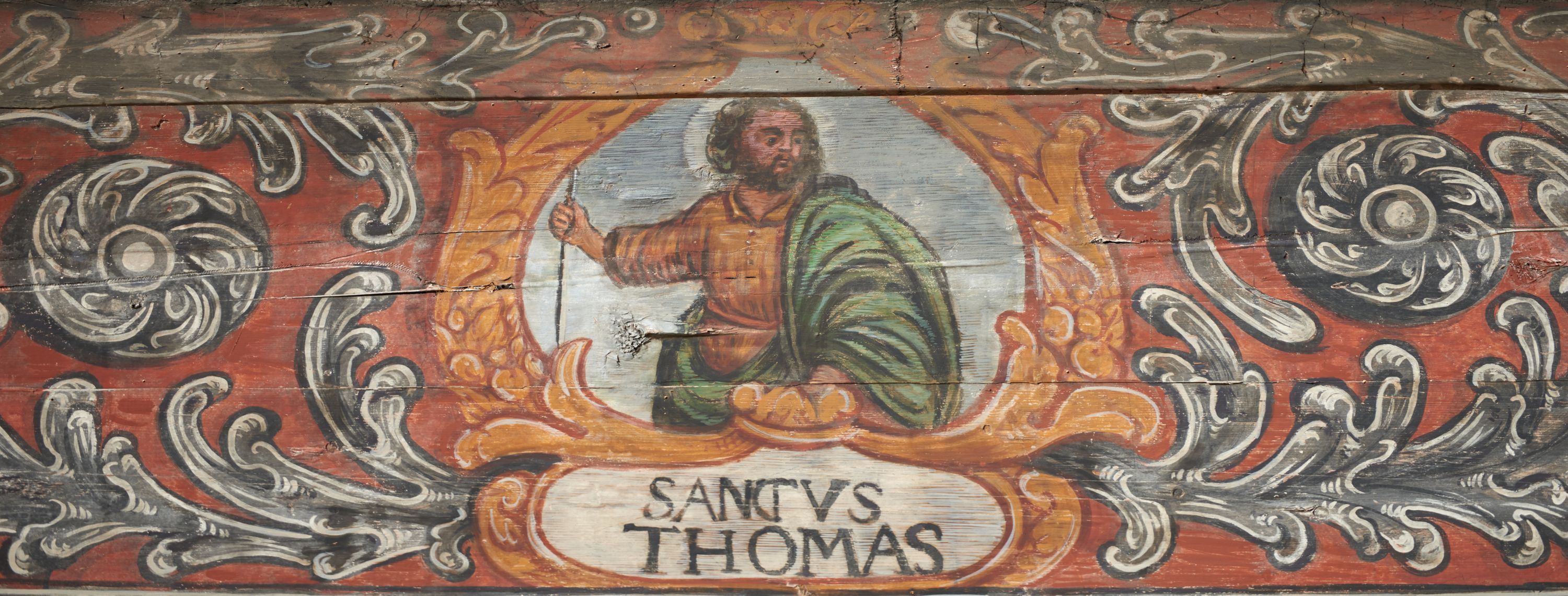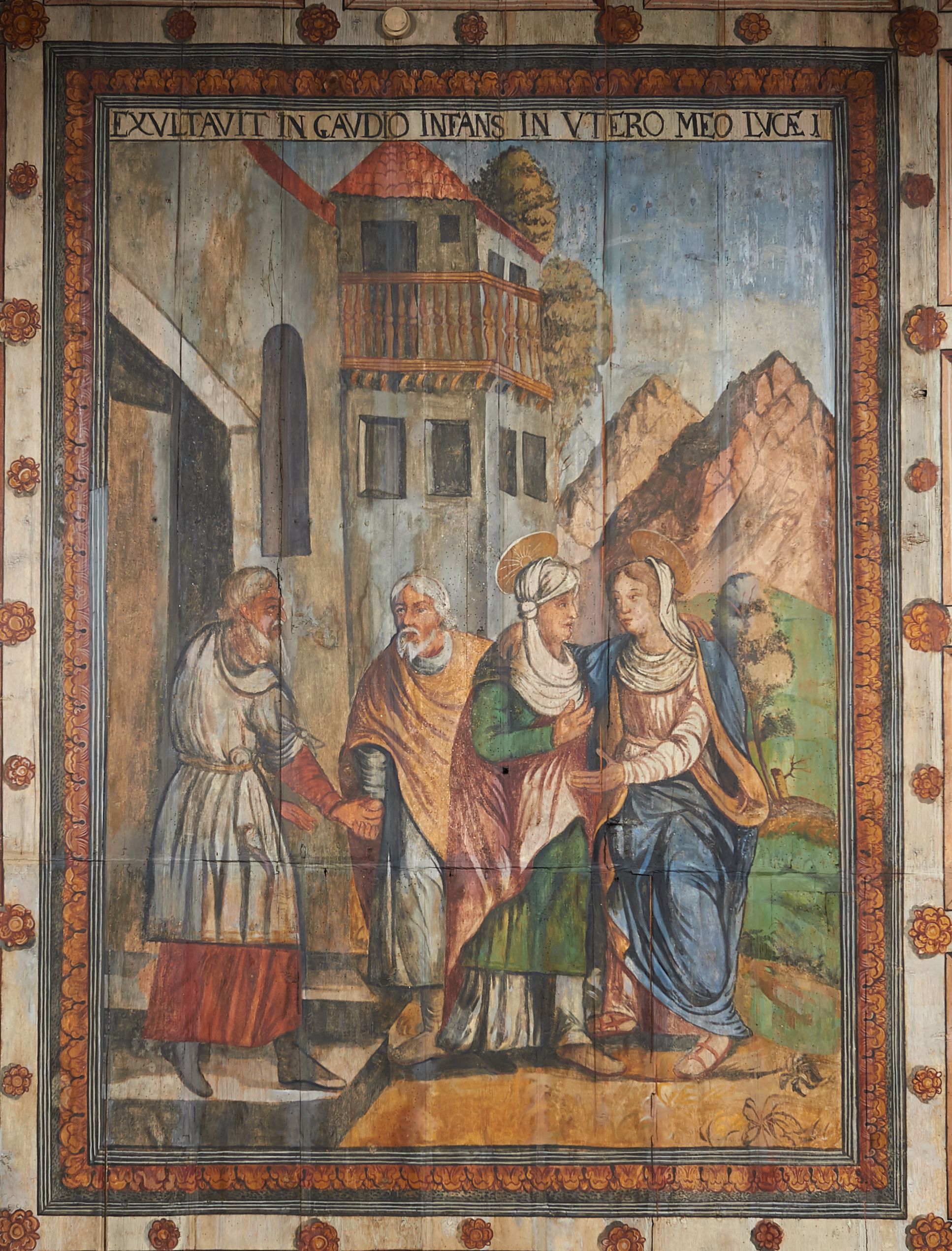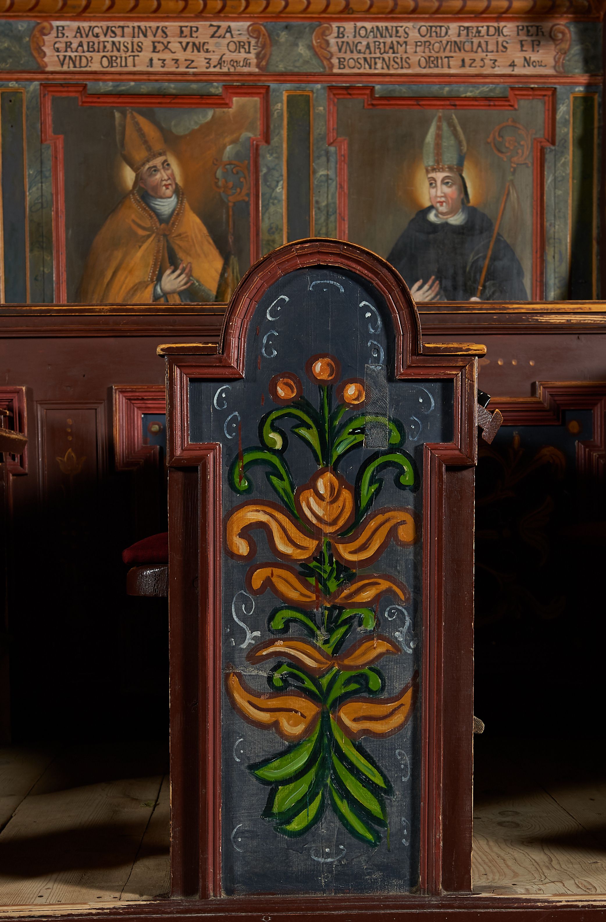The wall polychrome of the church was created by anonymous painters in several stages. It is assumed that in the years 1656 to 1711. The most important paintings include 14 paintings depicting scenes in Saint John the Baptist's life. The second series of polychromes includes 49 images of saints and blessed people connected with the history of Christianity in Hungary: 4 kings, 2 princes next to the altar, 11 bishops and St. Gunther at the bottom of the chancel's walls, another 15 saints and blessed people (conventuals, martyrs and hermits) under the organ front in the nave on the northern wall and on choir on the western wall. There are also 16 women on the roof truss in the nave, under the ceiling. This part of the polychrome was probably made in 1711, as this date can be seen on the rood beam. The subsequent series of polychromes is the Ten Commandments, painted on the choir front. It depicts keeping or breaking the commandments. These are pictures in lives of peasants, burghers, petty nobility and manor houses in the 17th/18th centuries. Polychrome is all the more valuable as it is the first presentation of a national costume of Orava. The devil was also imagined in six scenes.