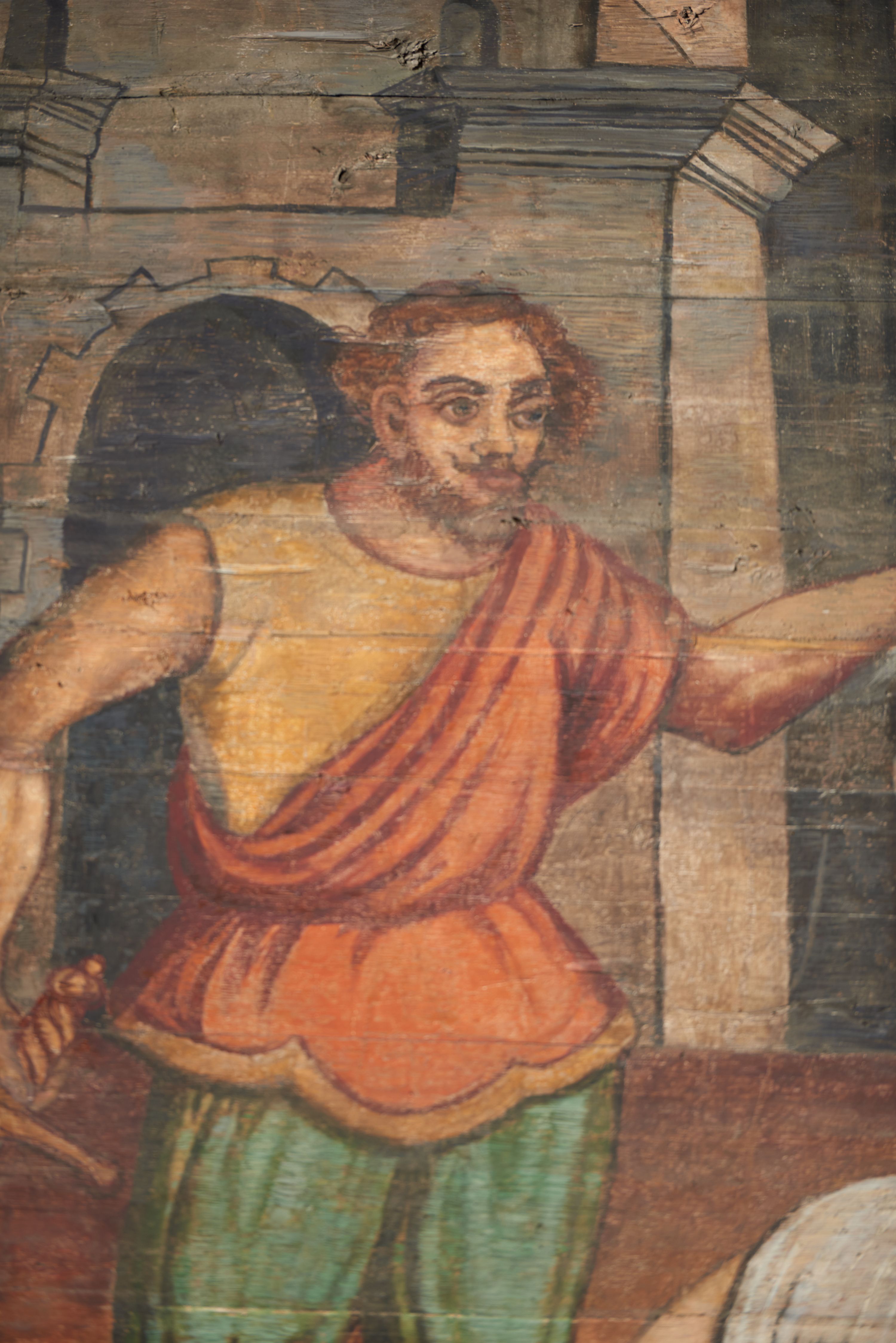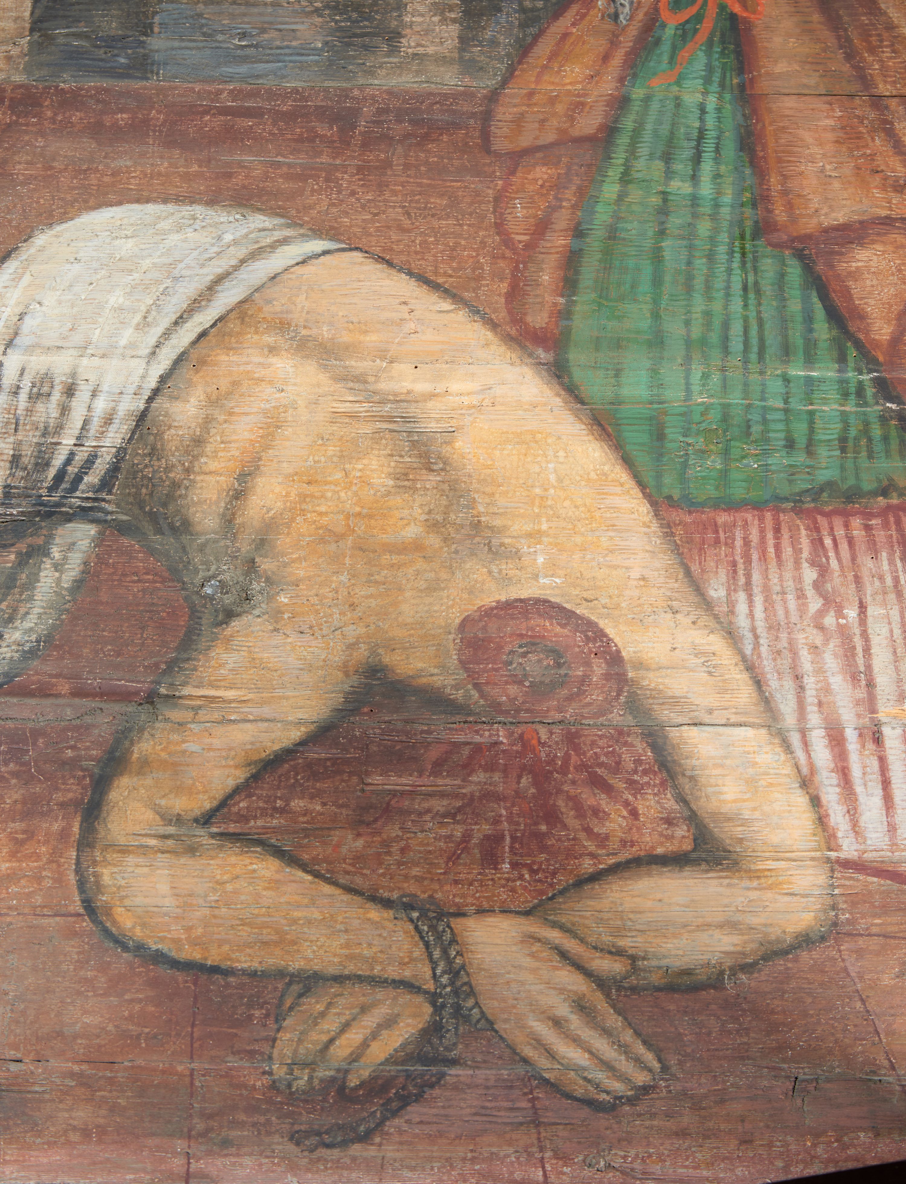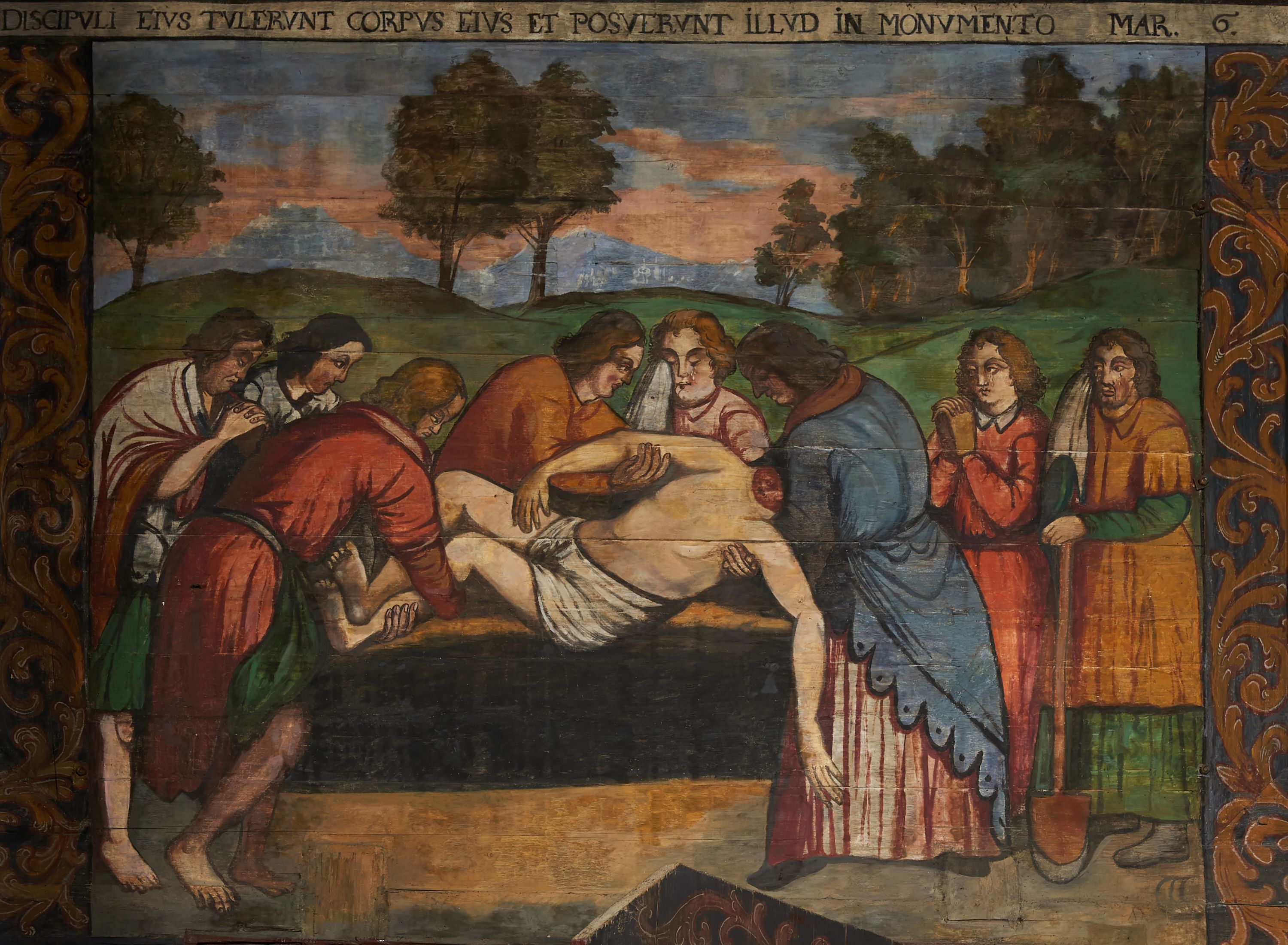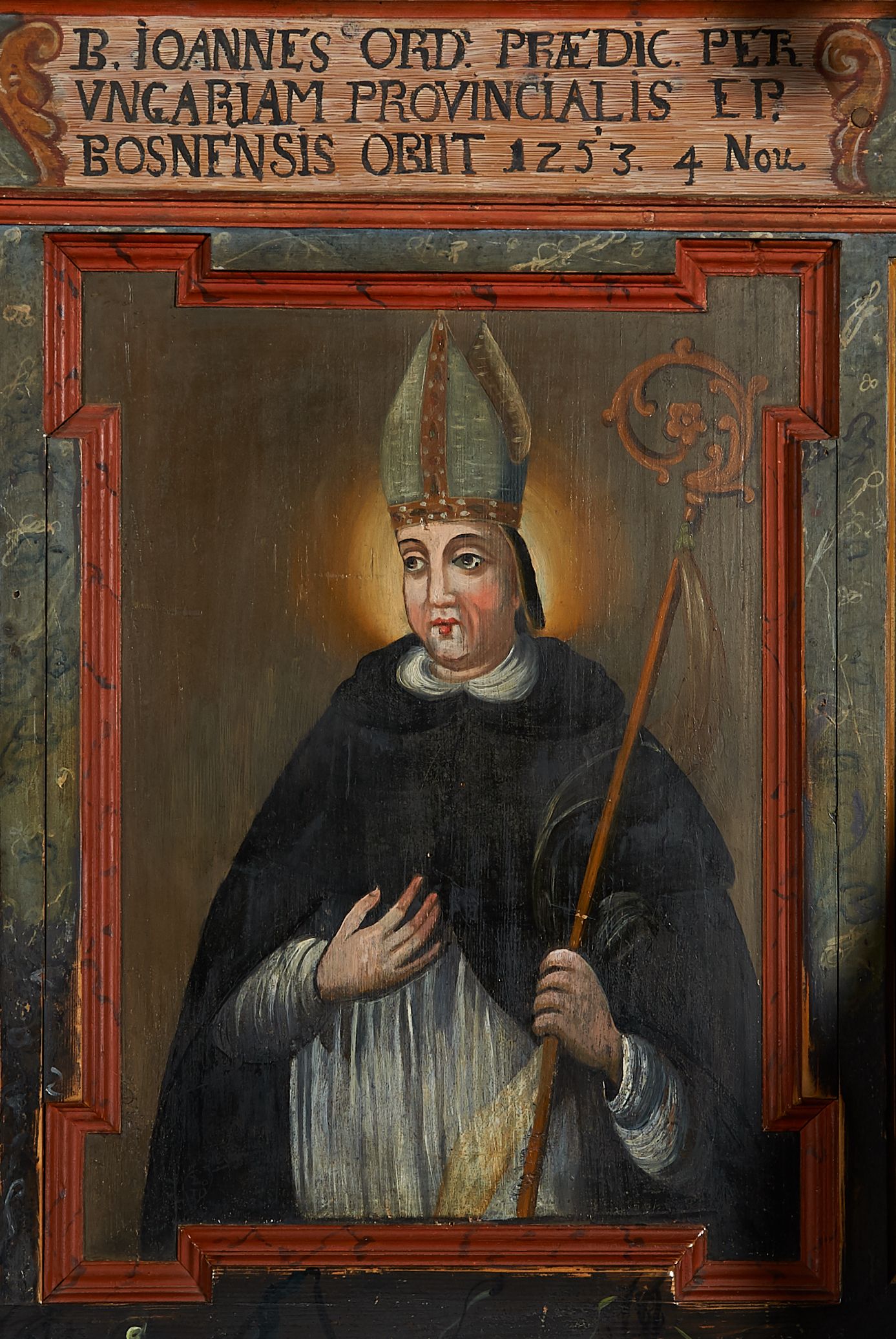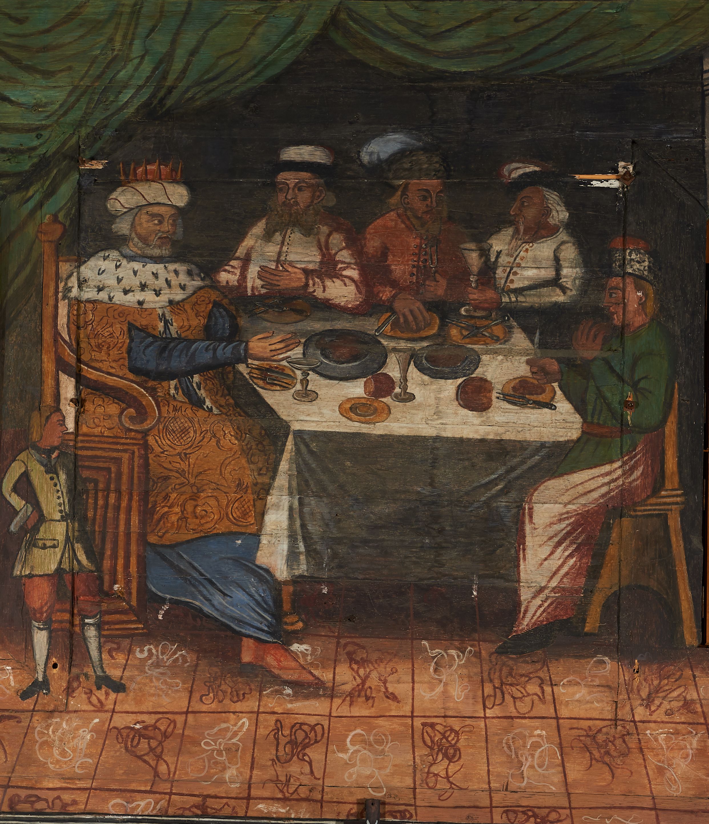 The wall polychrome of the church was created by anonymous painters in several stages. It is assumed that in the years 1656 to 1711. The most important paintings include 14 paintings depicting scenes in Saint John the Baptist's life. The second series of polychromes includes 49 images of saints and blessed people connected with the history of Christianity in Hungary: 4 kings, 2 princes next to the altar, 11 bishops and St. Gunther at the bottom of the chancel's walls, another 15 saints and blessed people (conventuals, martyrs and hermits) under the organ front in the nave on the northern wall and on choir on the western wall. There are also 16 women on the roof truss in the nave, under the ceiling. This part of the polychrome was probably made in 1711, as this date can be seen on the rood beam. The subsequent series of polychromes is the Ten Commandments, painted on the choir front. It depicts keeping or breaking the commandments. These are pictures in lives of peasants, burghers, petty nobility and manor houses in the 17th/18th centuries. Polychrome is all the more valuable as it is the first presentation of a national costume of Orava. The devil was also imagined in six scenes.
