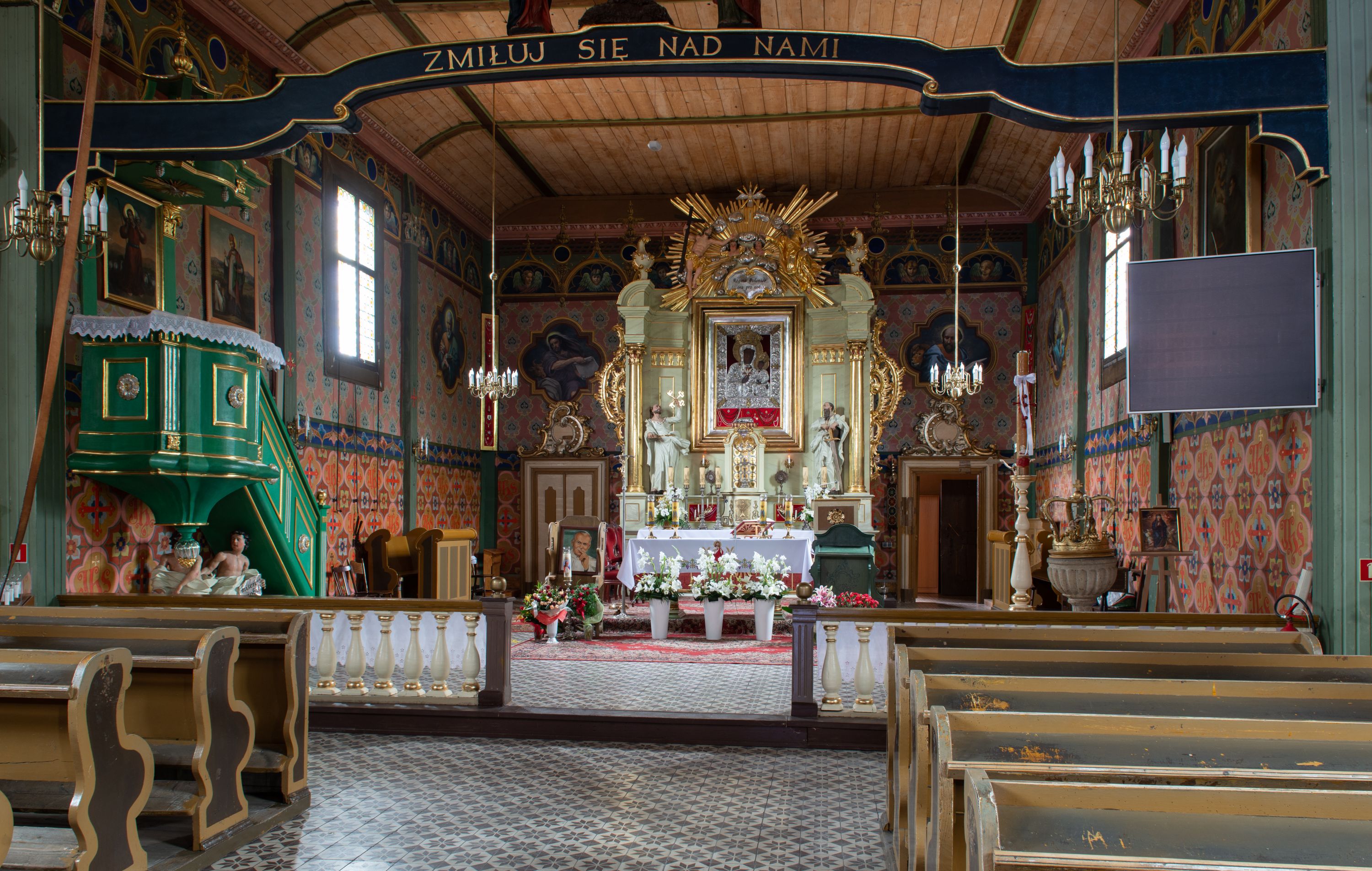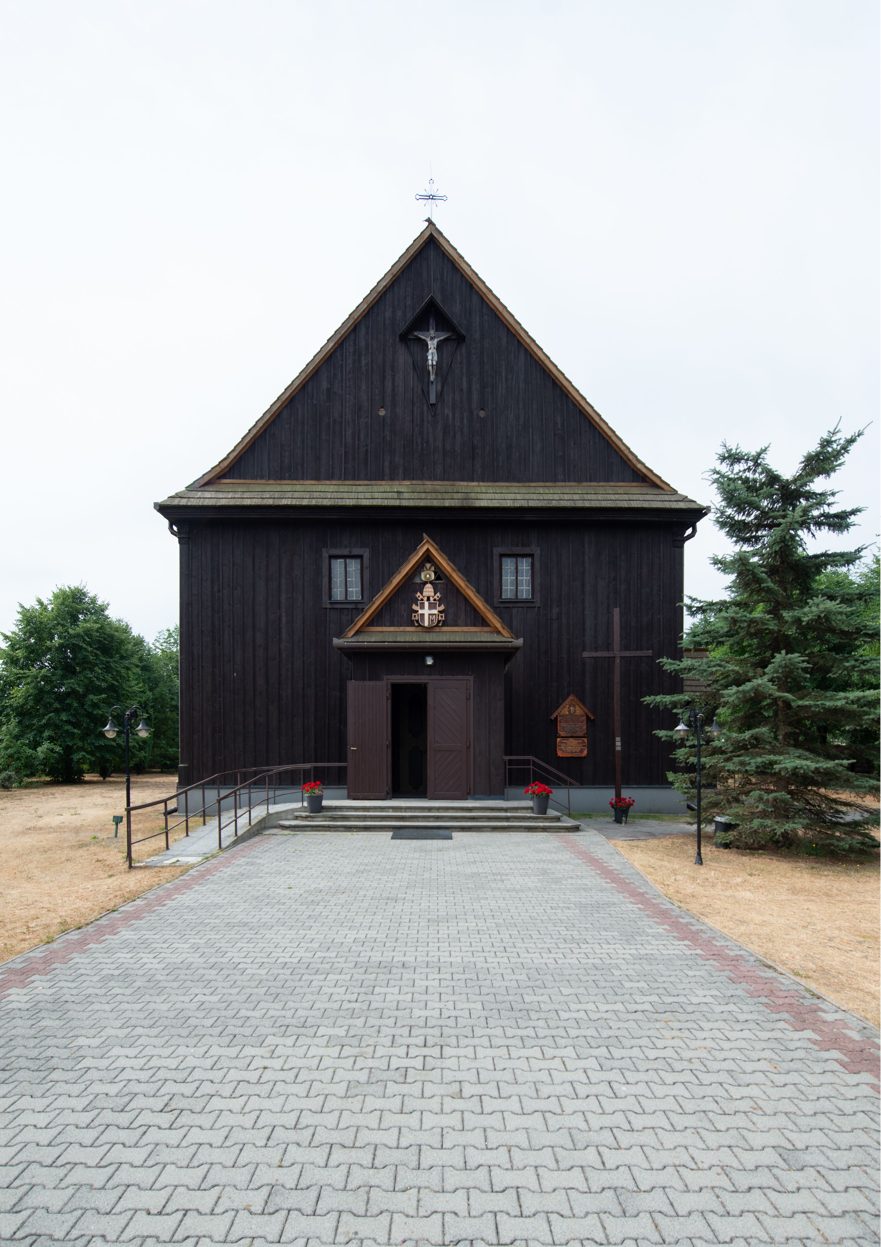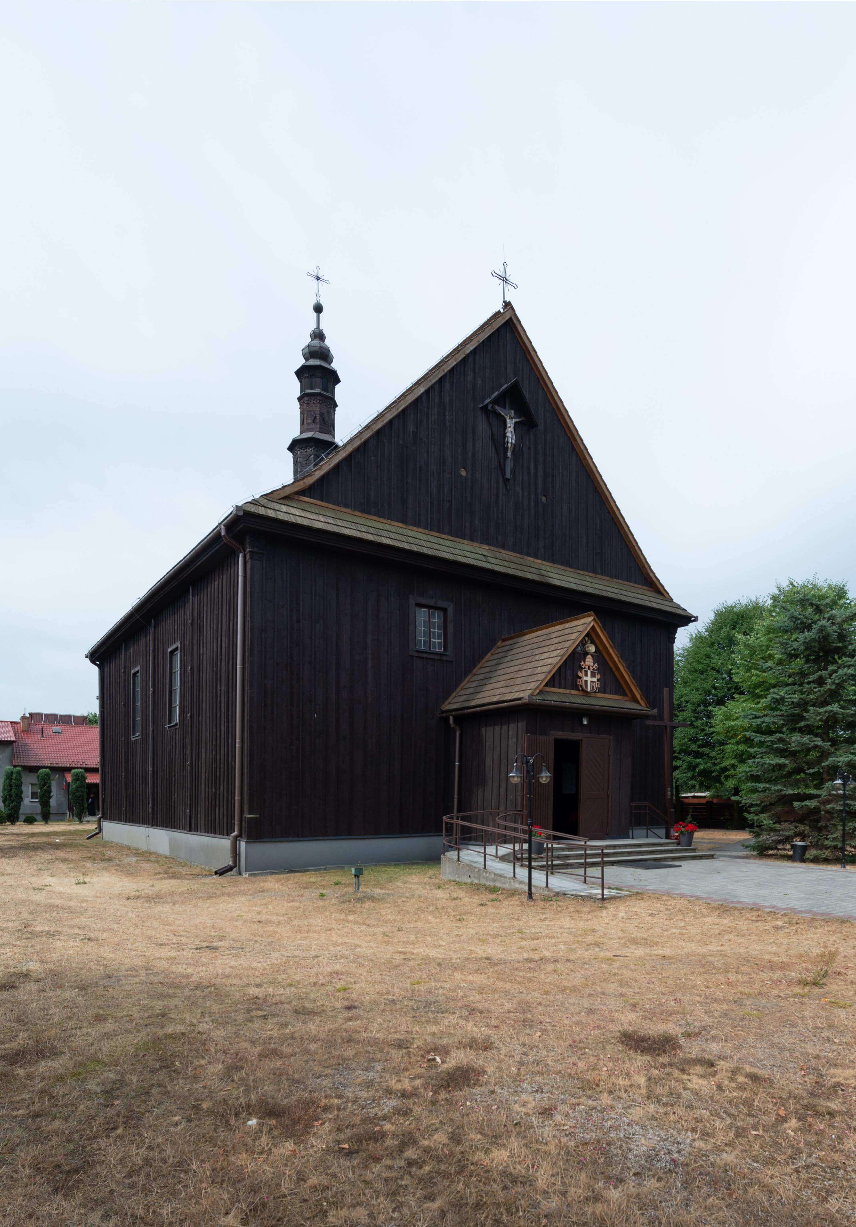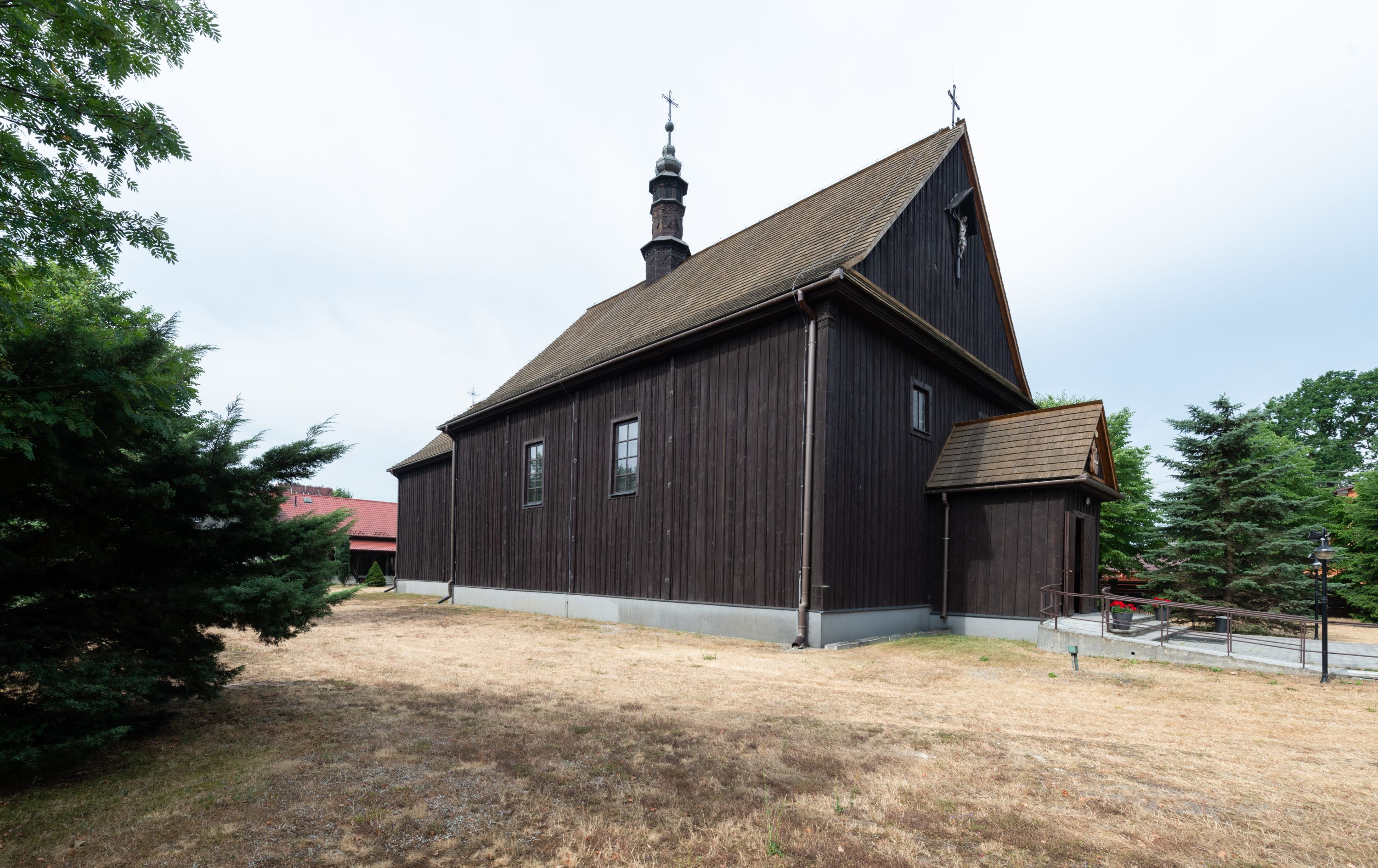 The church was built in 1771 for the parish Niegowić near Bochnia. It was funded by Teresa (née Sędzimir) Grzębska and was officially named as the Church of the Assumption of the Blessed Virgin Mary. Over the period of 1972-1974 it was being moved to Mętków, and its reconstruction was performed by the Highlanders from Spiš (Spisz). Three altars of the second half of the 18th century, as well as the left-side-altar renaissance painting of Virgin and Child with Saint Anne (made in tempera technique on the board), deserve to be valued. The late baroque pulpit and baptismal font, as well as the antique Stations of the Cross (the first half of the 19th century) hanging on the walls, may be viewed in the chancel.