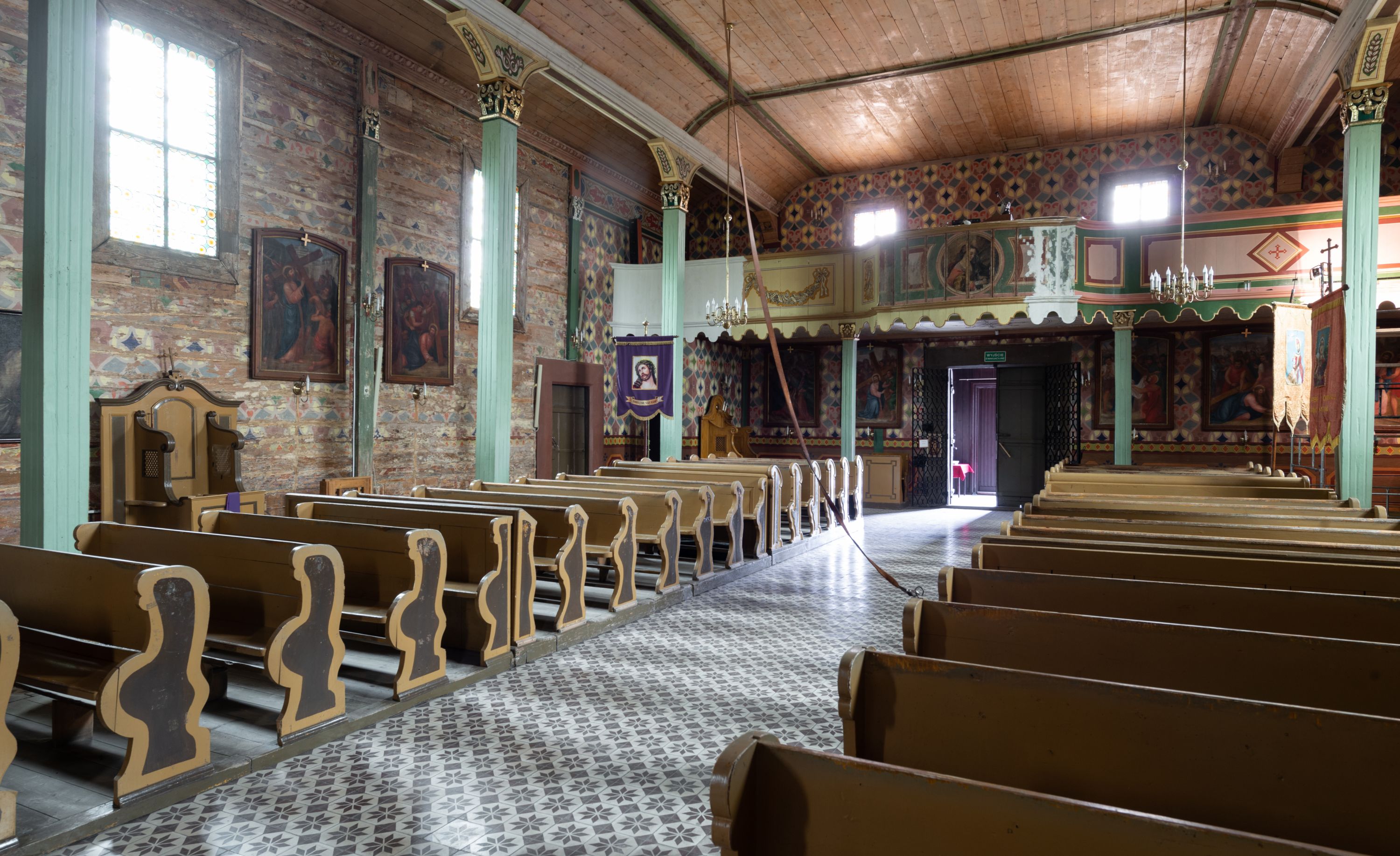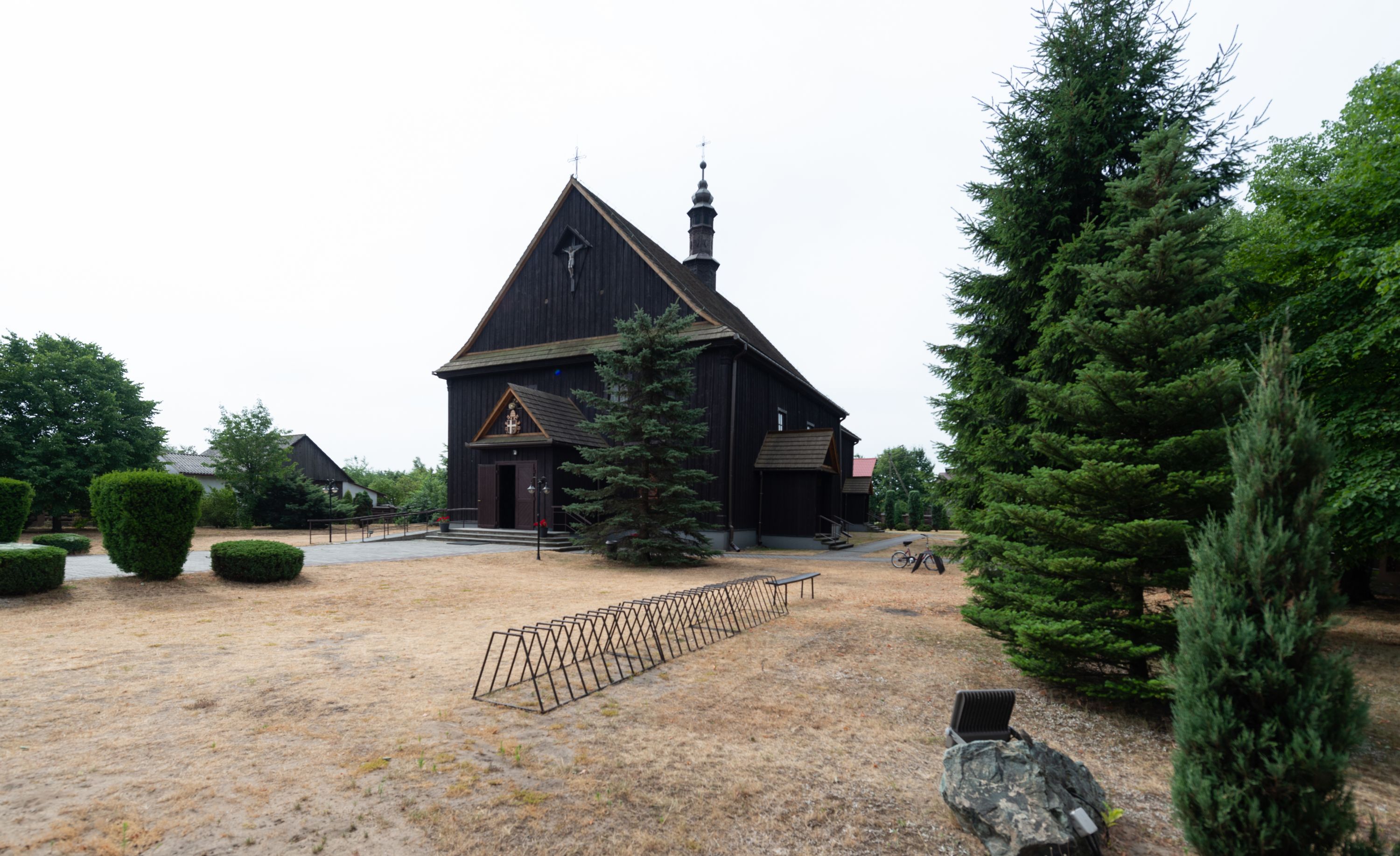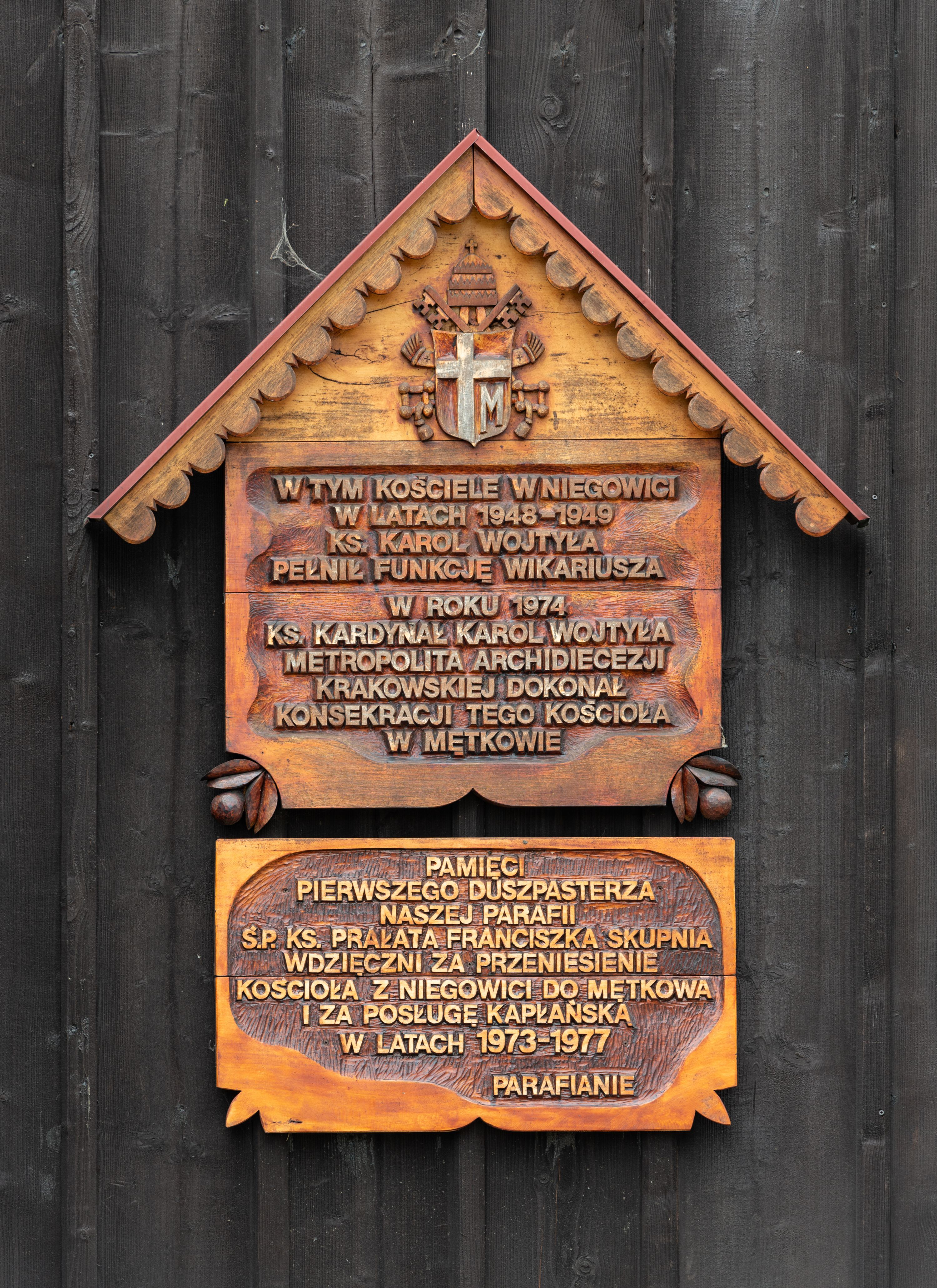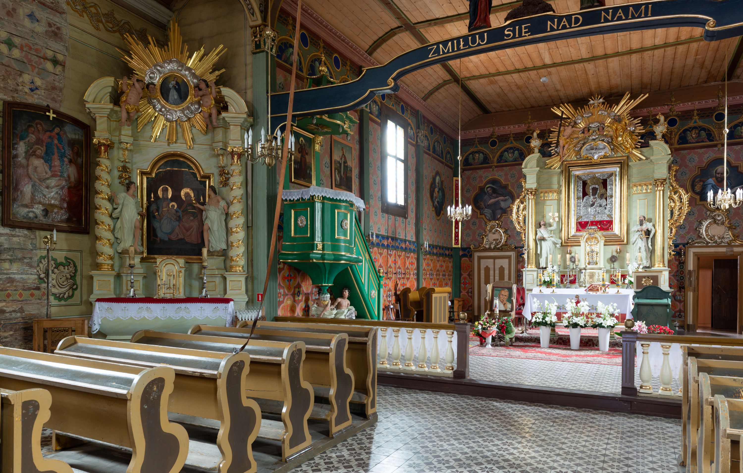 The church was built in 1771 for the parish Niegowić near Bochnia. It was funded by Teresa (née Sędzimir) Grzębska and was officially named as the Church of the Assumption of the Blessed Virgin Mary. Over the period of 1972-1974 it was being moved to Mętków, and its reconstruction was performed by the Highlanders from Spiš (Spisz). Three altars of the second half of the 18th century, as well as the left-side-altar renaissance painting of Virgin and Child with Saint Anne (made in tempera technique on the board), deserve to be valued. The late baroque pulpit and baptismal font, as well as the antique Stations of the Cross (the first half of the 19th century) hanging on the walls, may be viewed in the chancel.