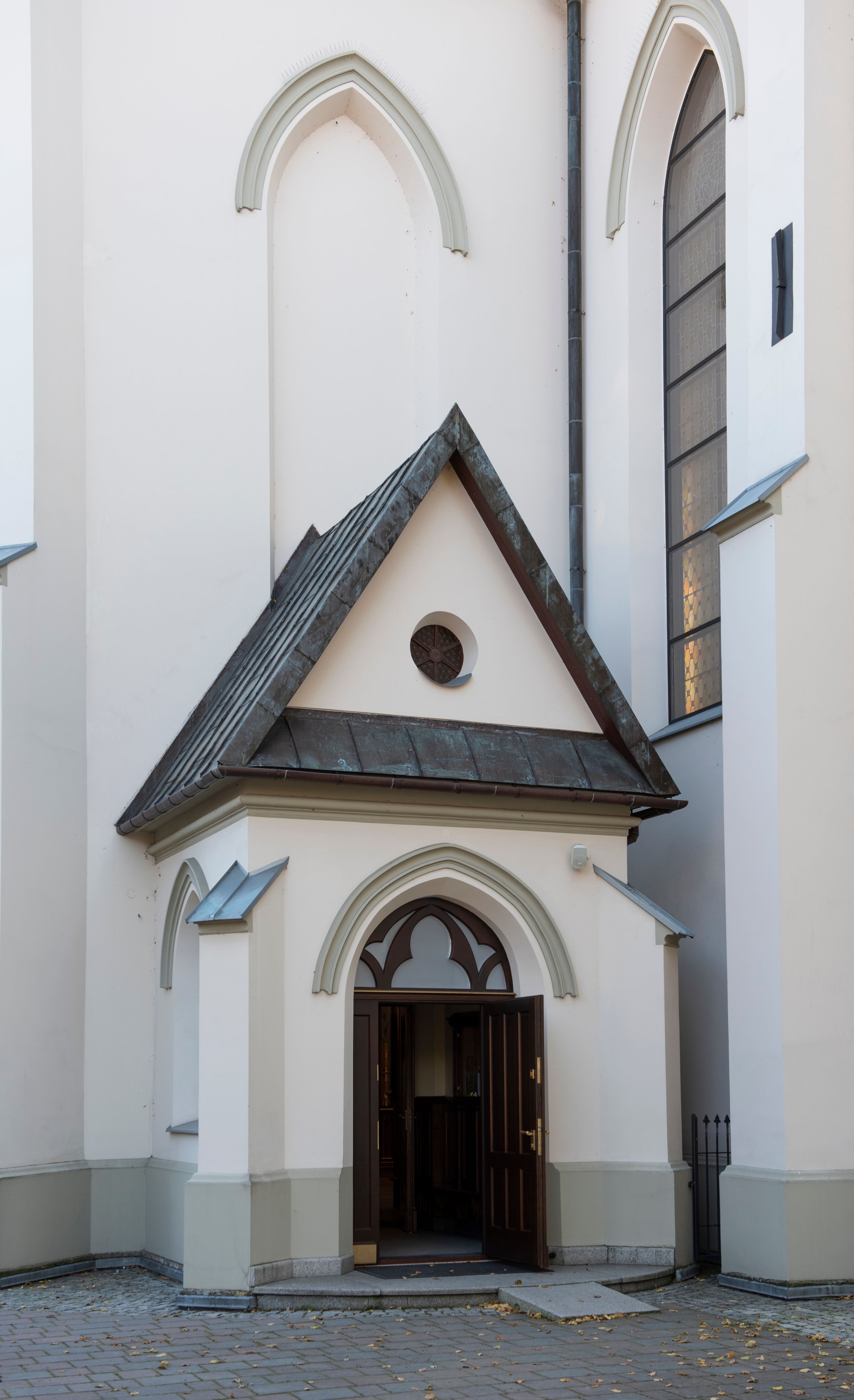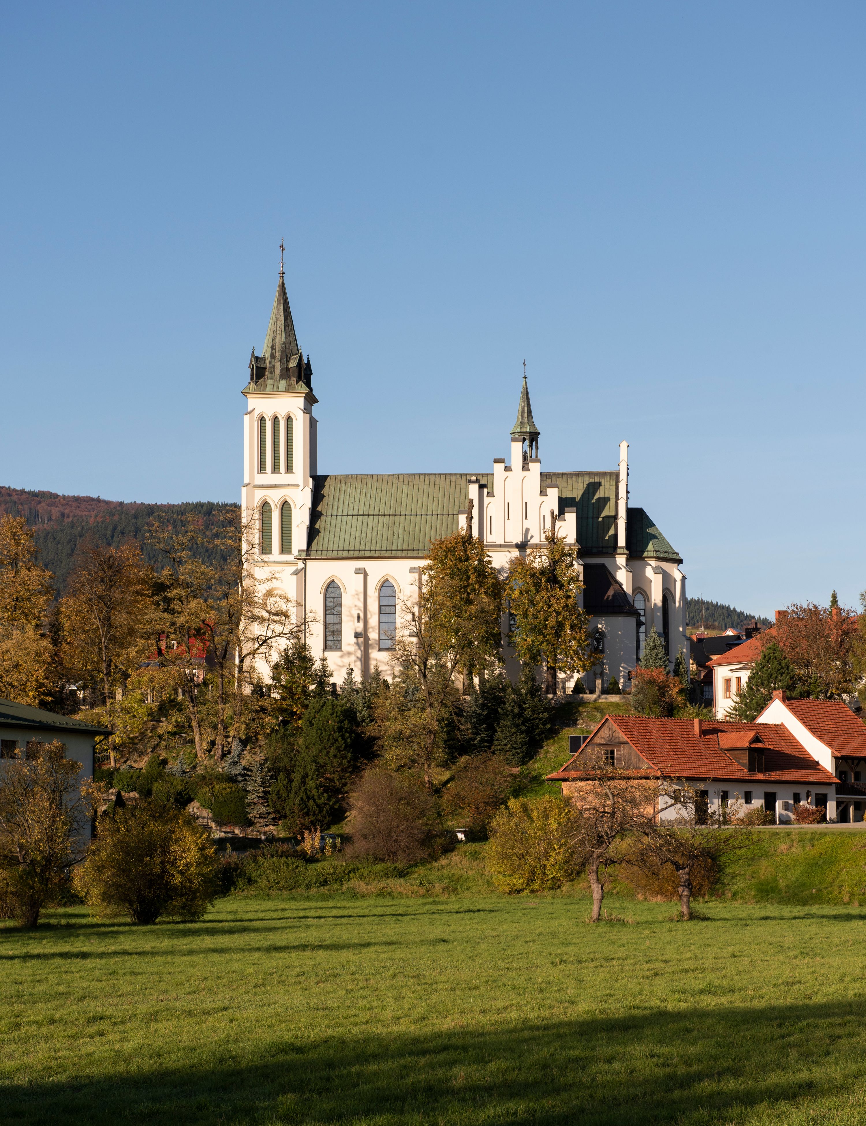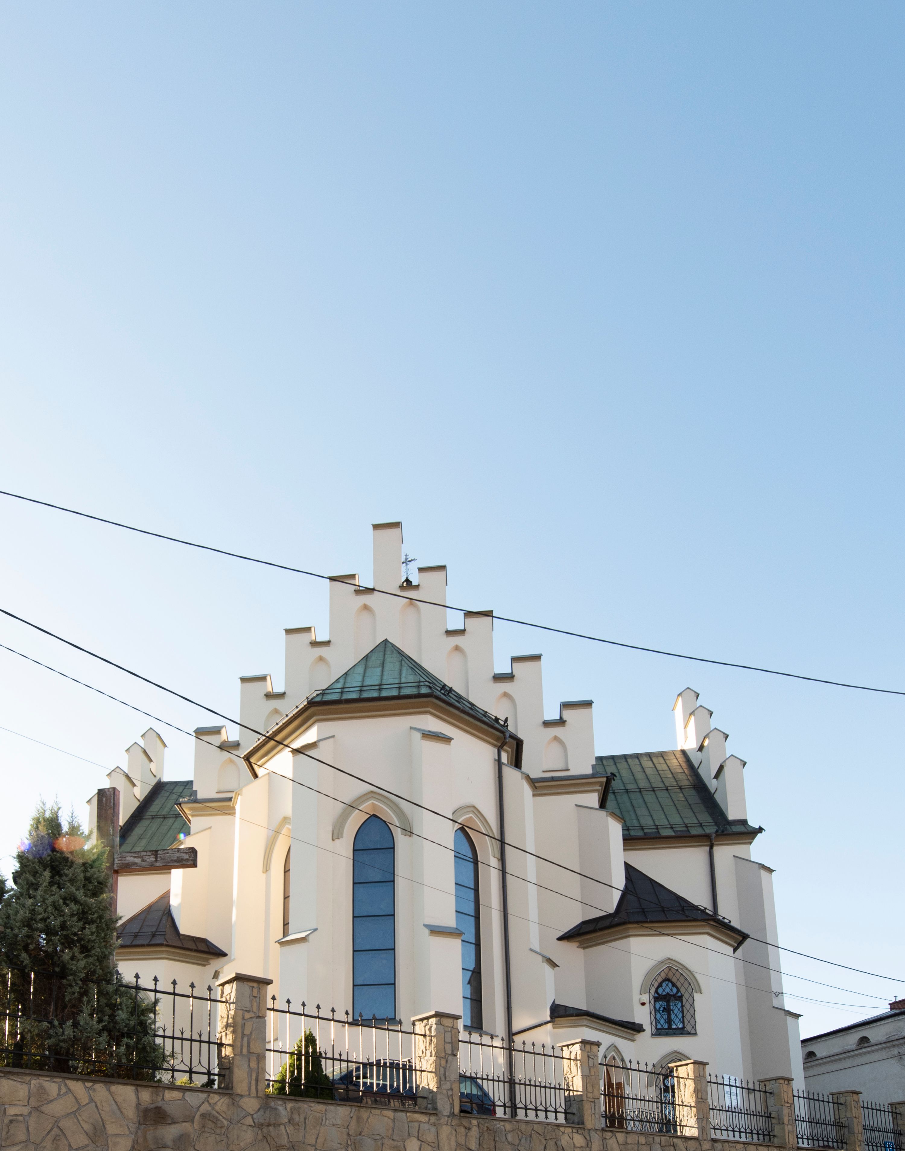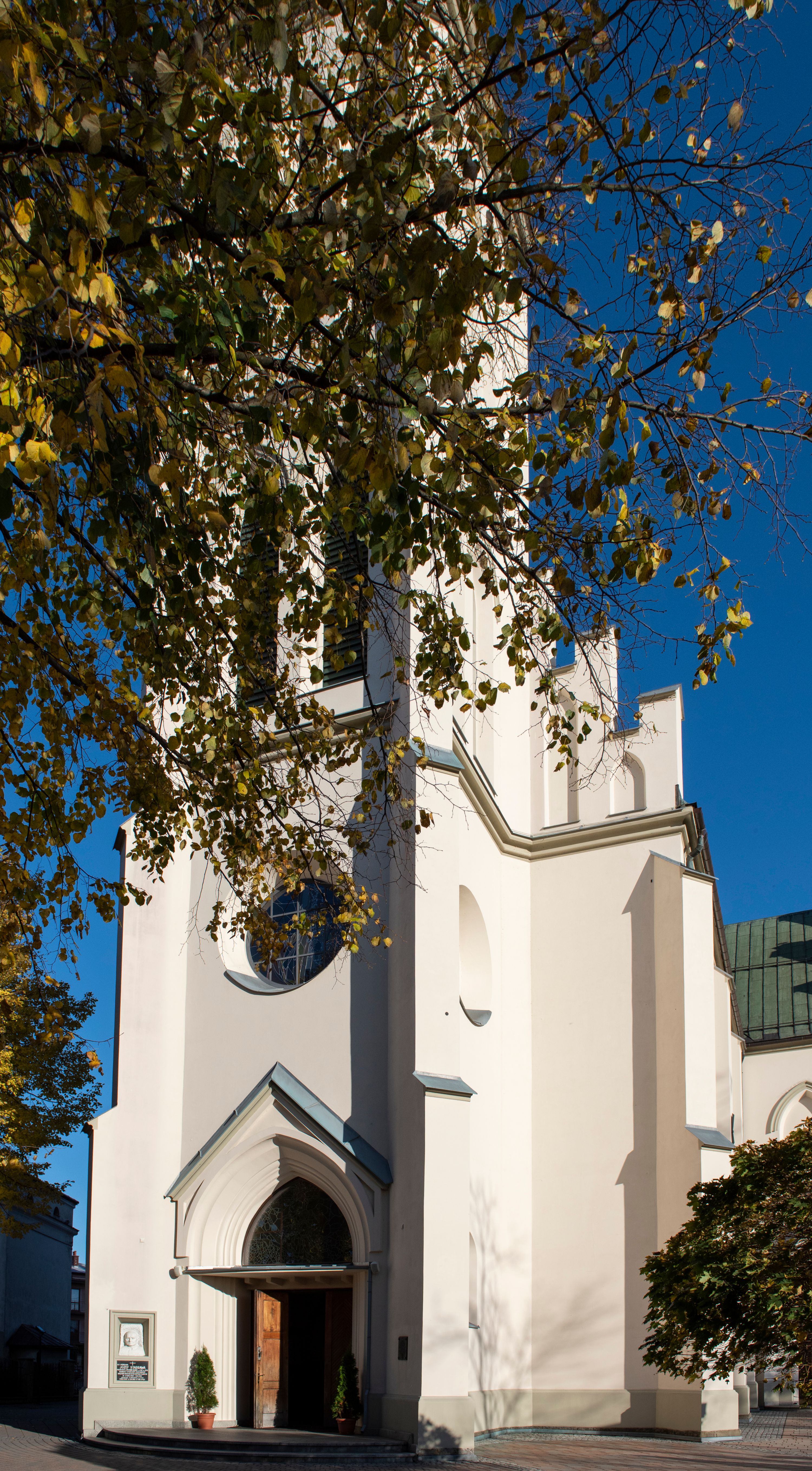 Church of Michael the Archangel in Mszana Dolna was built in 1891-1901 in the Neo-Gothic style. The temple was designed by Wincenty Wdowiszewski. In the church, the architect designed high, narrow windows that are divided into columns with pointed arch with closed top. These windows are stained glass ones and deserve special attention. The first of them was commissioned by Franciszek Mączyński (on the advice of then parish priest Józef Stabrawa) and was created by Juliusz Makarewicz in 1917. The stained-glass windows were made in the Stained Glass Workshop S. G. Żeleński in Cracow. The concept of the composition is a holistic project of church decoration, in which the main elements were wall paintings and stained glass windows. Another six stained glass windows were made in 1919 by the same artist group. Makarewicz's last work for the church in Mszana was a stained glass window depicting St. Michael the Archangel on the window of the chancel. At the turn of the 19th and 20th centuries, the church was equipped with altars. In 1910, a new baptismal font, confessionals and organs were purchased. Stations of the Cross, made by Józef Zając, hang on the walls of the temple. The oldest furnishings of the church include: a stone stoup from 1668, a painting depicting the Dormition of the Virgin from around 1530 (originates from the St. Anne's Church in Cracow), a painting of St. Michael the Archangel from the 17th century and a painting of St. Augustine and the Child from the 18th century. At the entrance to the church, it is worth paying attention to a bust of father Józef Stabrawa, a parish priest in Mszana Dolna for many years, who died in the Dachau concentration camp. The bust was made by the local sculptor Stanisław Ciężadlik.