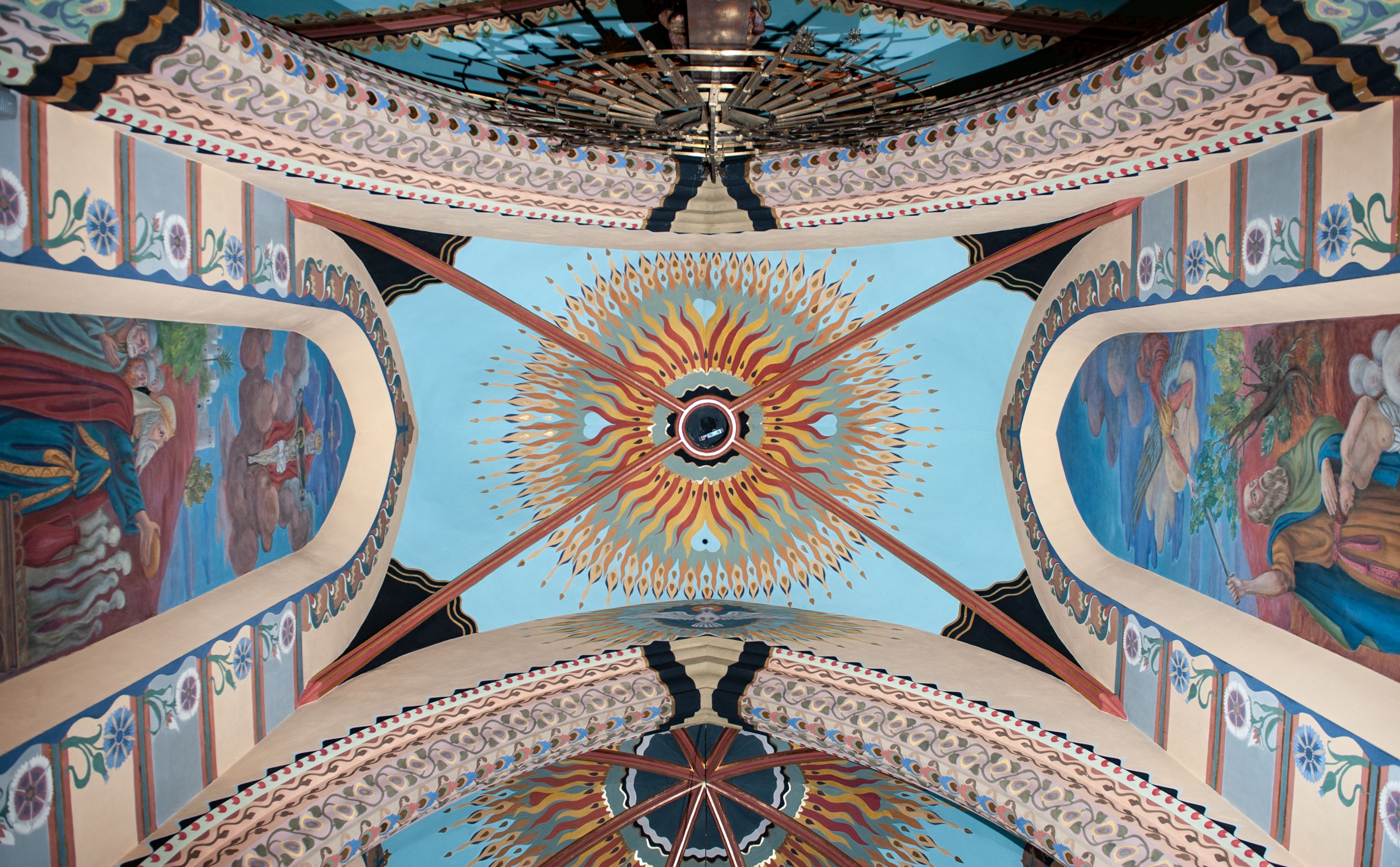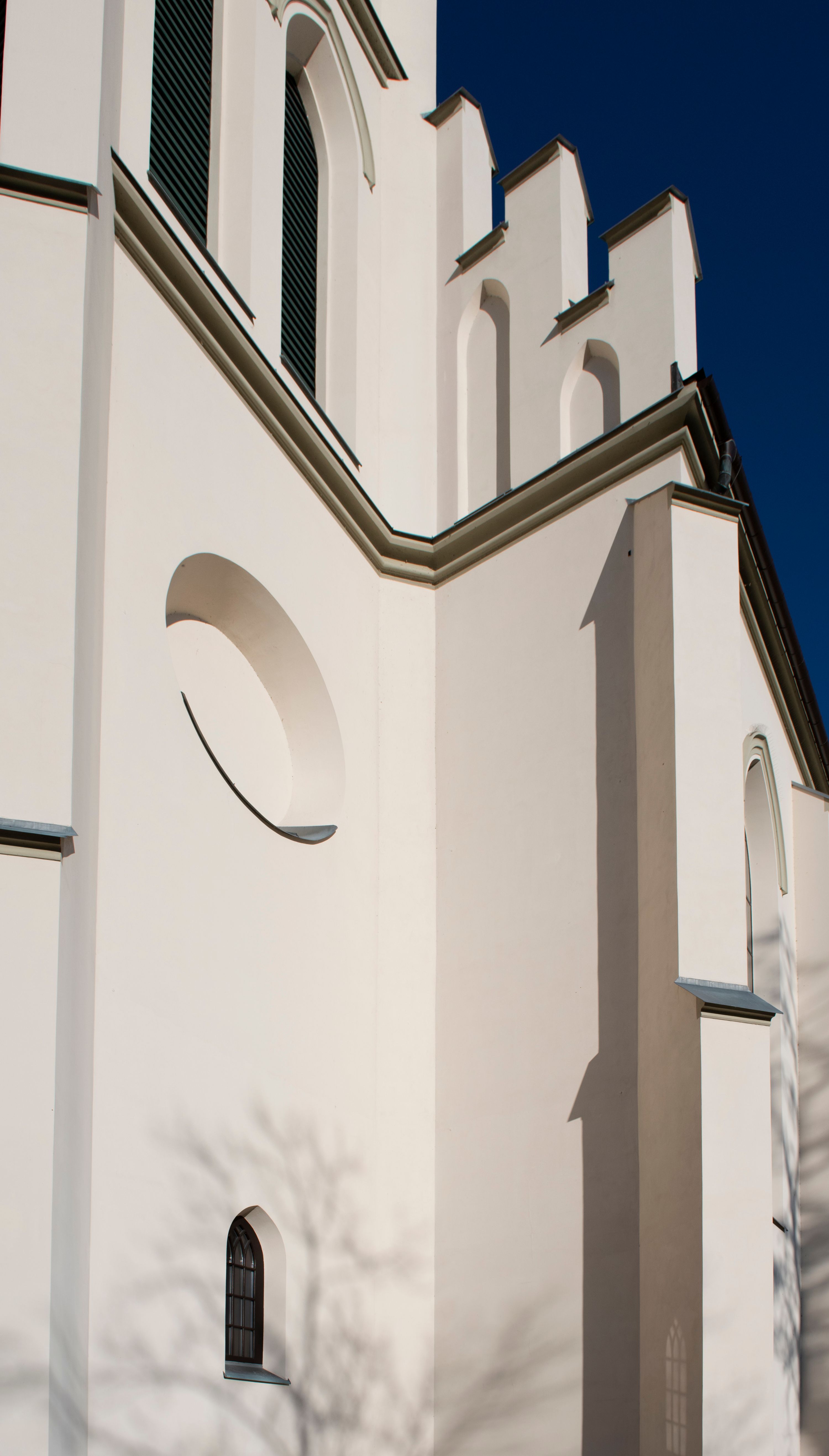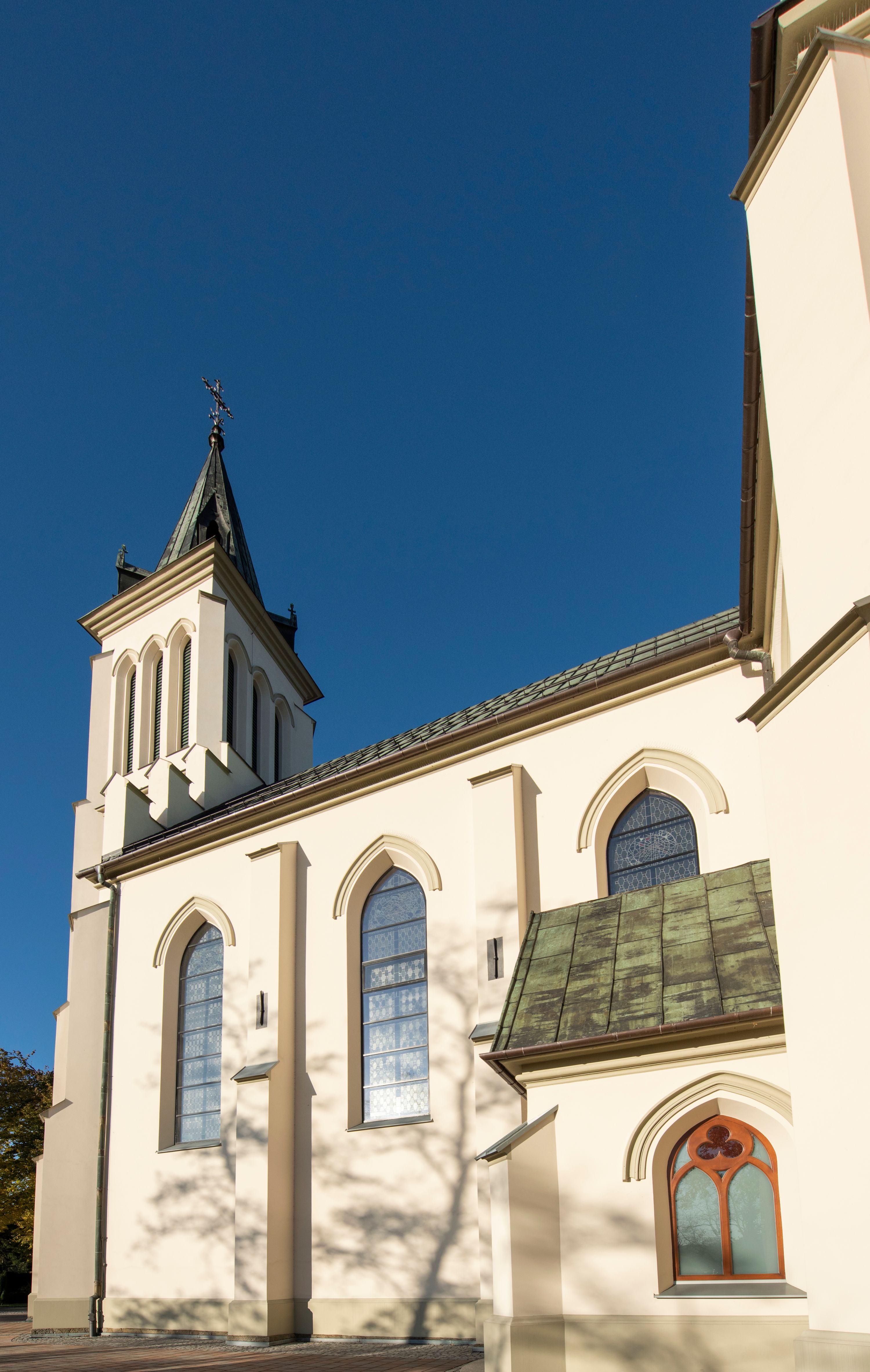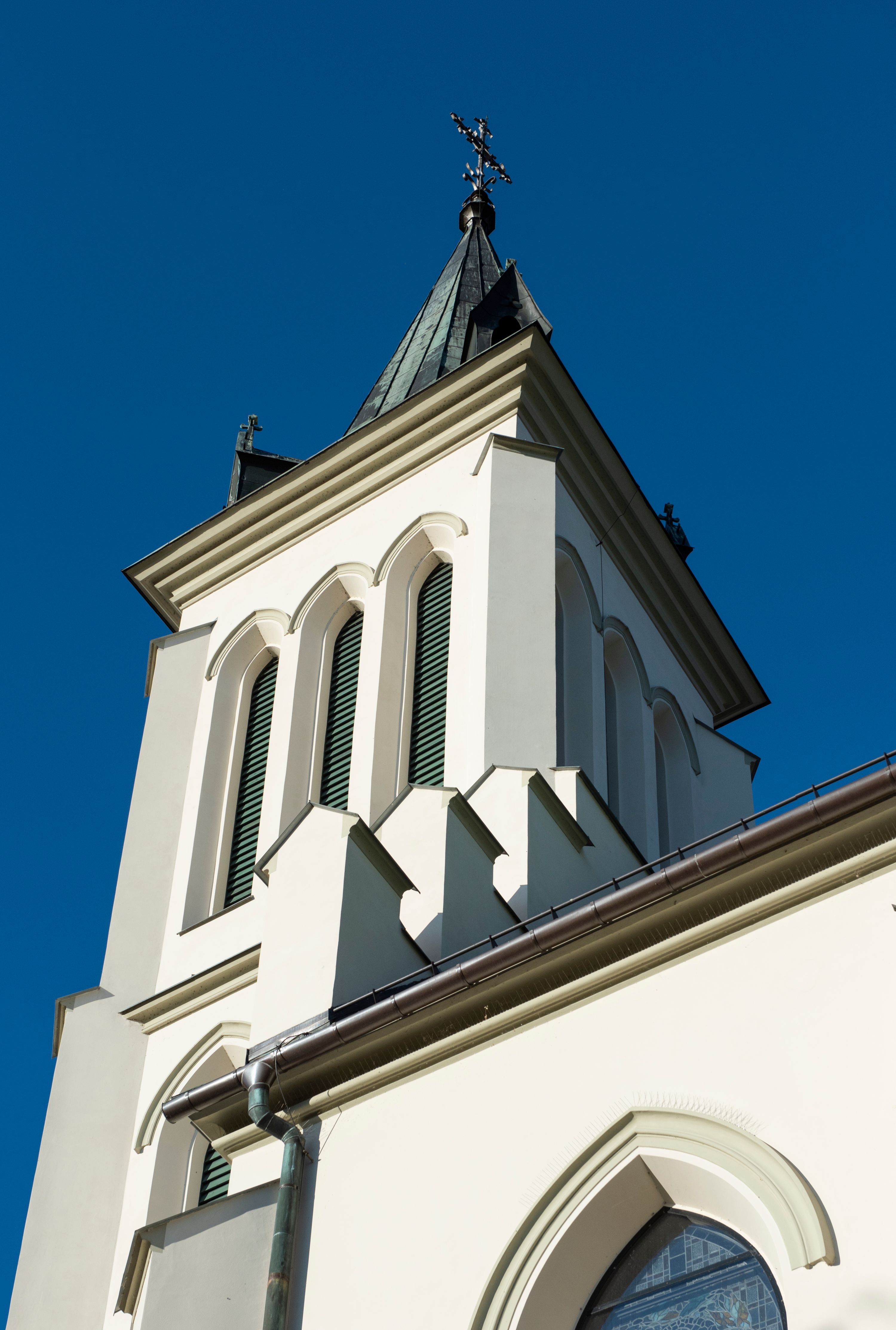 On 6 March 1888, the parish committee decided to build a new church in Mszana Dolna. The temple was built in the years 1891-1901. The funders were Maria and Henryk Krasiński. It was designed by architect Wincenty Wdowiszewski from Cracow. At the turn of the 19th and 20th centuries, the church was equipped with altars. In 1910, a new baptismal font, confessionals and organs were purchased. At the end of World War I, parish priest Józef Stabrawa commissioned Juliusz Makarewicz to create wall paintings, which were done in the years 1918-1920. Another paintings depicting St. Cecilia and St. Francis, placed on a wall above the matroneum, were created by Erwin Czerwenka in 1921. In 1927 and 1929, Juliusz Makarewicz drew up renovation projects of two side altars: of Our Lady of Good Counsel and of the Holy Trinity. In both of them a new central part in the form of a triptych was added, and in the altar of the Holy Trinity a sculpture of the Most Sacred Heart of Jesus was additionally placed. Since 1918 the church has been successively decorated with stained glass windows. First of those were placed in the windows of the nave, then in the transept (1919, 1930), the porch (1923) and the chancel (1922, 1929-1930). The authors of stained glass designs were: Juliusz Makarewicz, Erwin Czerwenka and Zdzisław Gedliczka. The main stained glass depicting the patron saint of the temple, St. Michael the Archangel, was made in 1922 according to the design of Juliusz Makarewicz. Another stained glass in the chancel was created in 1929. This exceptional work won the gold medal during the General National Exhibition (PeWuKa) in Poznań. It represents Our Lady of the Immaculate Conception. The second stained glass in the chancel represents St. Joseph, and was created in 1930. Both works were designed by Zdzisław Giedliczka, professor at the Academy of Fine Arts in Cracow. The church in Mszana Dolna was seriously damaged during the passing of the (war) front in January 1945. Some the stained glass windows and the roof of the temple were destroyed. In the 1950s, conservation works of stained glass windows were performed by Stanisław Gabriel Żeleński's company from Cracow.