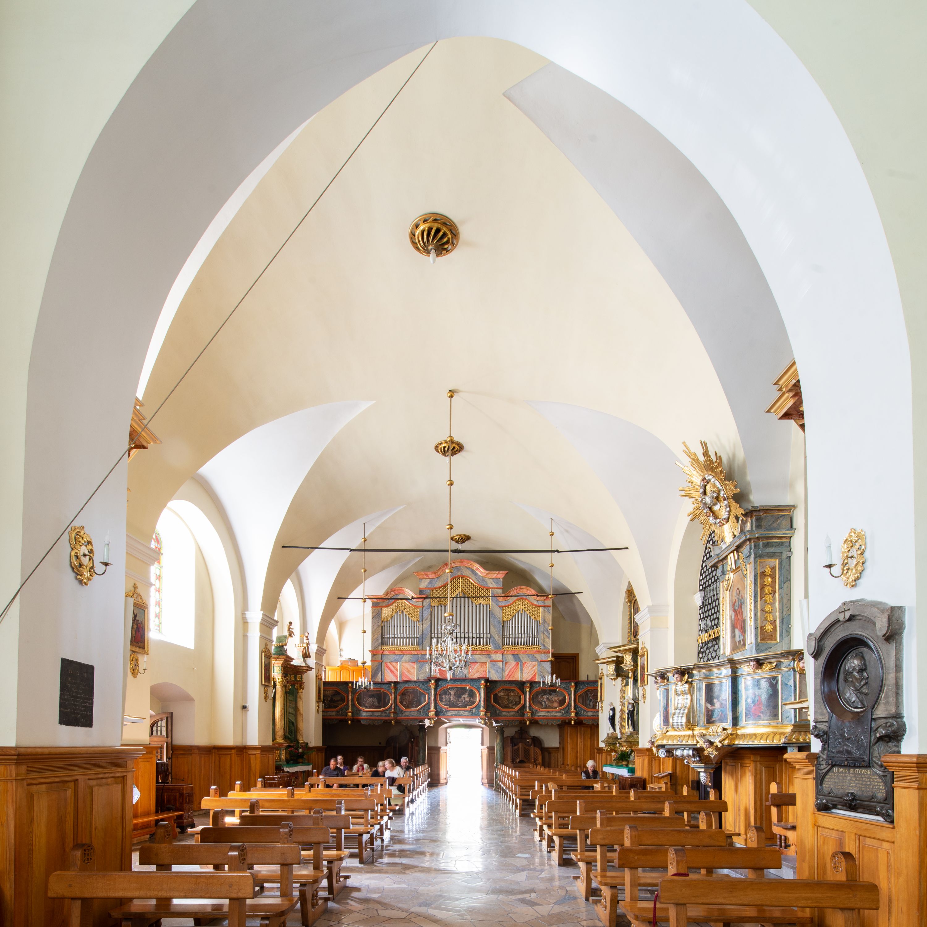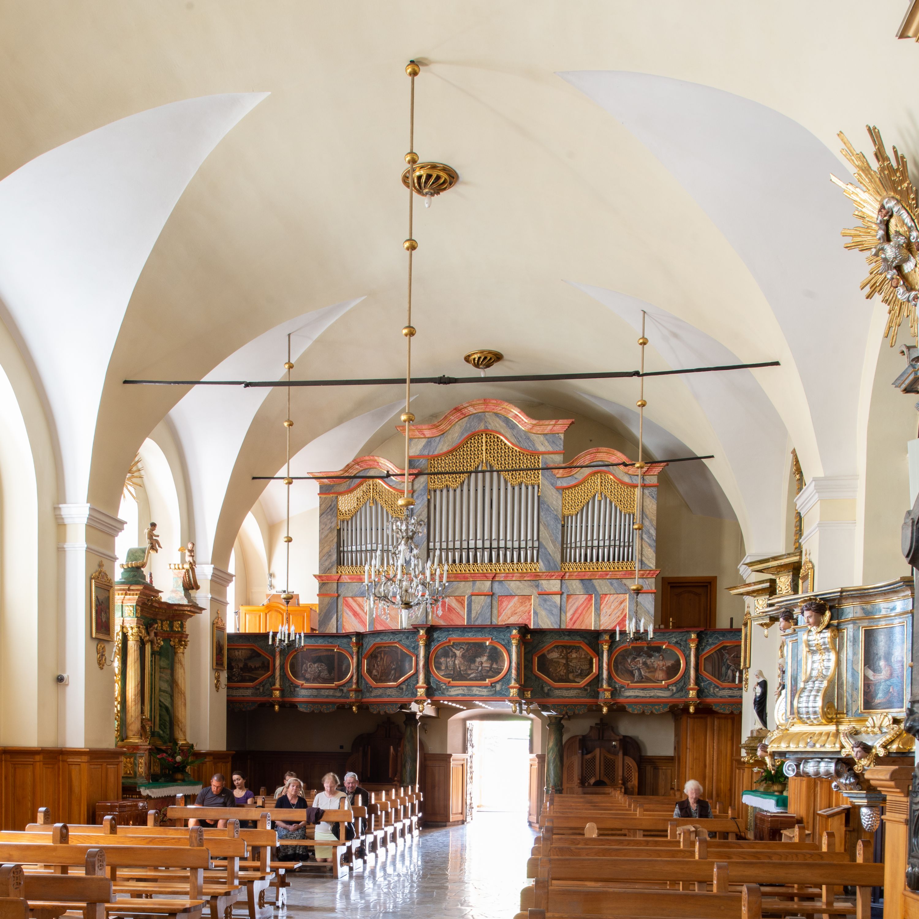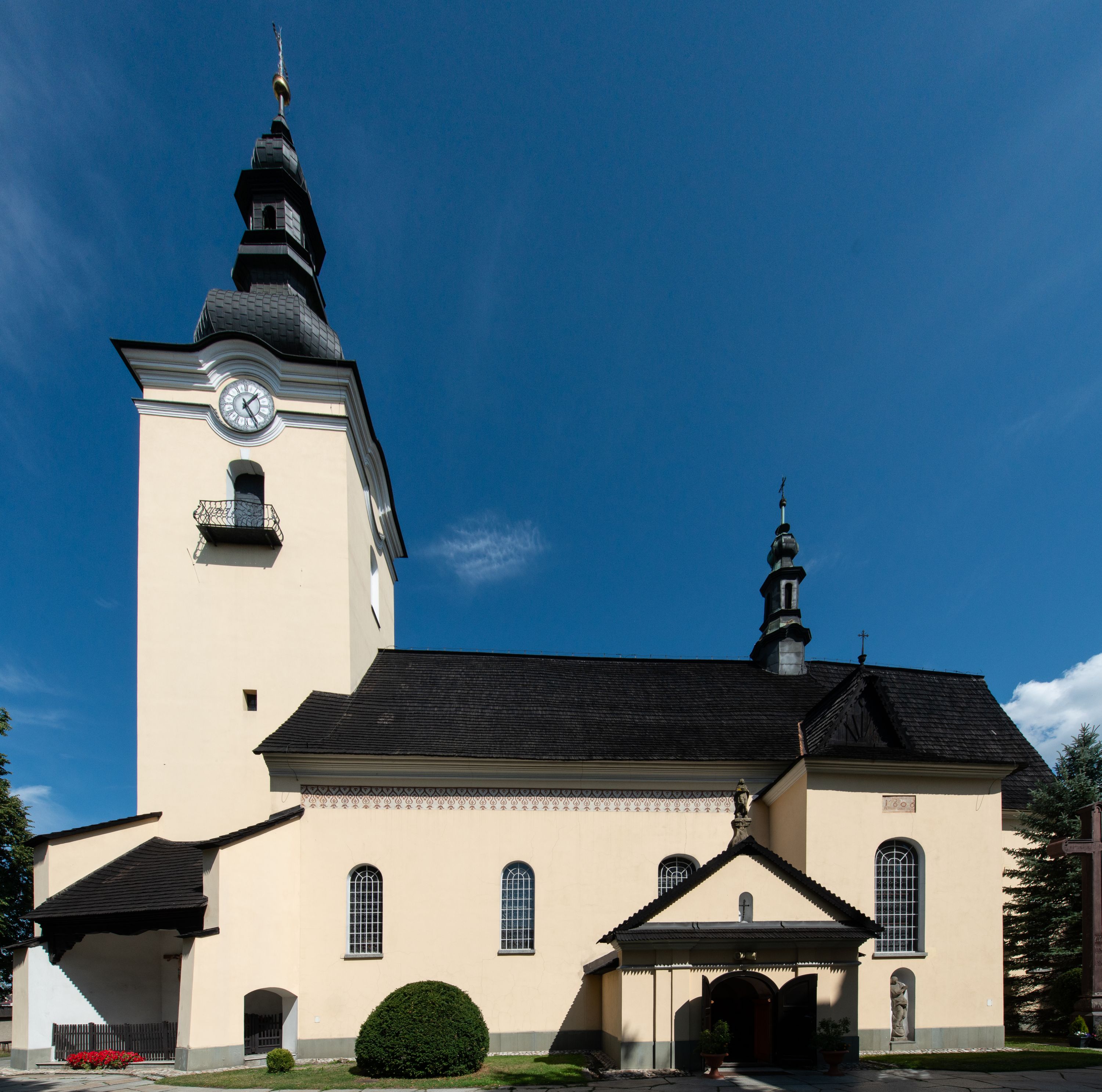 Church of Saint Catherine of Alexandria is a building with simple architectural forms, but with a complex record of the creation. The chancel was created in the first half of the 14th century, and the nave in 1601-1655, which, as evidenced by the inscription on the wall, was erected by Piotr Czarny, a bricklayer. The high altar was built in the first quarter of the 18th century, however it was significantly changed in the 19th century. In the main area of the altar there was originally a painting of Saint Catherine by Franciszek Lekszycki. It is currently occupied by a copy by Władysław Rossowski from 1892. Noteworthy is also the choir parapet from the first quarter of the 18th century, decorated with paintings modelled on engravings illustrating the work of the Flemish Jesuit Herman Hugo "Pia desideria emblematis elegiis et affectibus SS. Patrum illustrata", i.e. "Pious desires, explained with emblems, elegies and feelings of holy Fathers", issued in 1624 in Antwerp. In the chapel of the Virgin Mary, in turn, closed with an 18th-century lattice with a Marian monogram among lilies, there is an altar funded by prebendary priest Adam Gorczyński (1753-1760), and two paintings located in it: Our Lady of Perpetual Help in the main area of the altar and the Assumption of the Blessed Virgin Mary in the altar finial. On the eastern wall of the chapel, there is a painting of the Holy Family from 1516, moved to this place for security reasons from the cemetery church of Saint Anne in Nowy Targ (a copy by Marek Hapka is placed there). In the chapel there is also a baroque baptismal font, the core of which is an angel supporting the bowl like a caryatid. Inside the temple there are Stations of the Cross hanging, from 1894, painted by Stanisław Bryniarski.