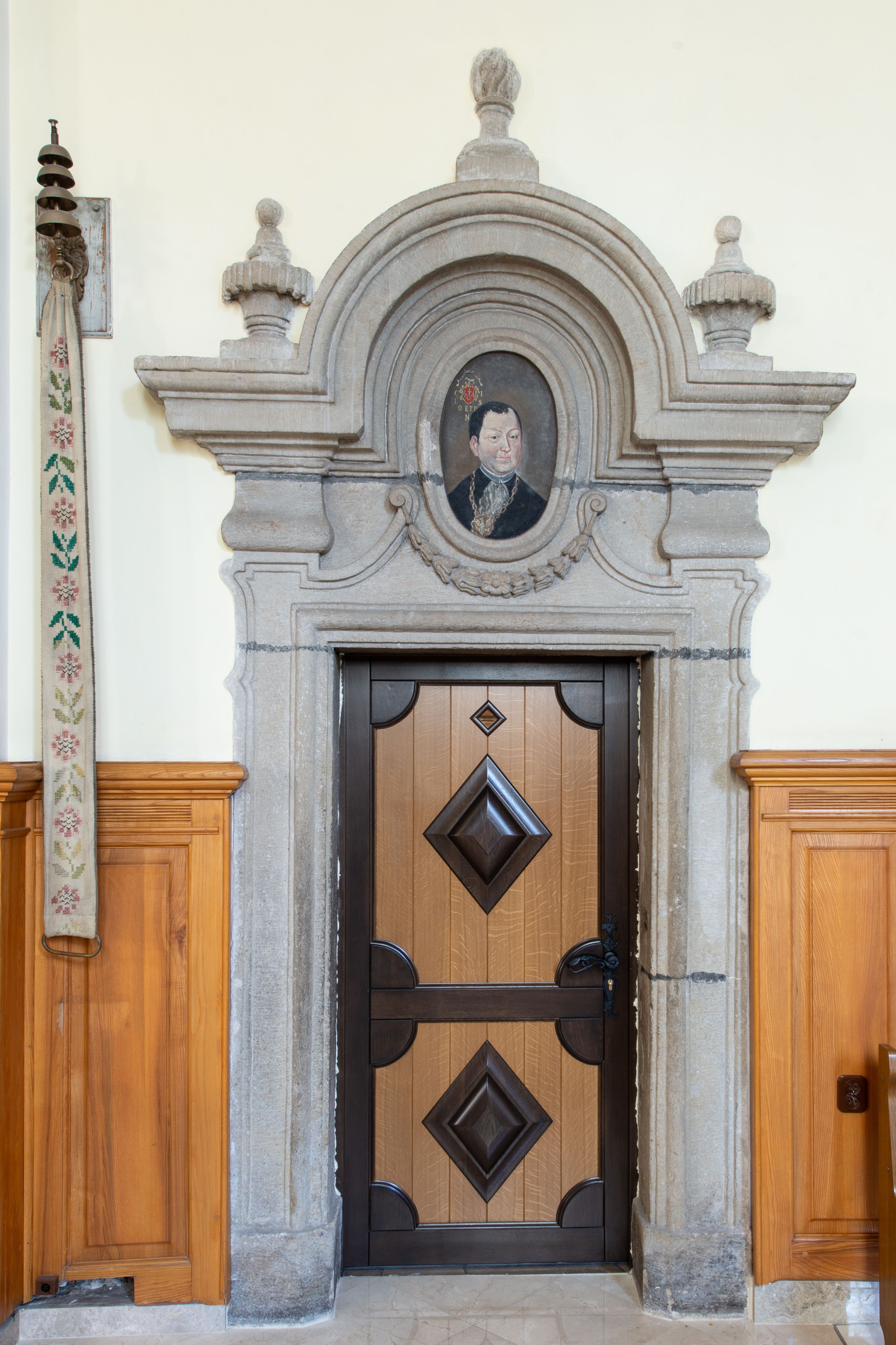 The church suffered again during the Swedish invasion in 1657. On October 16, 1668, Bishop Mikołaj Oborski consecrated the altars. Subsequent fires consumed the previous works - on November 15, 1710 and August 2, 1719. The church was restored after being burned before 1727, which was noted in the episcopal files of this year: "quod est totaliter murata post conflagrationem restaurata, Tituli S. Catharinae Virginis et Martyris, non consecrata ". These altars also mention of six altars: the main one: St. Catherine (freshly decorated) and side ones: of Transfiguration, St. Anna (Brotherhood of St. Anna), St. Jan Kante (new), St. Anthony of Padua, as well as the altar in a stone chapel - the Blessed Virgin Mary. In the years 1761-1765 seven altars were recorded in the temple, the main of which was decorated with a picture of St. Catherine, decorated with 193 pearls and silver dresses. In 1761, priest Tomasz Rechowicz, apostolic notary and royal secretary noted the poor condition of the church: "The whole church, although made of stone, has been damaged and scratched, the plaster has fallen off and the stones have fallen, there are 7 altars in a wooden church". Therefore, the church underwent a thorough modernization (1765-1784), while the parish priest was canon Józef Kazimierz Sawicki. A porch, a cemetery wall with a late baroque gate, a bell tower and portals were built then, the organ was expanded. The first of them, in the church gate, was decorated with the coat of arms of priest Sawicki (Nowina), his initials and the date of renewal - 1765. The portal at the second entrance was crowned with a sculpture of St. John Nepomucen, and above the entrance to the sacristy the renovator placed his portrait. A new portal was also built under the tower at the church gate and in the entrance to the sacristy. A clock tower was built, and a round tower with a steeple above the center of the church. The renovated temple was reconstructed by Bishop Franciszek Potkański on October 21, 1766. Another fire of 13 June 1784 destroyed the roof of the church, and also destroyed one of the wooden lofts. The opening that remained was bricked up and probably a window was located in this place, visibly different from the others. After the death of parish priest Sawicki (1789), father Szymon Zamoyski continued his work. The southern porch comes from this period with the sculpture of St. Tekli - a patron during fires and plague.