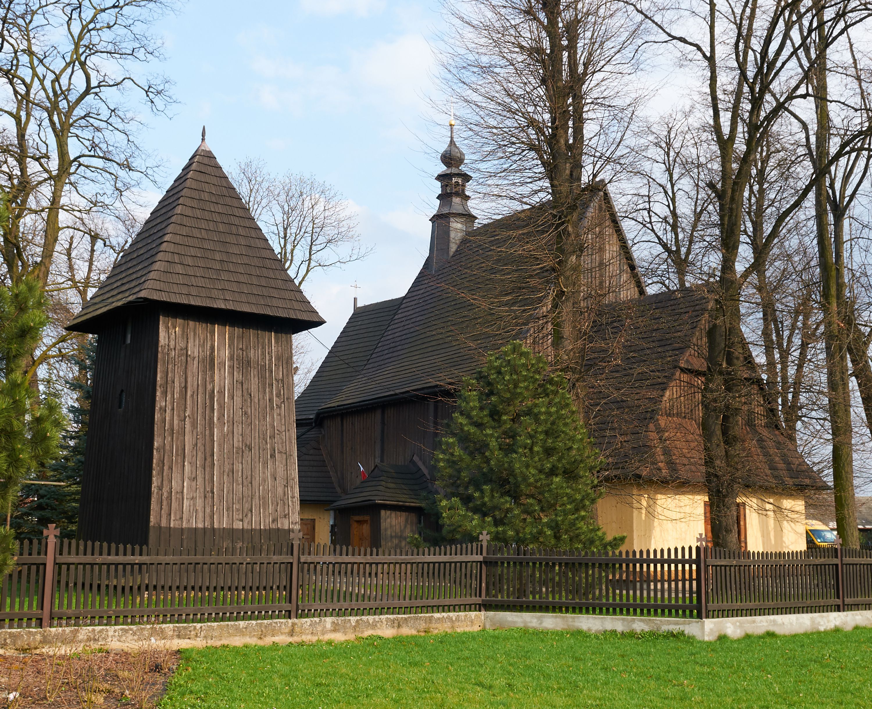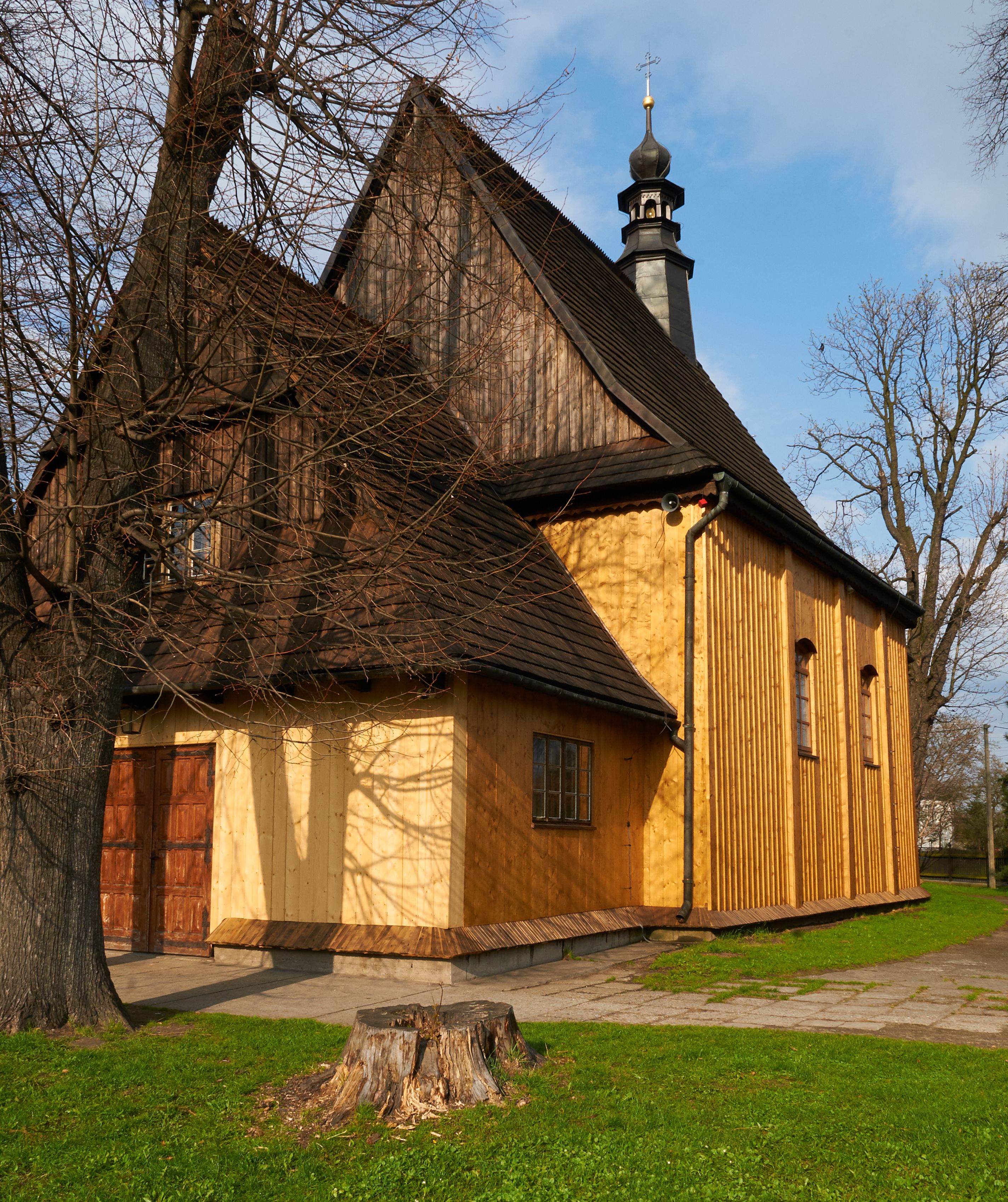 The church in Grab was built in 1742 using building blocks from the previous church from the 15th century. It was renovated many times and partly rebuilt. It belongs to a group of wooden temples in Lesser Poland, built in the 18th century, where the traditional scheme of a towerless church was used, but with baroque structural and decorative characteristics.