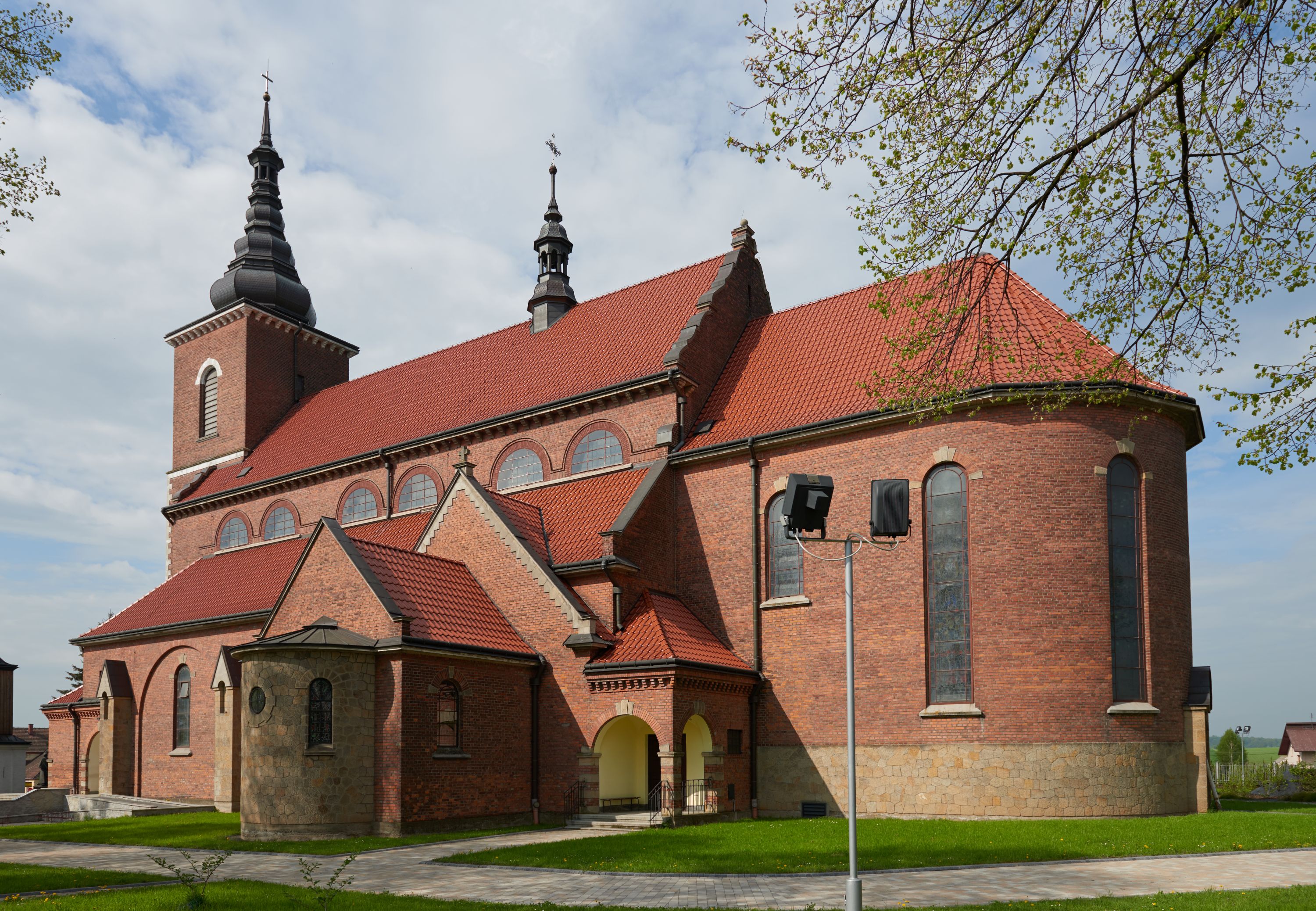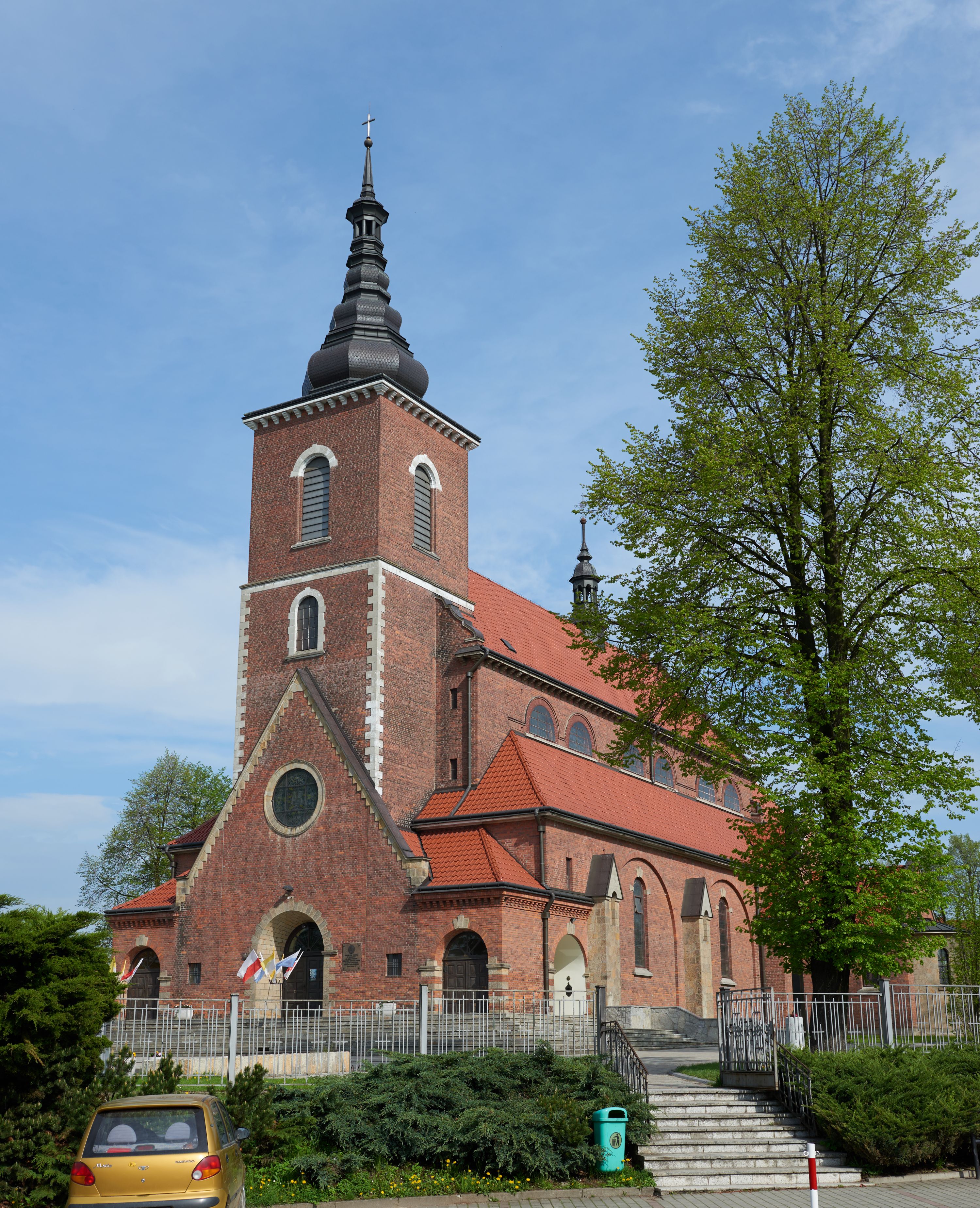The church in question is the third temple in Niegowić. The first one was built in 1443 from the foundation of Mikołaj Niewiarowski. In 1761, this church was partly burnt down during the Corpus Christi procession, as a result of shooting a courtly firearm during celebration. During the fire, the most valuable works of art were brought out, including paintings: "Assumption of Virgin Mary" from the high altar, "Holy Kinship" created in 1517, "The Three Marys" painted around 1470, "St. Anthony of Padua" and "Taking down of the Body of Jesus from the Cross", as well as two sculptures of Risen Christ of the 15th and 18th centuries. The second church was erected in 1771 from larch wood from the foundation of Teresa (née Sędzimir) Grzębska, the owner of the property in Niegowić. The church probably did not differ significantly in form compared to the previous temple. It was erected as a log construction on a base, what was characteristic of the gothic churches in the southern Poland. It faced demolition at the turn of the 1920s and 1930s, due to its poor condition. On 16 May 1928, Tadeusz Szydłowski, the Conservator of Monuments from Cracow, gave permission to demolish the church. However, fortunately for the monument, during the measurements carried out before the demolition, an engineer Stefan Żeleński gave an opinion that the temple was not in danger of collapsing. The situation concerning issuing an opinion about the demolition, and then about its appeal, repeated twice. In the end, the parish concentrated on building a parish house, and then a new church, in 1949-1958. The old church served the faithful until 1959, then, while unused, it became to deteriorate. In 1968, the Parish Council informed the Provincial Conservator of Monuments about the poor technical condition of the church. The Metropolitan Curia in Cracow, by way of a letter written by father, Cardinal Karol Wojtyła, propose to relocate the church to Mętkowo. The dismantlement took place in 1973. The new temple dedicated to Madonna of Częstochowa was consecrated on 1 May 1974 by the father, Cardinal Karol Wojtyła. A new bell tower was erected on the pattern of the original one, next to the temple. Meanwhile, the newly built brick church of the Assumption of the Blessed Virgin Mary designed by Bogdan Treter and erected by the residents of Niegowić remained in the town. From 1949, the construction was managed one after the other by: engineer, architect Józef Merenda frm Cracow, and then by engineer Józef Gładki. Michał Hudy from Jadownik was a master builder on the site, and Jan Białota was the so called administrator. The foundation stone was consecrated on 18 June 1954. On 25 September 1966 the church was consecrated by Archbishop Karol Wojtyła. Around 1960, a provisional high altar was built, where a painting of the Assumption of the Virgin Mary from 1610 was placed, transferred from the old temple. The furnishings of the temple were designed in the 1960s by Wiktor Zin. The designs of stained galss windows were made by Władysław Jastrząbski in 1957. Six from the designs representing the Polish saints and blessed, were placed in the chancel. The choice was made by the author of the designs himself, in connection with the celebrations of the millennium of Poland's baptism. The designs were carried out by the Stained Glass Workshop S G Żeleński in Cracow in the years 1957-1965. From 1971, prelate Józef Gąsiorowski was responsible for the finishing works in the church. At the same time, the following furnishings were made: new side altars, fence and stairs made of granite of Strzegom. The tented roof of the tower was made of copper sheet in the years 1998-1999 by the company owned by engineer Dudka from Cracow and by metalsmiths from Biecz. Eight profiling tented roof was made according to the design of Treter. The furnishings of the older church in Niegowić were dispersed. The church housed a 15th-century painting – "The Three Marys," attributed to Nicolaus Haberschrack, which was sold in 1918 to the National Museum in Cracow by then parish priest. The painting "Holy Kinship" from 1516 was found, in turn, in the Bishop's Palace in Cracow. The following works went missing in unknown circumstances: the structures of renaissance and baroque altars transferred to Mętków, the paintings: "St. Anthony" and "Taking down of the Body of Jesus from the Cross" (before 1620), two wooden sculptures of Risen Christ (the third quarter of the 15th century and the first half of the 18th century), rococo pews with the coat of arms of the owners, the Stations of the Cross, as well as liturgical paraments. Those works of art that were transferred to the newly built church in Niegowić practically survived. The present church dedictaed to The Assumption of the the Blessed Virgin Mary, was arranged as a kind of a sanctuary of Pope John Paul II. At the beginning of the 21st century, father Jarosław Cielecki ordered a fresco made by Renato Tarlarini of San Marino (from the foundation of Enrico Mangiarotti's company), depicting father Karol Wojtyła in front of the Virgin Mary. At that time, a new pulpit, a sedilia, a throne and pews were made in the church. In the church porch, thanks to the foundation of John Paul II from Bassano Romano and its chairman, Federico Campelli, a large-format photograph by Arturo Mari, depicting the pope praying in the papal chapel, was hung. A relic of the cross carried by the pope during his last way of the cross in the Colosseum was placed there. Moreover, according to the conception (2014) of the dean Paweł Sukiennik, six slabs were cast in bronze, which were then inserted into the main door. The so-called "doors of Niegowić" were designed by the sculptor Wiesław Domański and depict scenes from the life of Pope John Paul II. However, the most important part of the temple commemorating the Pope is the Chapel of the Divine Mercy, separated from the church's interior, located to the east