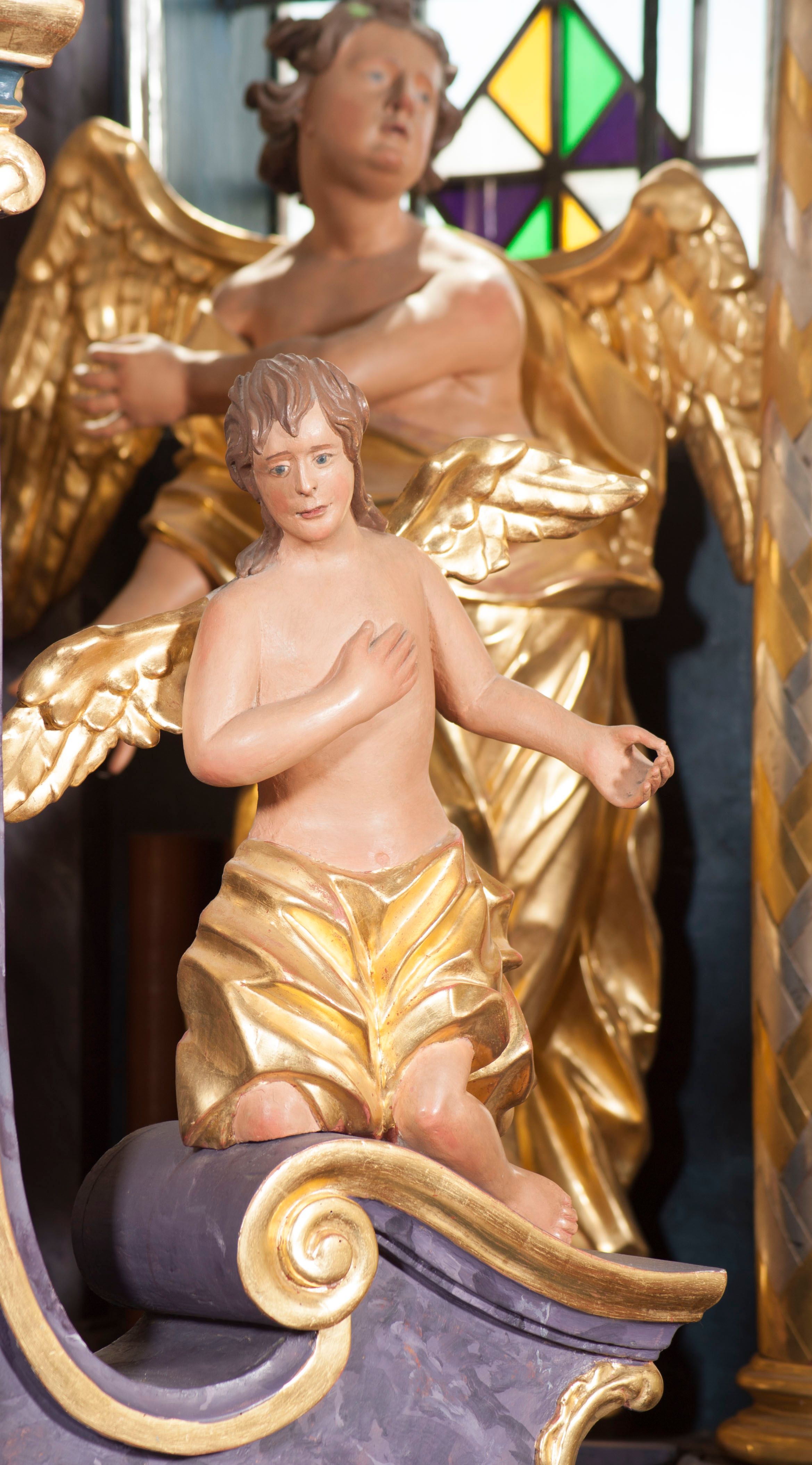 The architectural and sculptural furnishings of the church, including the high altar with tabernacle, were made after 1765, most likely in the workshop of the Kornecki family of Gdów. The work might have been made in accordance with an established design or was inspired by a reredos and a free-standing altar of the tabernacle in Witów.