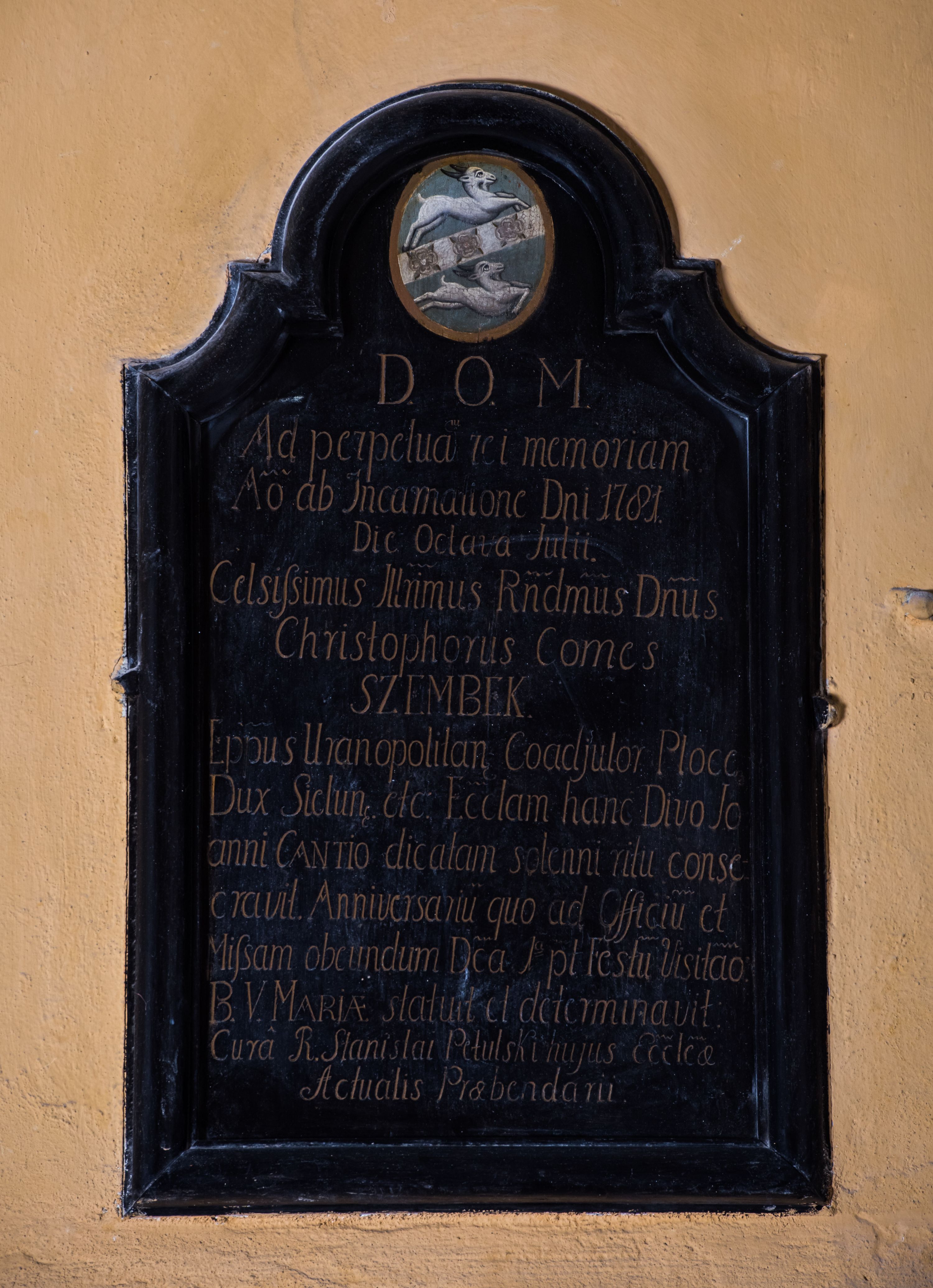 The memorial plaque set in one of the walls of St. John Cantius Church in Kęty commemorates both the ceremony of consecration of the temple and the figure of Father Stanisław Potelski, the last prebendary of the church.