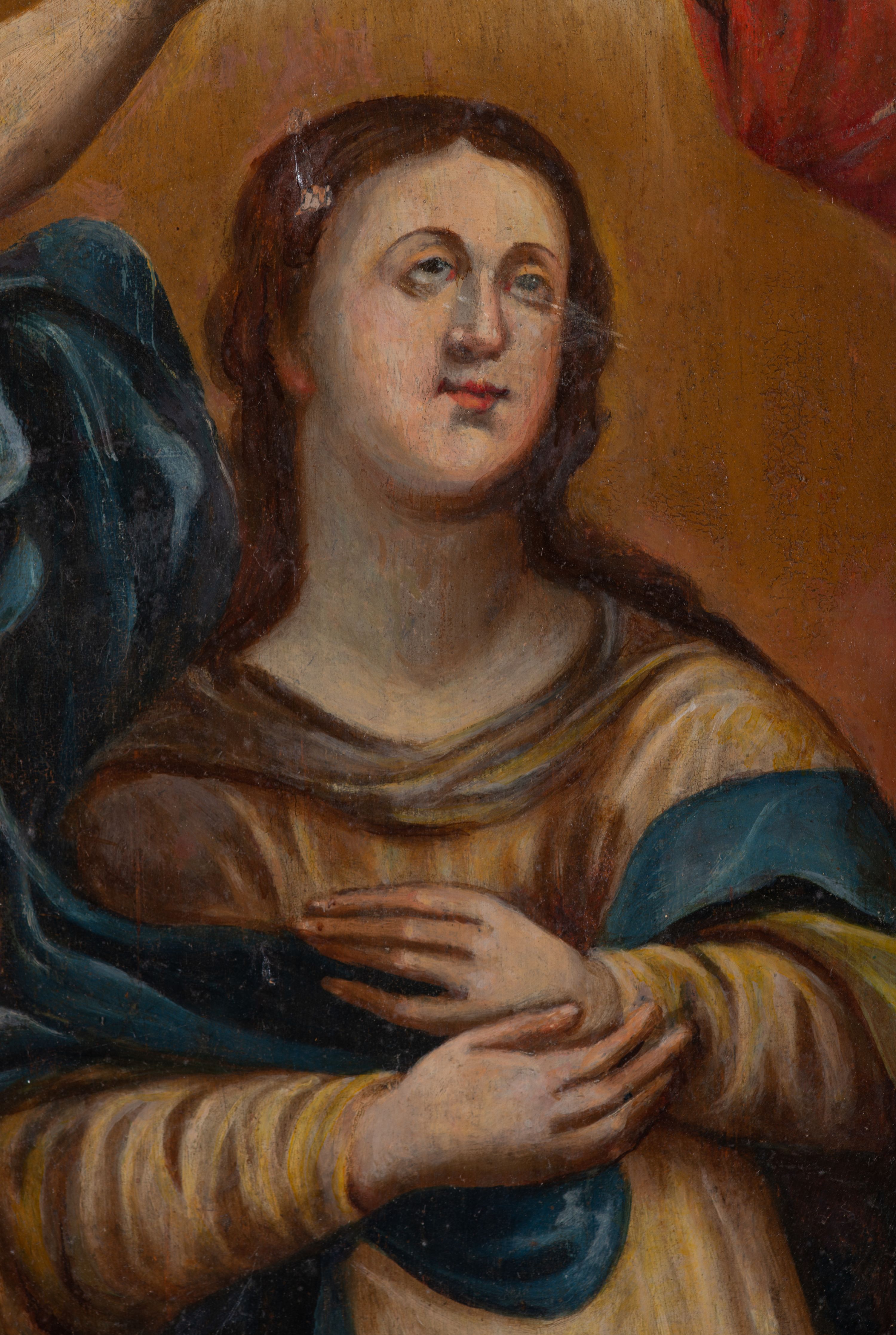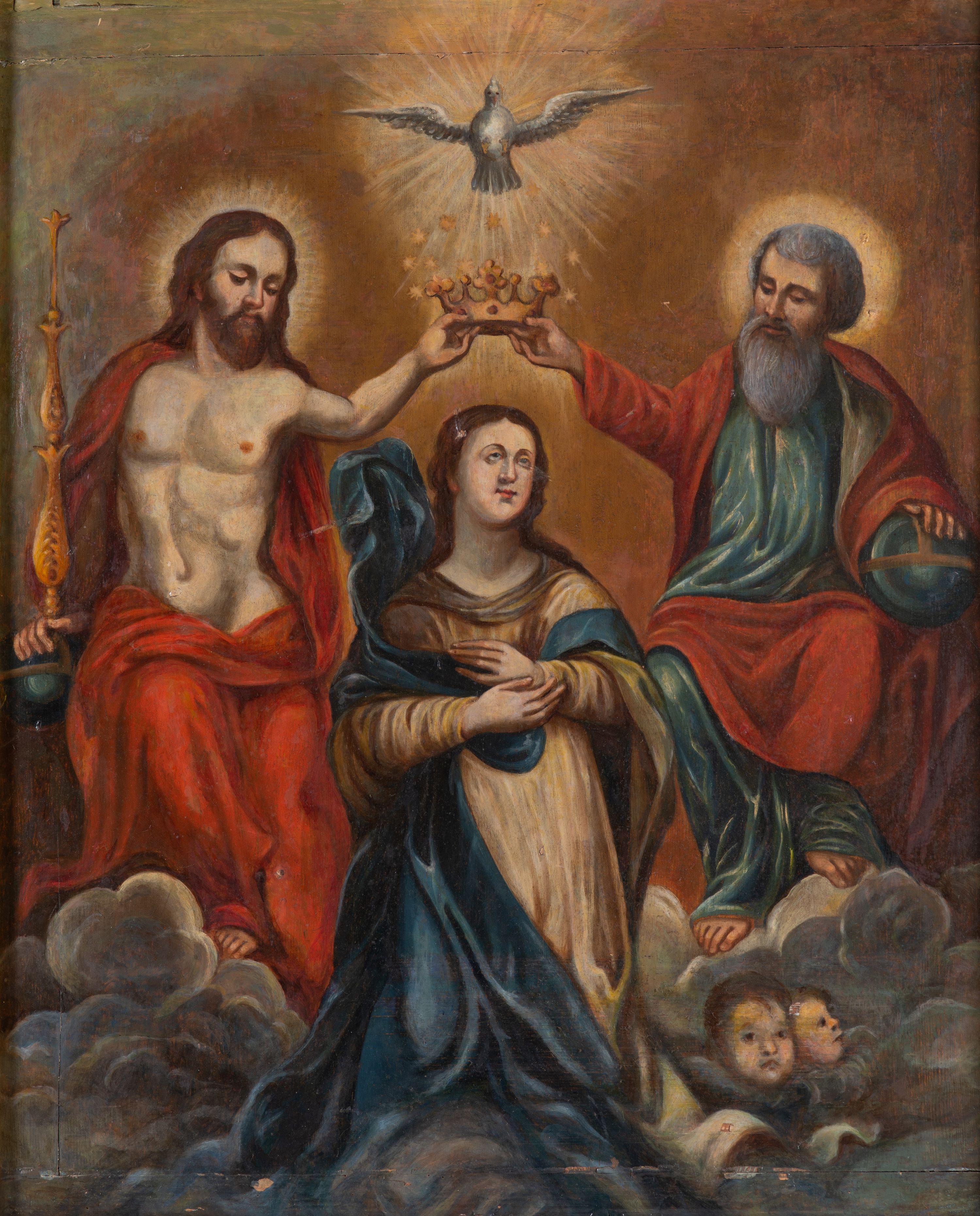 The painting depicts the scene of the Coronation of the Virgin Mary by the Holy Trinity - a theme that appeared in the iconography of European and Polish art at the end of the 14th century. Unfortunately, archival sources do not reveal the author of the work.