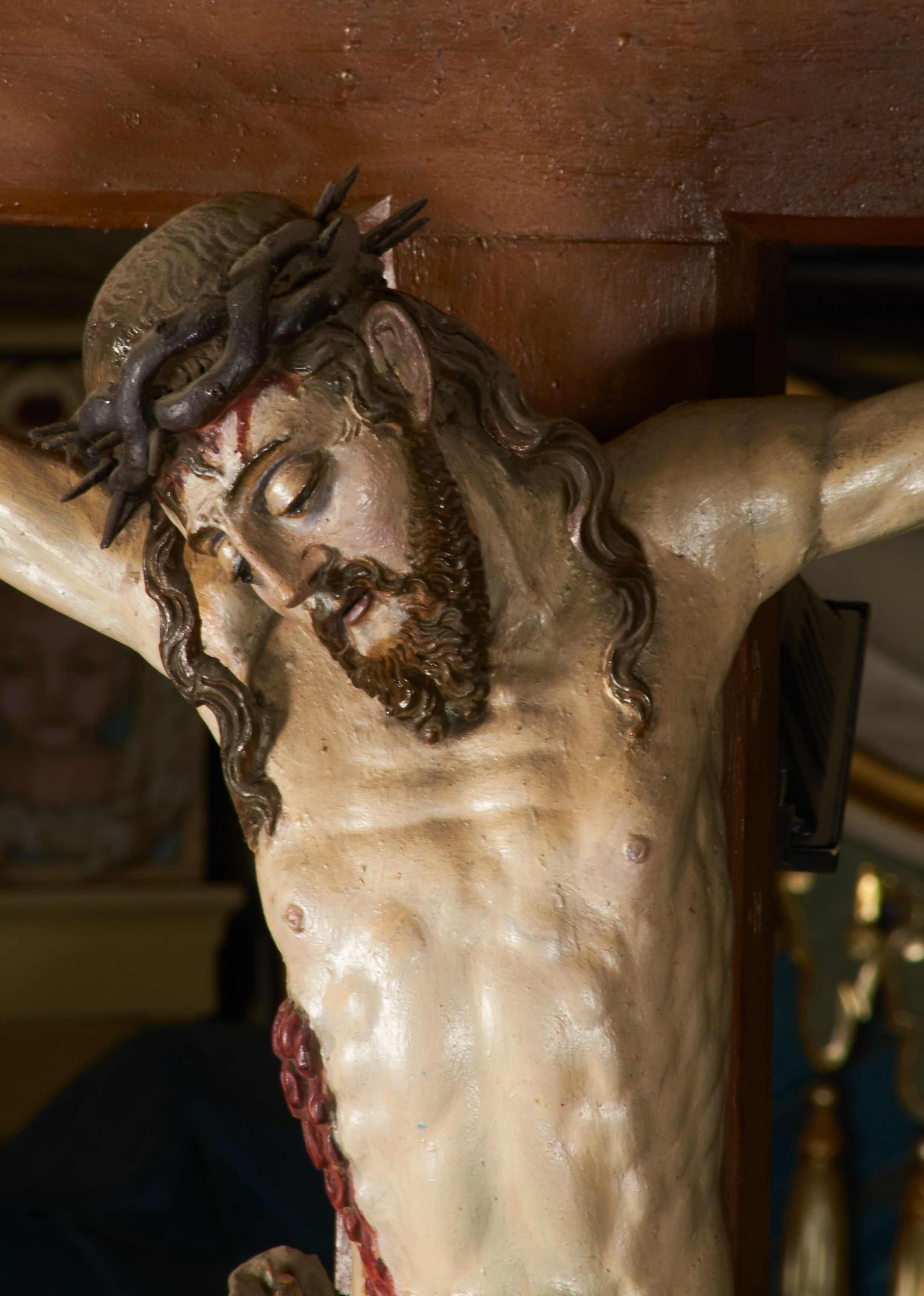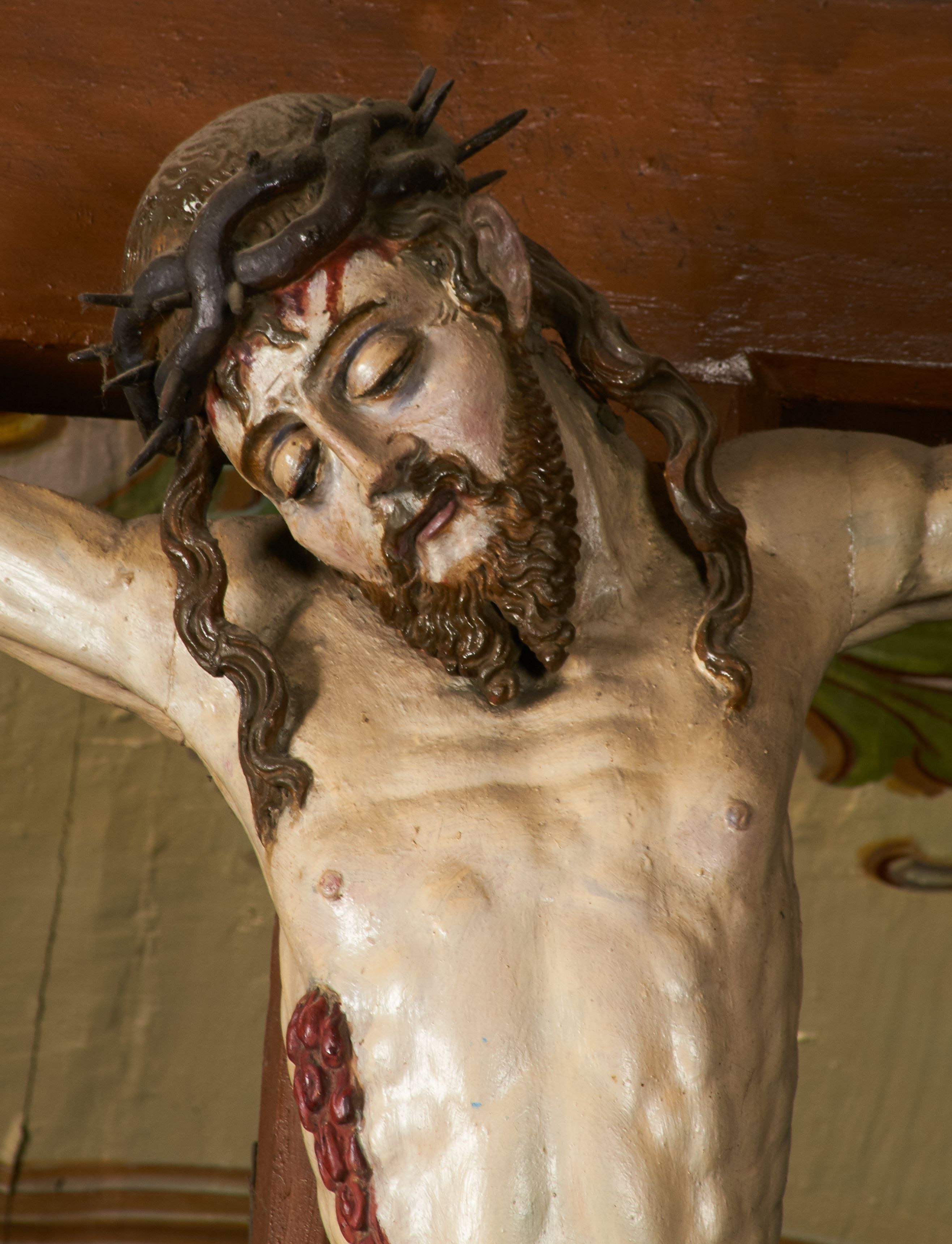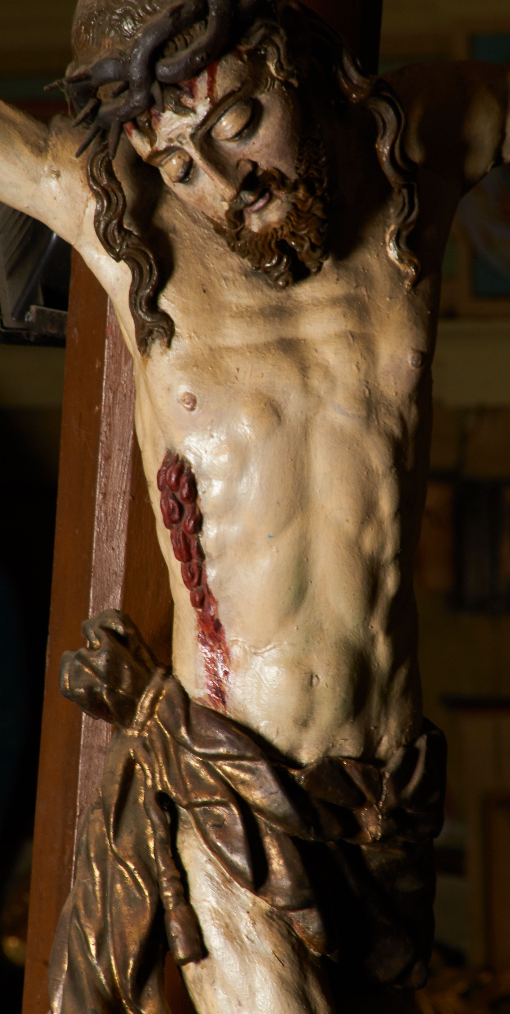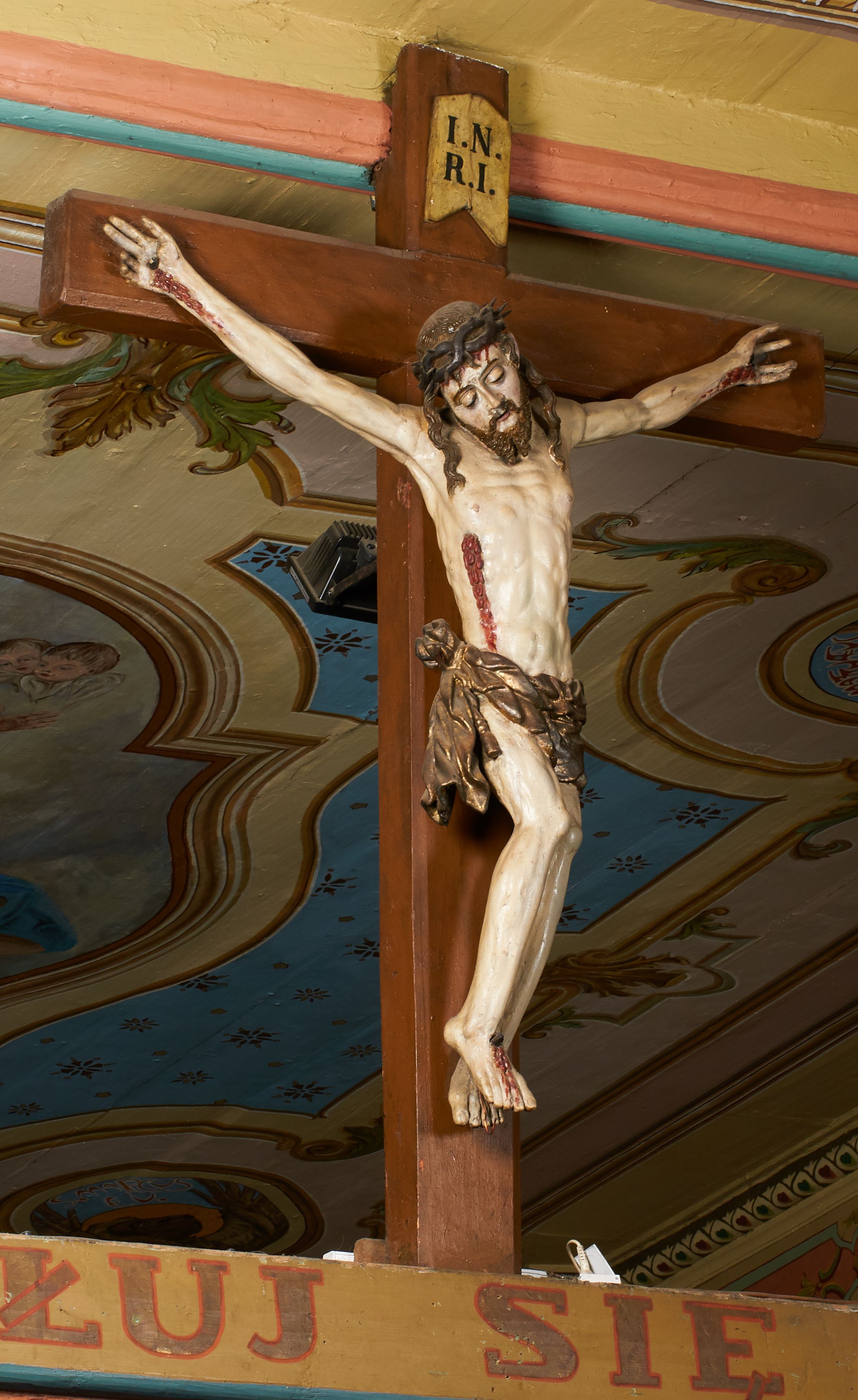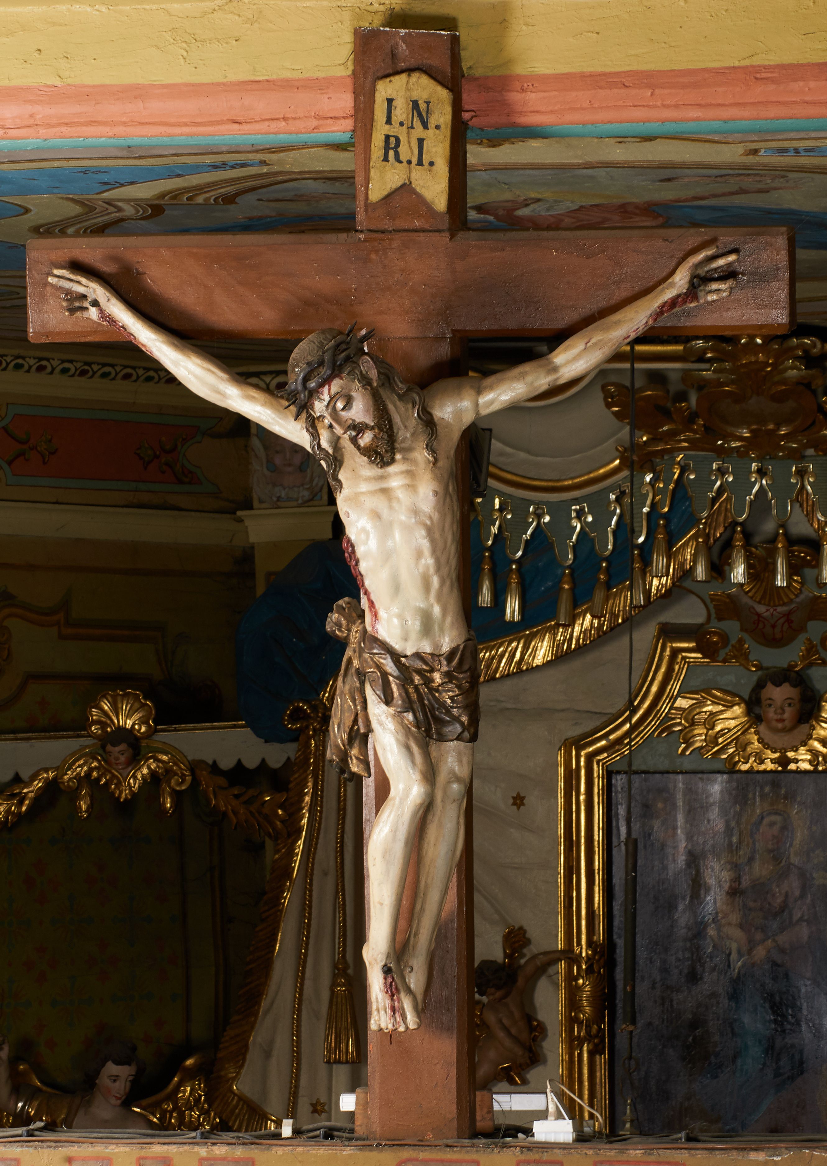 The crucifix from the rood beam most probably originates from the furnishings of the previous church in Grab, as evidenced by its creation around the mid-17th century. After the construction of the new temple, it was transferred to its present place. In the literature, the crucifix dates back to the 18th century, however, due to the still gothic nature of formal characteristics, its date of creation may be postponed until the mid-17th century.
