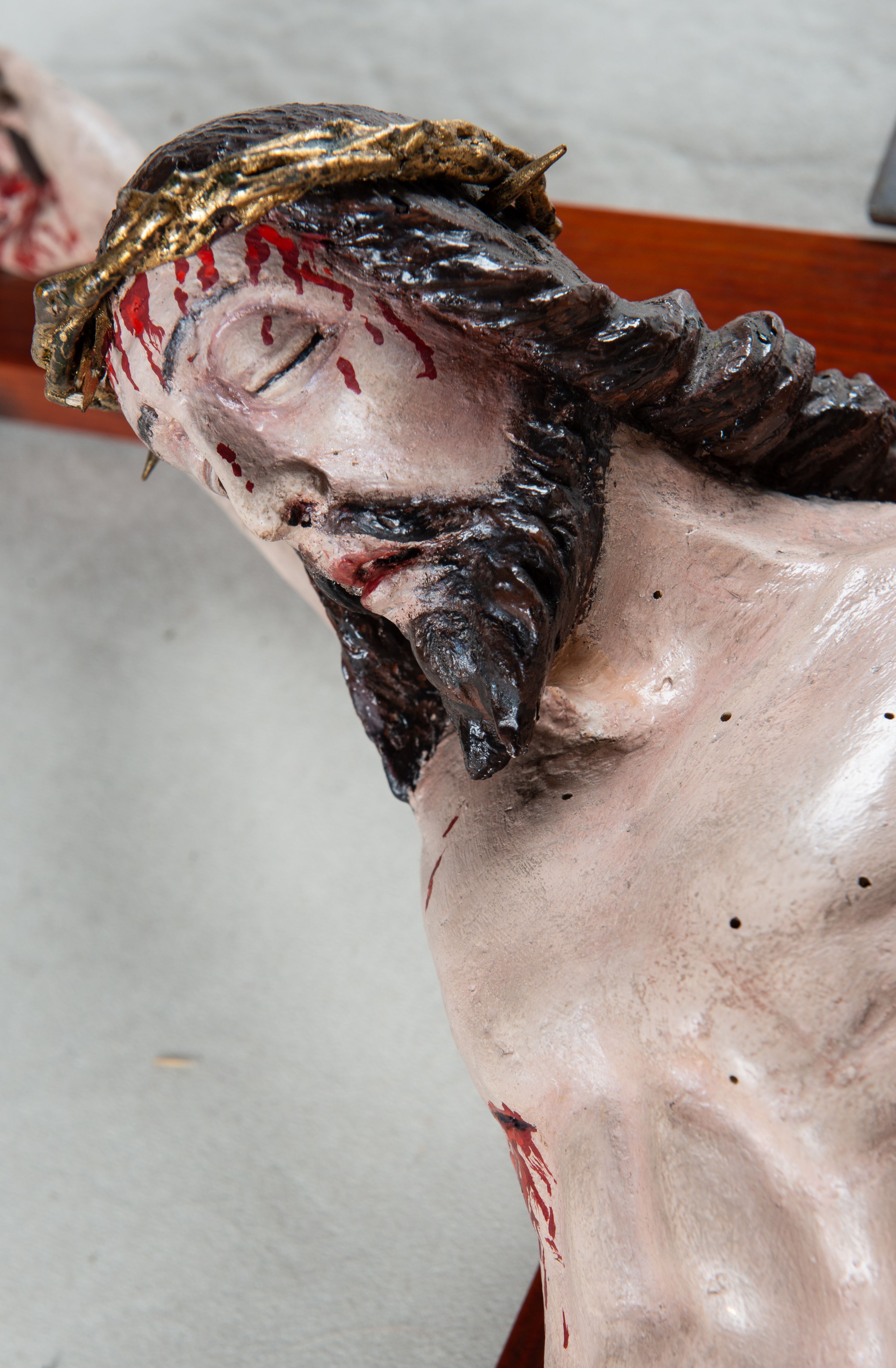 The 18th-century sculpture of undetermined authorship, stored in the church in Harbutowice, depicting the crucified Jesus refers to the method of showing the dead body of the Saviour originating from the Middle Ages, emphasising the suffering and death. It is characterised by baroque shaping of the form visible in the strong expression of a bent body and the face of Christ marked by the Passion.