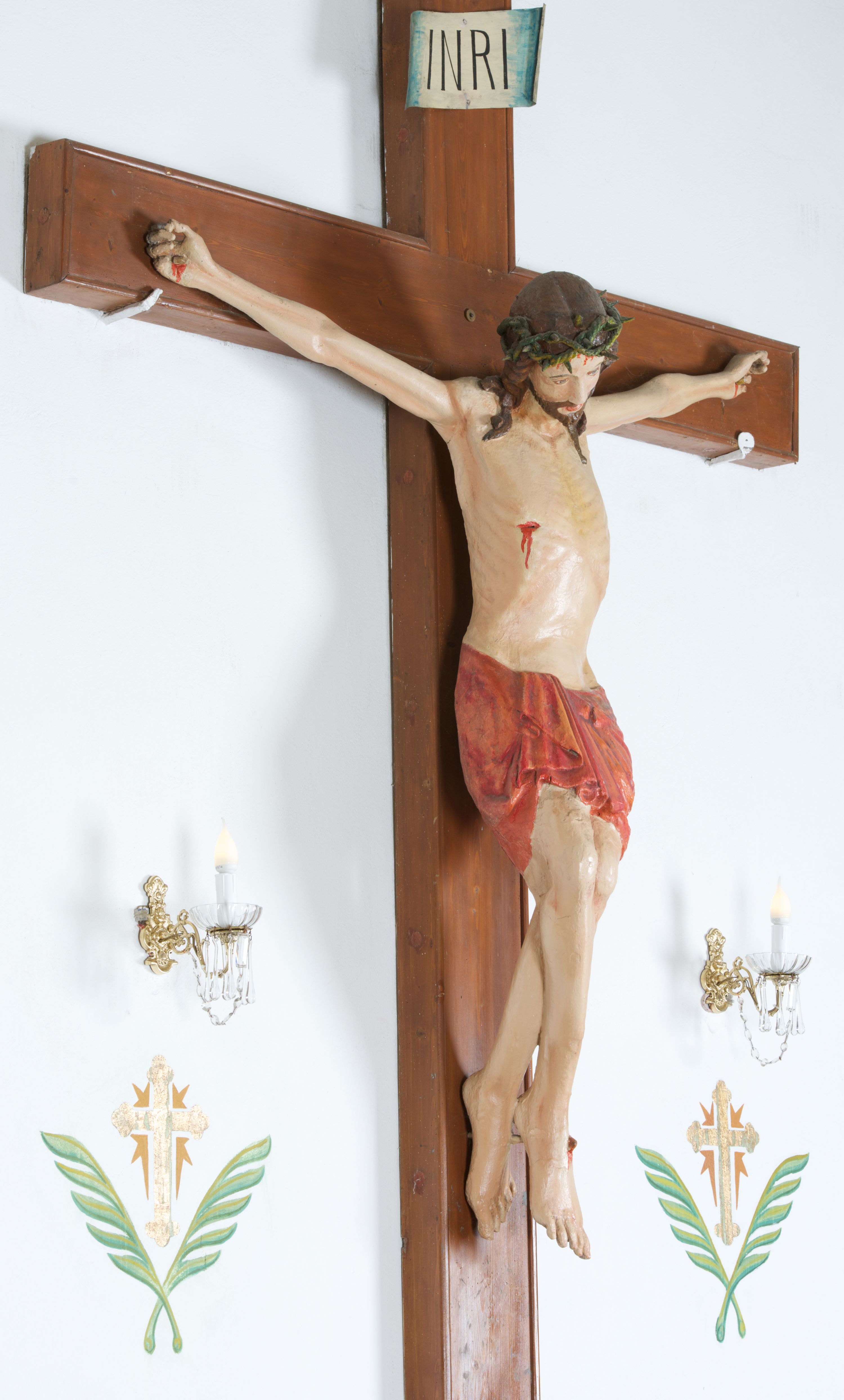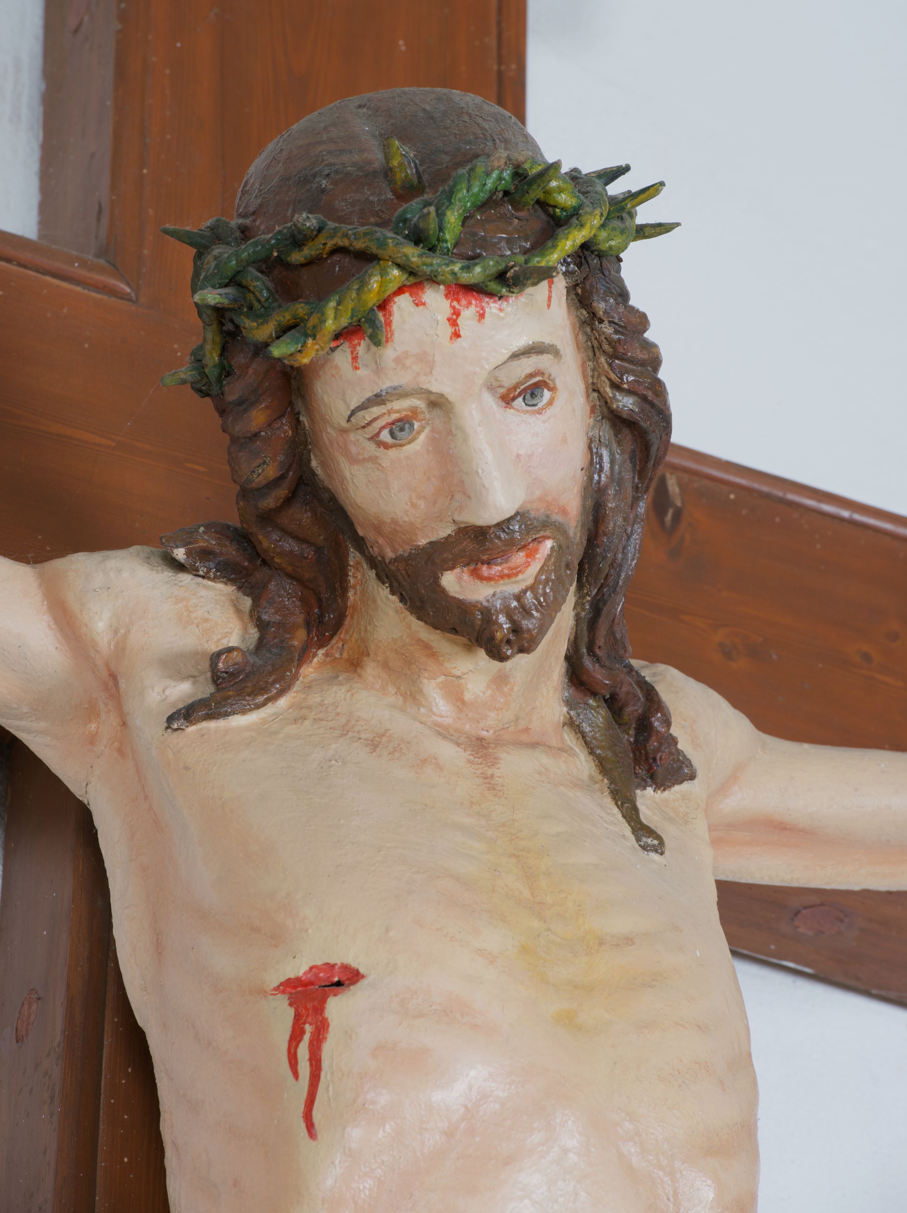 A wooden gothic crucifix, dated to the end of the 14th or the beginning of the 15th century, partially re-sculpted and repainted.