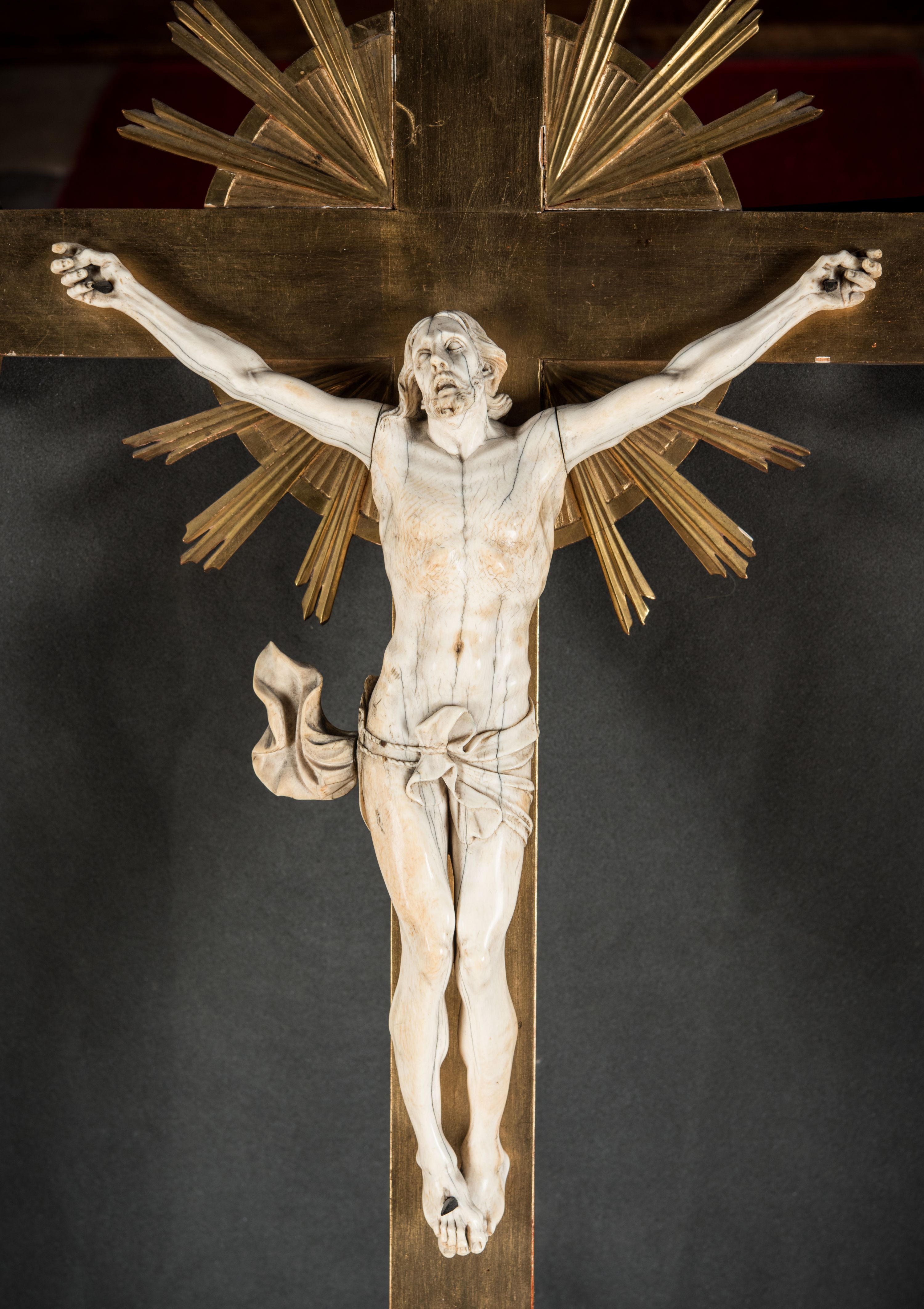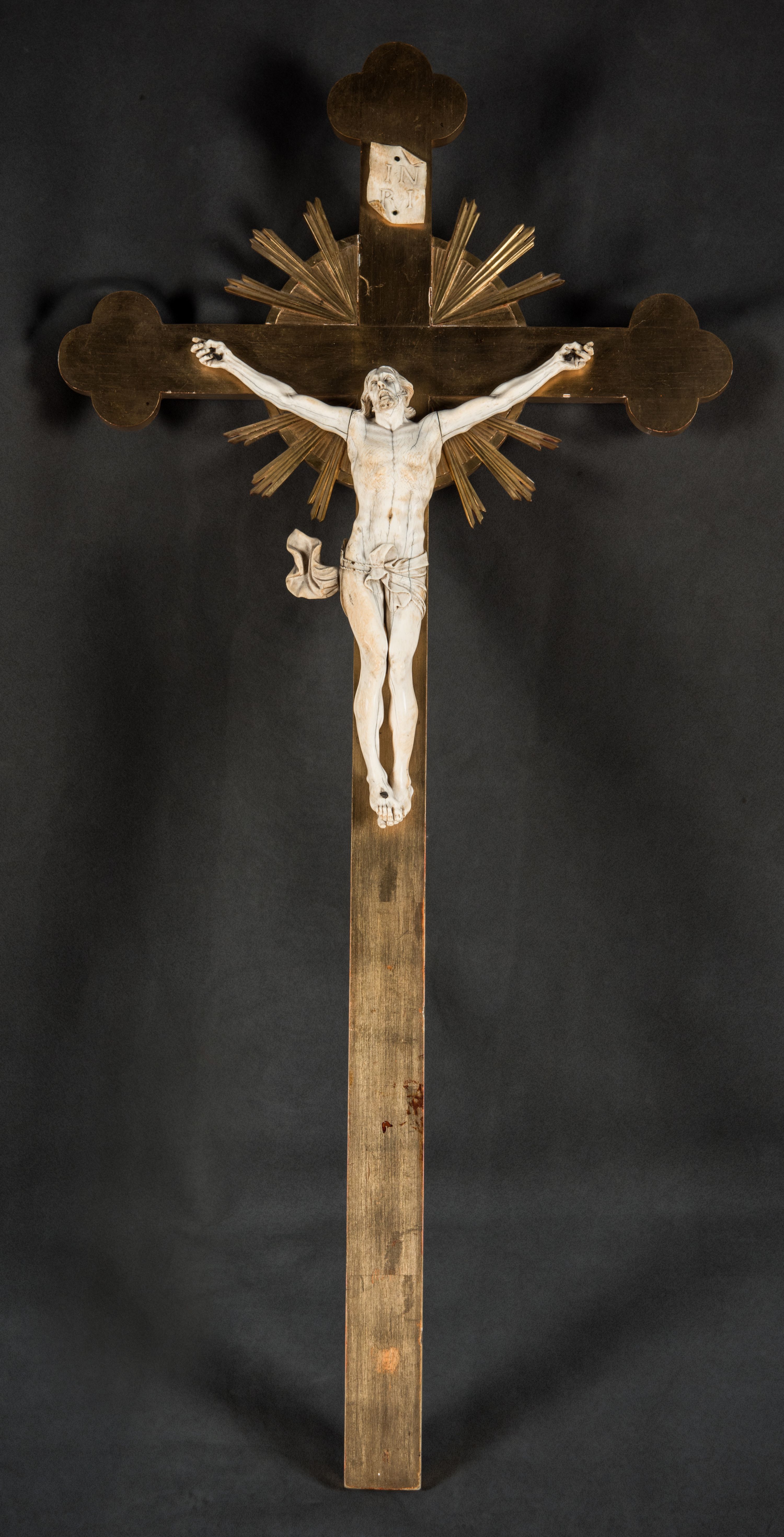 Christ on the Cross was made of ivory, most probably in the second half of the 17th century. It belongs to the iconographic type "Cristo vivo" – the Living Christ. This type is distinguished by the way of depicting the leaned back head, raised eyes and open mouth with visible teeth and tongue.